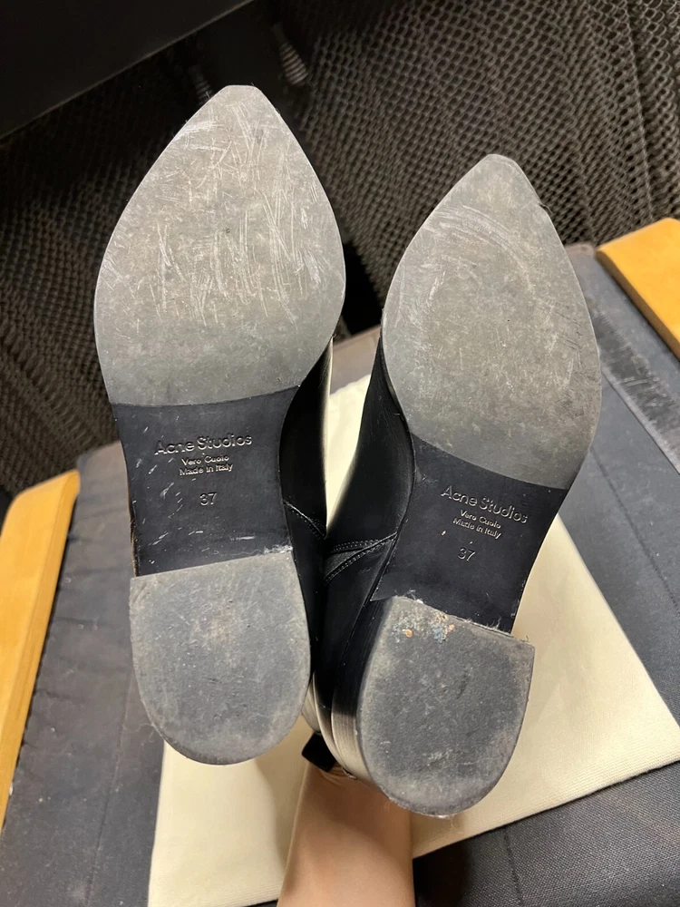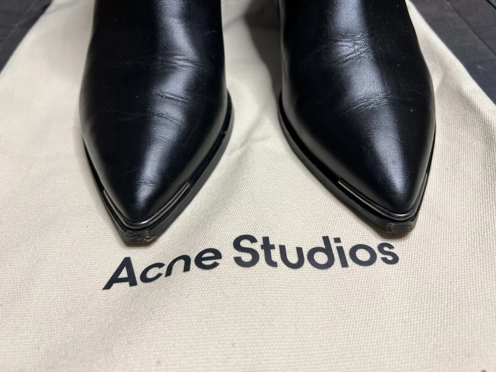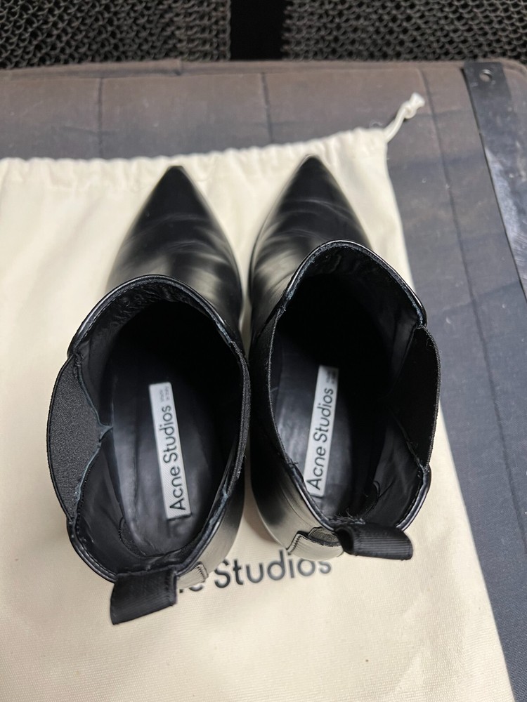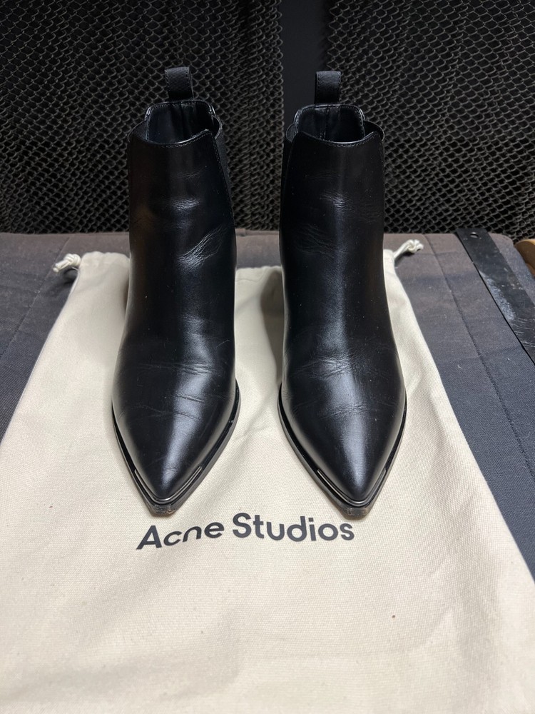 Invest In ACNE Chelsea Boots, it makes All Your Outfits Look Sleeker! A couple of years back, acquiring a pair of ACNE Jensen boots was even more challenging than finding vintage Chanel items. They were as rare as a precious commodity. This scarcity was a result of their enduring, timeless design. Drawing inspiration from the traditional Chelsea boot style, ACNE's Jensen boots offered a polished and versatile footwear option for all occasions. While retaining the essential elastic sides characteristic of Chelsea boots, the Jensen boots introduced distinctive elements such as a pointed toe adorned with a touch of silver , a substantial heel, and a unique V-shaped detail on the shaft. Over time, ACNE Jensen boots have become an essential component of the minimalist wardrobe. Size: EU 37 US 6.5 Comes in dust bags.