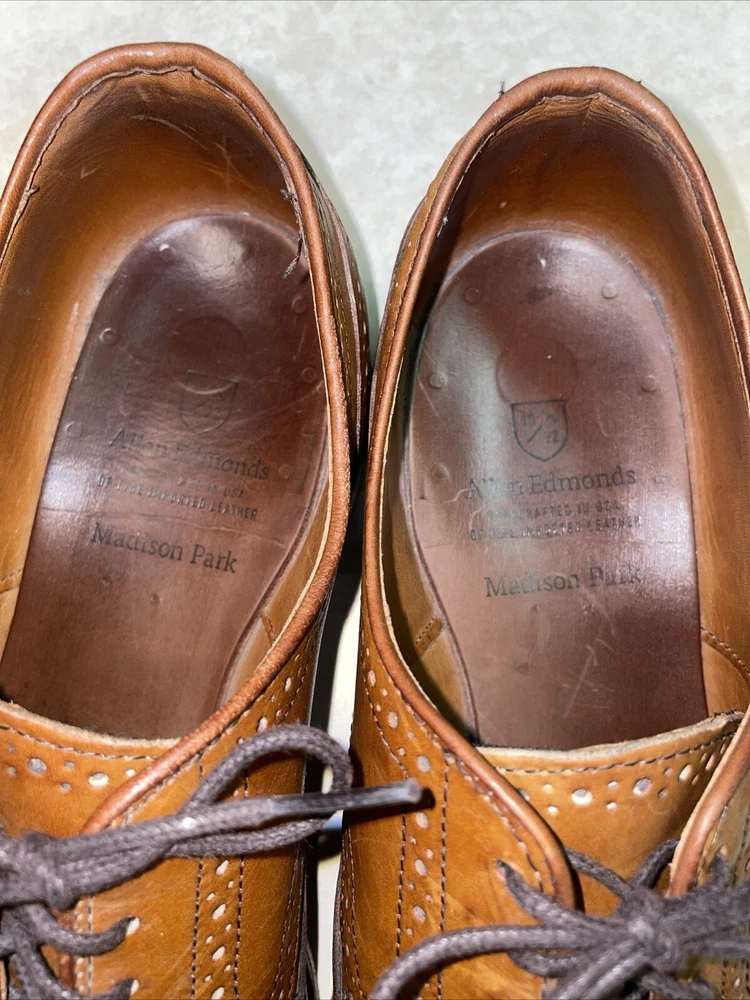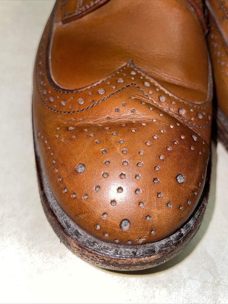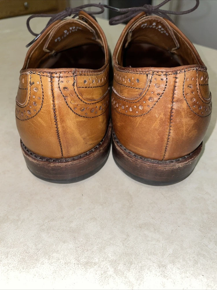 These wingtips are a fantastic find! The leather is still rich and supple, and the classic design adds instant polish to any outfit. The scuffs are minor and give them character—honestly, they look even better in person. Super comfortable right out of the box, and the craftsmanship holds up beautifully. A steal for the quality!