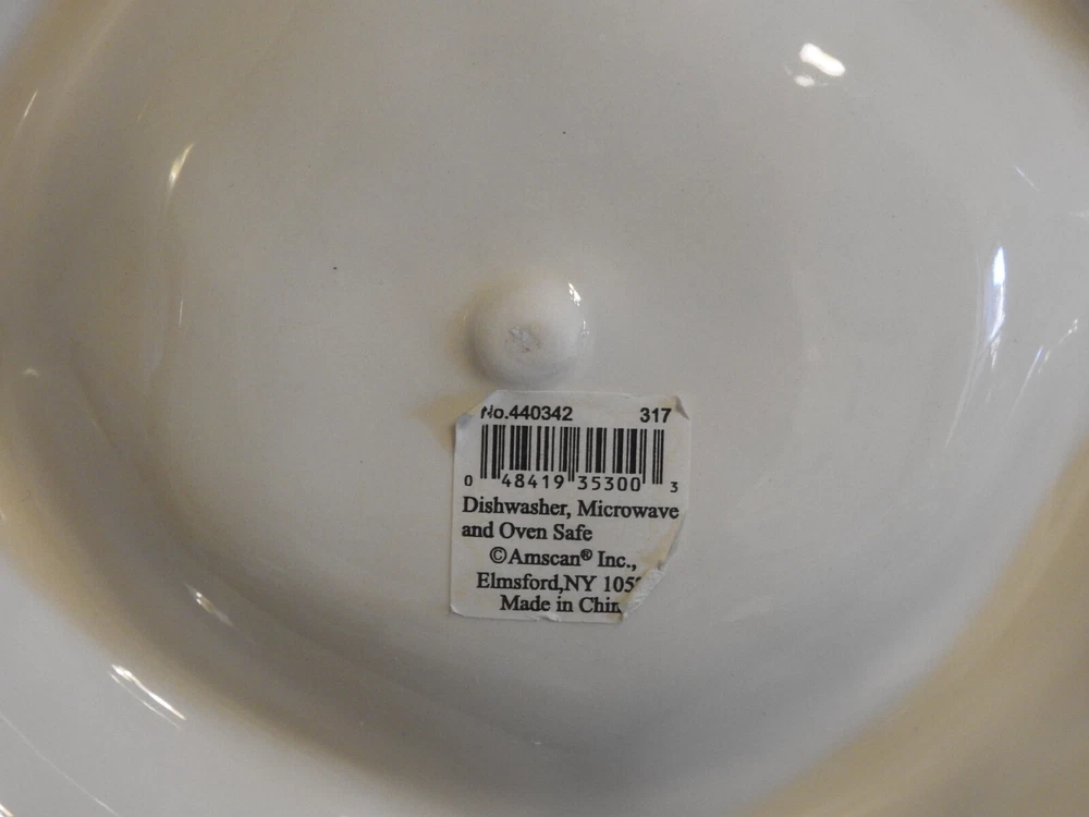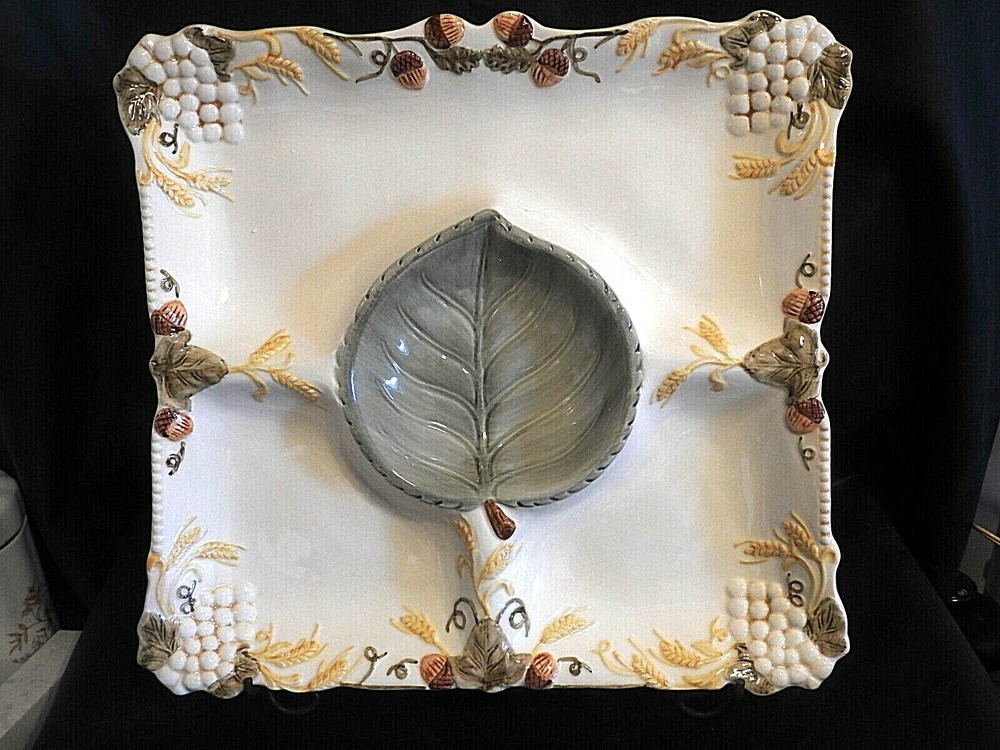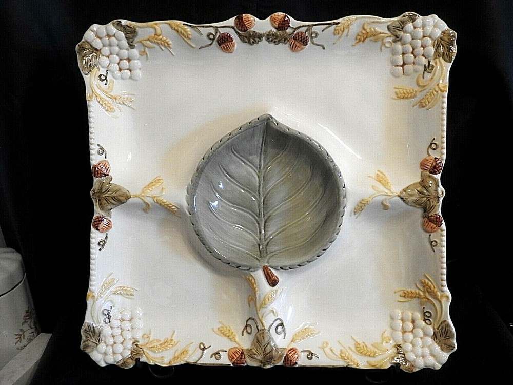 Amscan Home Square Chip and Dip Serving Tray Amscan Home Large Square Chip and Dip Serving Tray. Color beige, green, and brown. M easures 13" x 13" square and 1" deep. It has a metal bronze stand to display as Home Decor. It is a heavy item. It is new and unused in original packaging. ID #BA-18 #5.1 Scan ID# 510379 M.O.M.s Collections stands for My Own Mom's Collection that includes collections from several women with a focus on MOM's Collections. We will be adding new items regularly and we take pride in selecting the highest quality and unique items that are pleasing to the eye. Enjoy the fashion show. Please email us with questions and we will respond within 48 hours, excluding Sunday and Holidays. Feedback is very important to us and we would appreciate an email if you have any concerns. We do our best to describe items to the fullest identifying any problems. Our shipping days are Monday through Saturday. Sunday is a day of rest. If you buy multiple items and want to combine shipping costs, you must add items to your cart one at a time and request a total. We will combine shipping costs and send an invoice as we only charge actual shipping costs. We accept returns 30 days after receipt and the Buyer pays return shipping unless we have errored. Thanks for stopping buy and we welcome you back to enjoy a cup of hot coco while you browse our store.