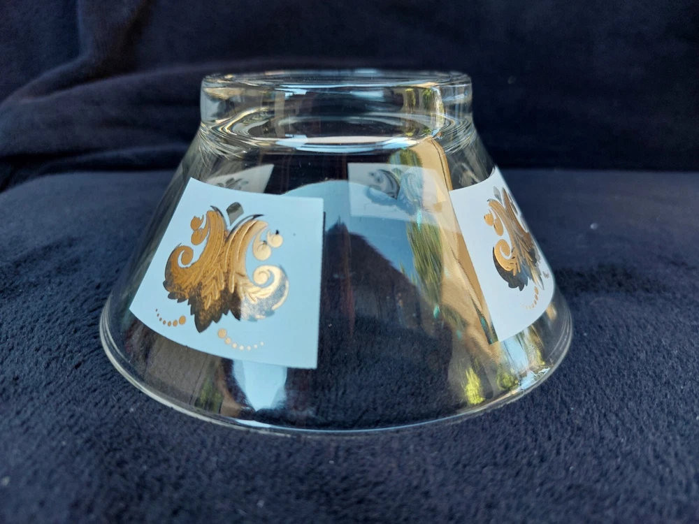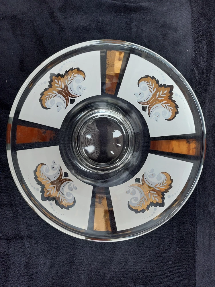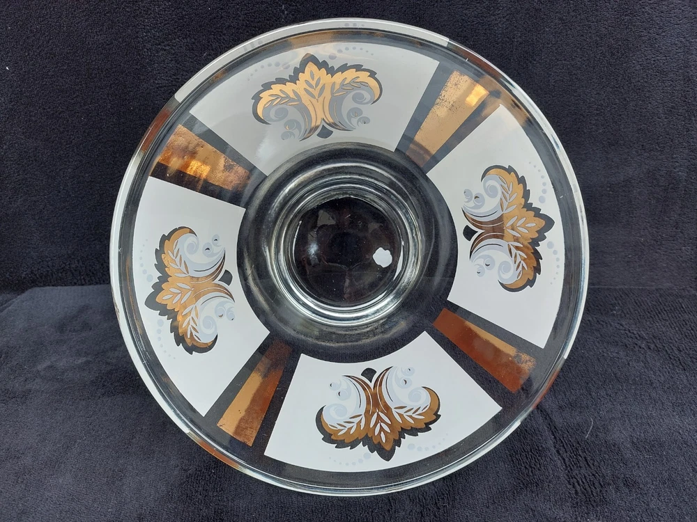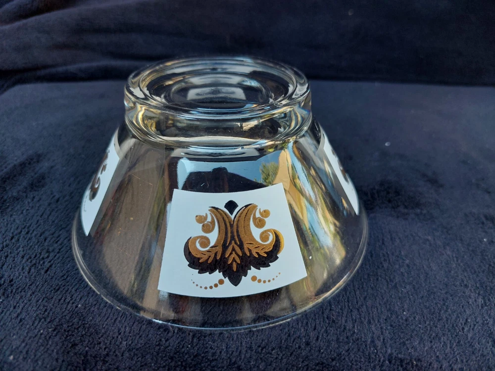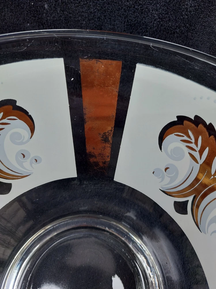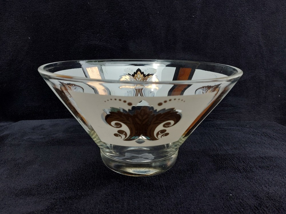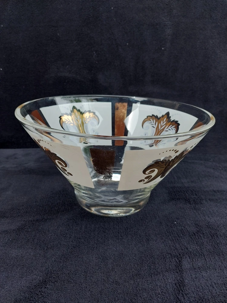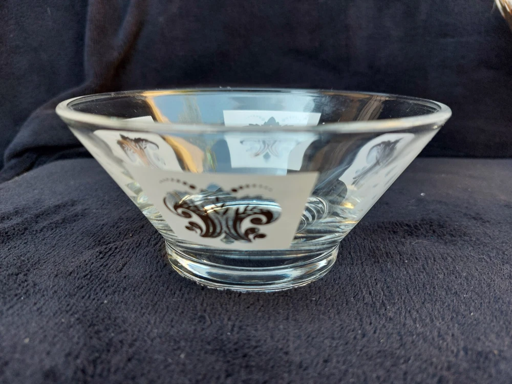 ANCHOR HOCKING FLEUR DE LIS LARGE SERVING CHIP & DIP BOWL. LARGE BOWL-VERY GOOD CONDITION, HOWEVER, SOME GOLD AND WHITE HAVE BEEN RUBBED OFF. THE LARGE BOWL MEASURES 10 1/4" ACROSS AND 6" TALL. THE SMALL BOWL IS IN VERY GOOD CONDITION. THE METAL BRACKET THAT HOLDS THE DIP BOWL IS NOT INCLUDED. (PLEASE DON'T WASH THIS IN A DISHWASHER, IT RUINS THE PAINTED PATTERN) Please see the pictures to see the condition. This is being sold as is with no returns, so please look at the pictures carefully for additional details and condition. Any questions or if you want more photos, please ask. I will ship to the continental US only. Payment required at the time of purchase, I will ship out promptly upon payment. Thank you