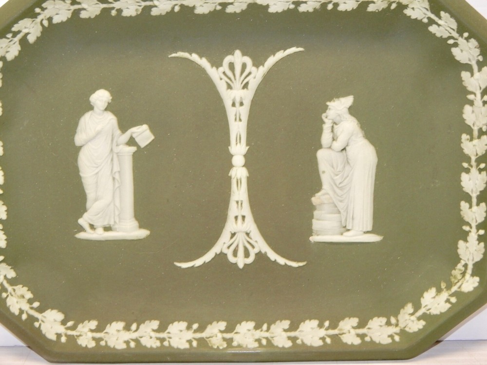 ANTIQUE WEDGWOOD OLIVE GREEN JASPER DIP LARGE VANITY TRAY ANTIQUE WEDGWOOD OLIVE GREEN JASPER DIP LARGE VANITY TRAY 10 1/2 INCHES ACROSS NO PROBLEMS NOTED Listing and template services provided by inkFrog