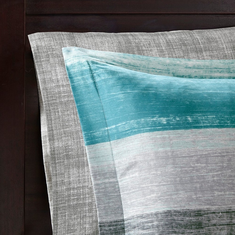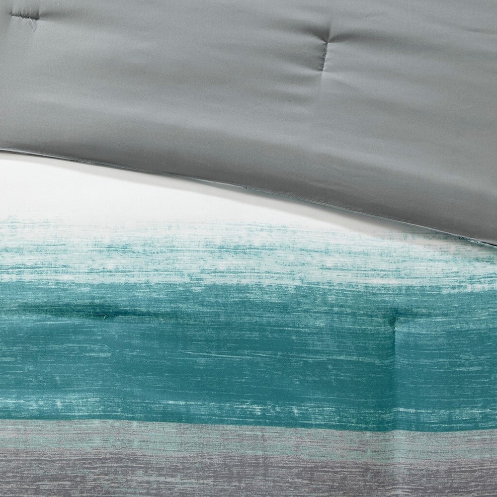 9-piece Comforter Set - QUEEN Product Description: A watercolor stripe print is beautifully displayed on the ultra-soft microfiber comforter in a modern gray, aqua and white. The matching shams mirror the pattern of the comforter, while an embroidered decorative pillow and a solid grey bed skirt complete the bedding set. A coordinating textured grey 100% cotton sheet set is also included. 9pc Set Includes: Comforter, 2 Shams, Bedskirt, Accent Pillow (see below for sizes), and a 4-piece sheet set (flat, fitted, & 2 pillowcases). Style: Beach/Coastal Color: Aqua, Gray, White Cover: 100% Polyester Microfiber Fill material: 100% Poly Sheets: 100% Cotton / 200TC twill Bedskirt: 15" drop Care instructions: Machine washable Dimensions: Comforter: Queen 90"W x 90'L Shams (two): Standard 20 x 26 inches Bedskirt: Queen (60 x 80" + 15" drop) Accent Pillow: 12"x18" 4-piece Sheet Set: Queen size; flat, fitted, 2 pillowcases Also available in OTHER SIZES & COLORS . Please Click Here ~~~~~~~~~~~~~~~~~~~~~~~~~~~~ Returns or Exchanges Please see the Shipping Tab above Shipping Locations: Shipping cost stated is to the 48 contiguous United States. We will gladly ship to Canada, Hawaii, Alaska, Puerto Rico and APO/FPO (Military) addresses, but there may be additional freight charges. Buyers living in these territories must email your zip code BEFORE bidding for a freight quote. Otherwise, we will assume your bid is an acceptance that there will be an additional shipping cost. Buyers are responsible for any and all Customs Fees and/or Duty Fees, or Taxes assessed by their Country.