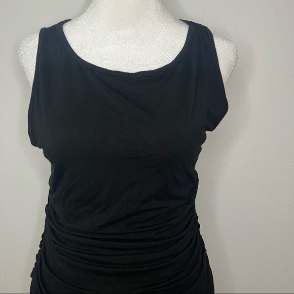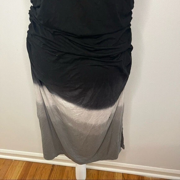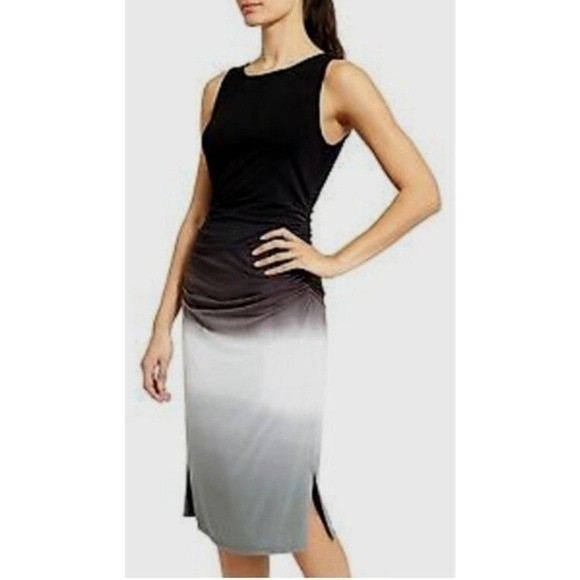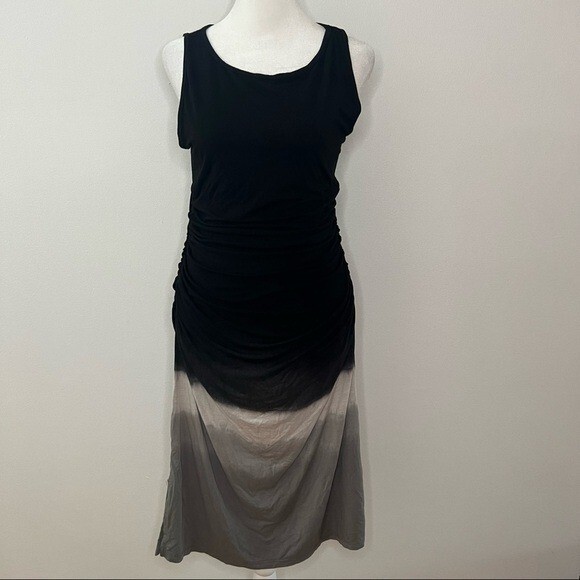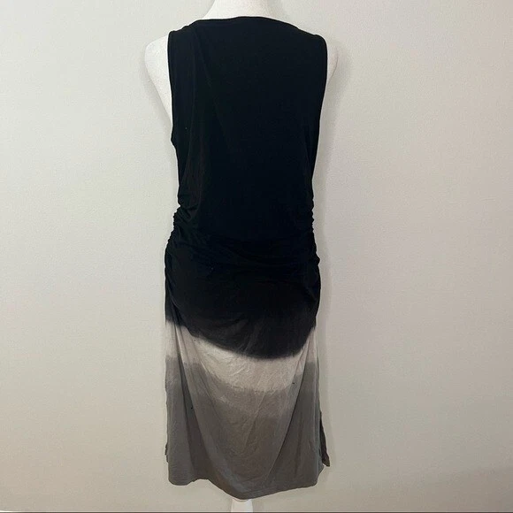 IN EXCELLENT PRE LOVED CONDITION SIZE: LARGE Athleta Dip Dye Ombré Sleeveless Midi Dress. High neckline with a gathered waist on either side, side slits at hemline. Measurements Bust - 17.5” Length - 45” All measurements are approximate 92% Rayon 8% Spandex Machine wash, lay flat to dry 9-1432