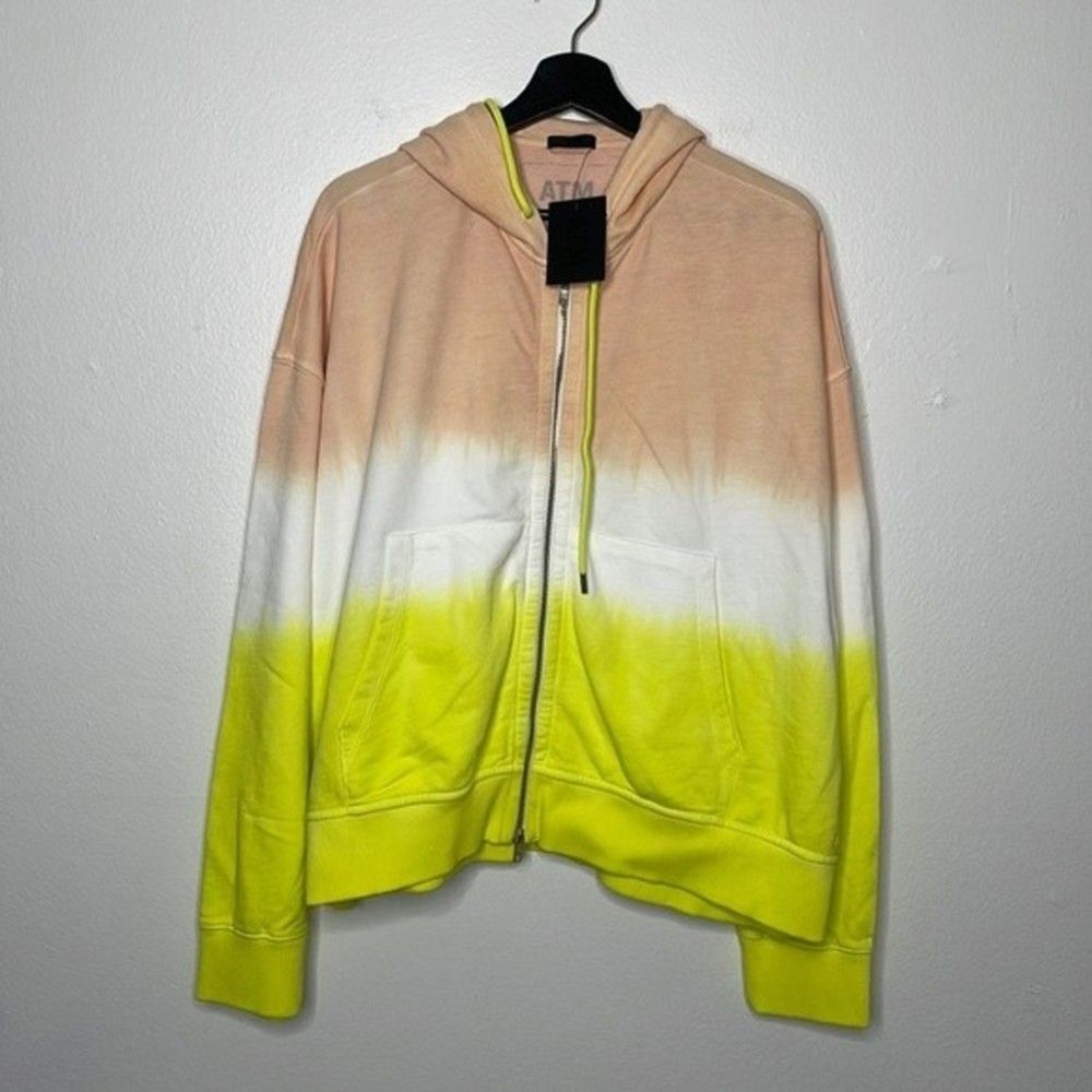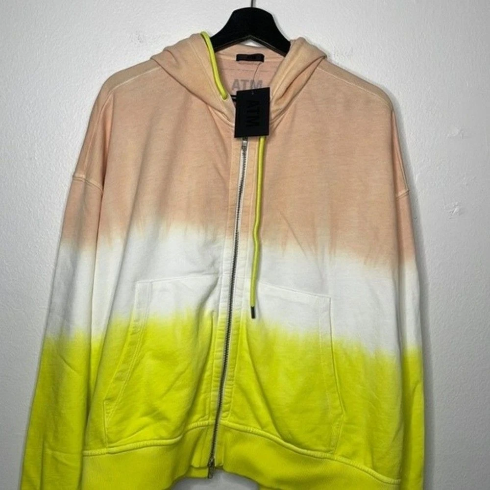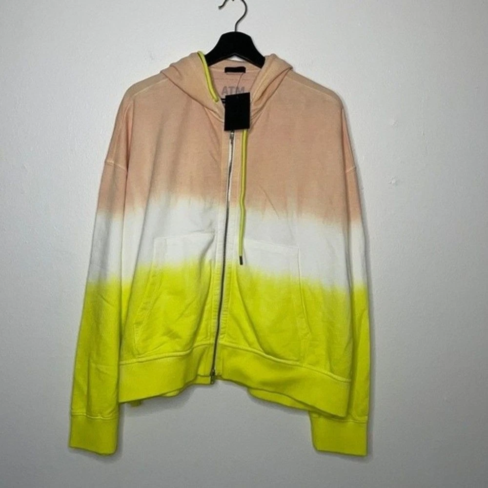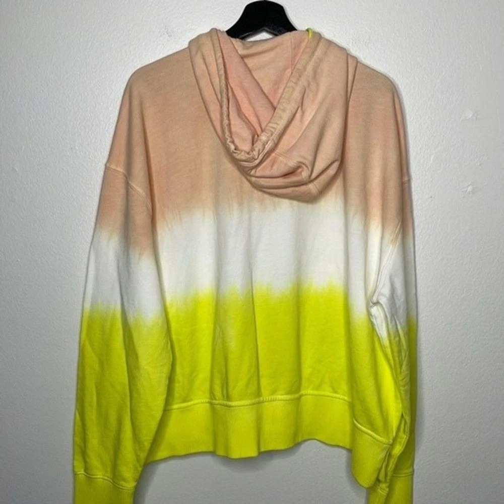 Like a sunrise you can wear, this dip-dyed French terry hoodie brings happy hues and cozy feelings to your day. 22" length (size Medium/Large) Front zip closure Drawstring hood Split kangaroo pocket 100% cotton Hand wash, dry flat Made in Peru True to size. XS/S=0-4, M/L=6-10. Approx measurements laying flat: Pit to Pit: 28.5” Pit to Hem: 13” Shoulder to Hem: 23.5” E 0988