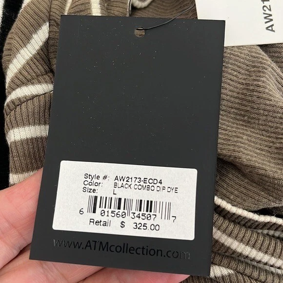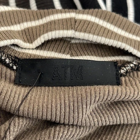 ATM Anthony Thomas Melillo ATM Blk Combo Dip Dye Dress Women's L Ombre Lightweight Stretch Knit New With Tags, mini length on most Black & taupe striped, mock neck, long sleeve, so soft! Knit is 96 micromodal, 4 spandex Please see photos for measurements and more information. Combine items from my store to save on shipping costs. 6305 Luxe and sustainable. Those are two words that make up the designs of Tony Melilo. His line ATM is proudly produced in Peru. MSRP $325 ATMA-WD49. AW2173 ECD4. 6305