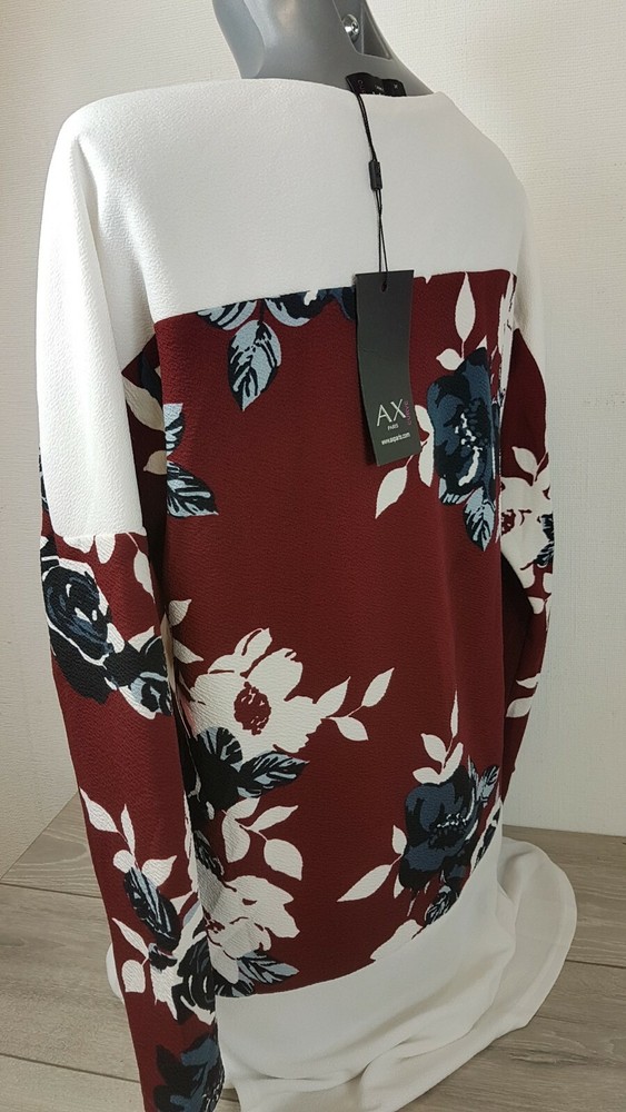 AX Paris Ladies Womens Top Print Panel Dip Size Uk 14 LARGE...