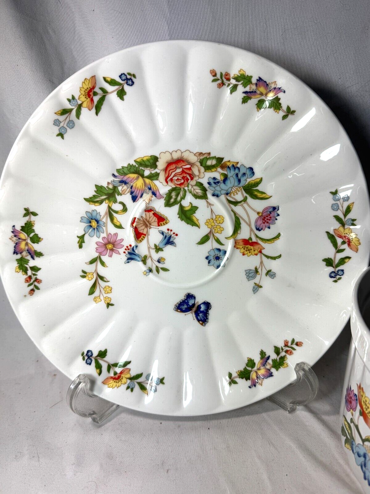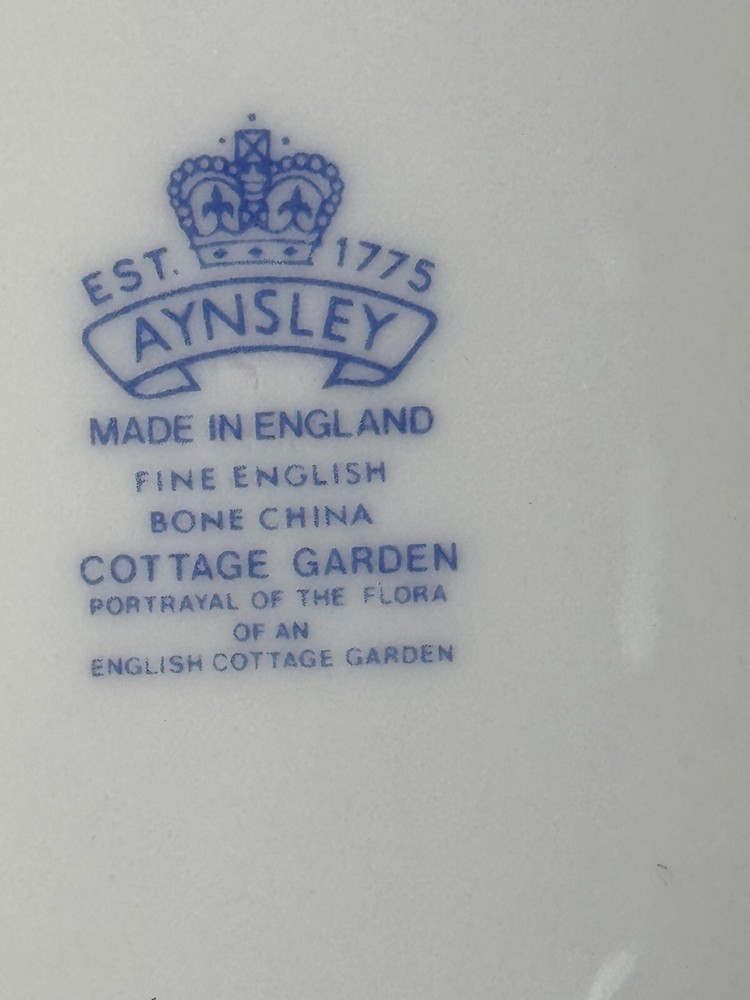 This item for sale is a 10.25 inch chip dip plate only and a large 7.5 inch souffle bowl that goes in the oven, in the Cottage Garden pattern by Aynsley. Both in perfect gently used condition. No bowl comes with the chip/dip plate, but you can use a plain white bowl or a matching tea cup. Please enjoy 8 pounds free insured shipping to your USA address Please check out our other items, we probably have what you need