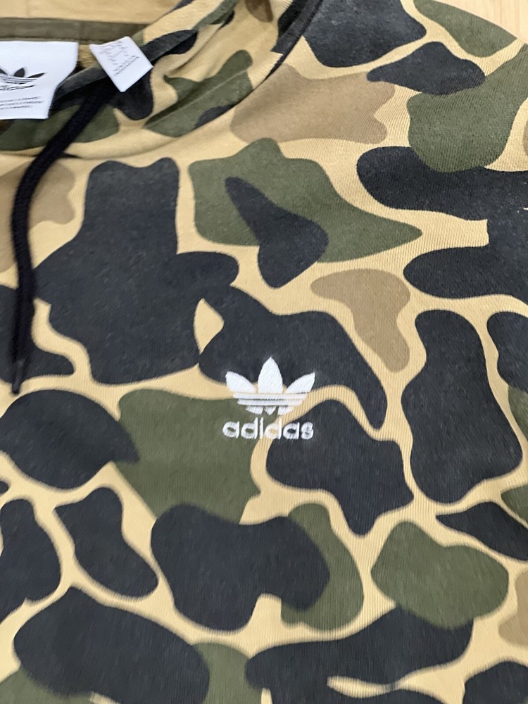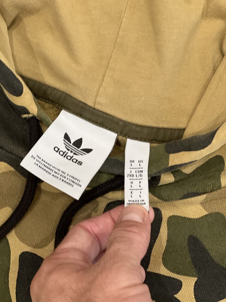 This Adidas Originals hoodie features a unique camouflage pattern with a colorful ombre design. It is made from soft fleece fabric and is perfect for running and jogging. The hoodie is a size L and is designed for men. It is part of the Adidas Originals product line and is manufactured by the well-known sportswear brand. The hoodie is perfect for those who love colorful and unique activewear.