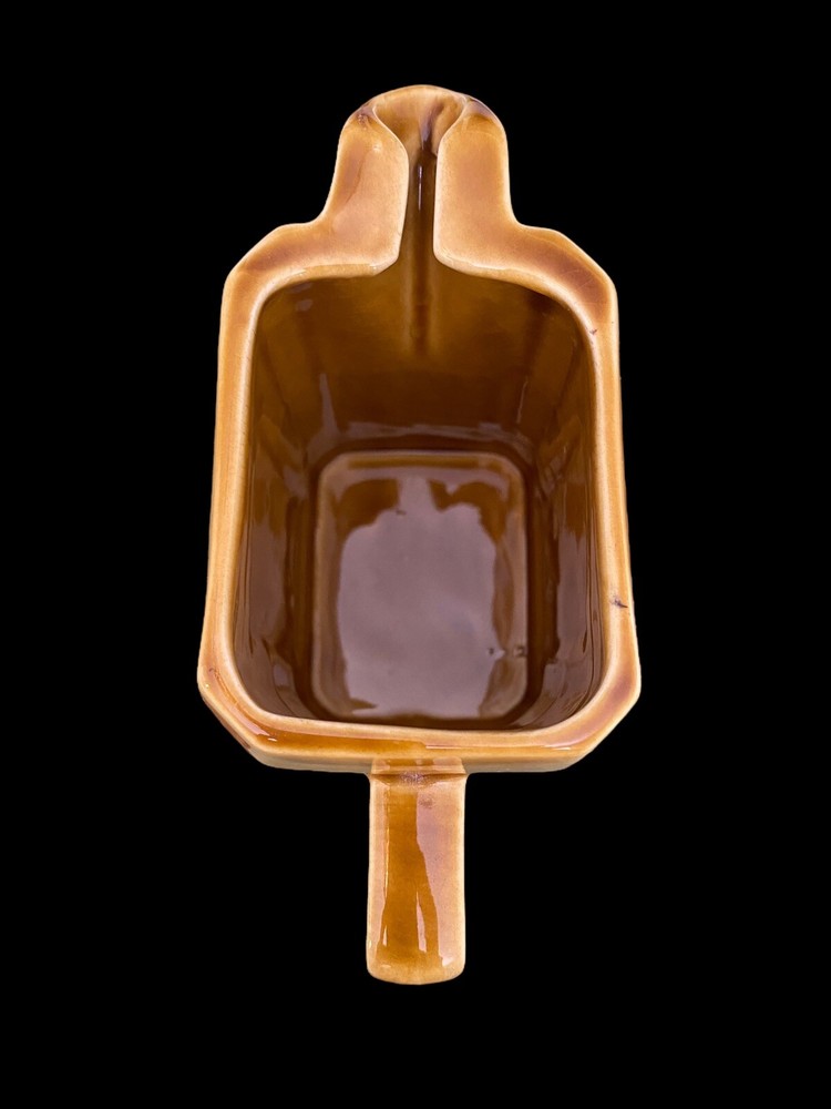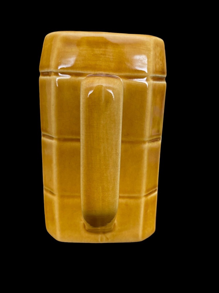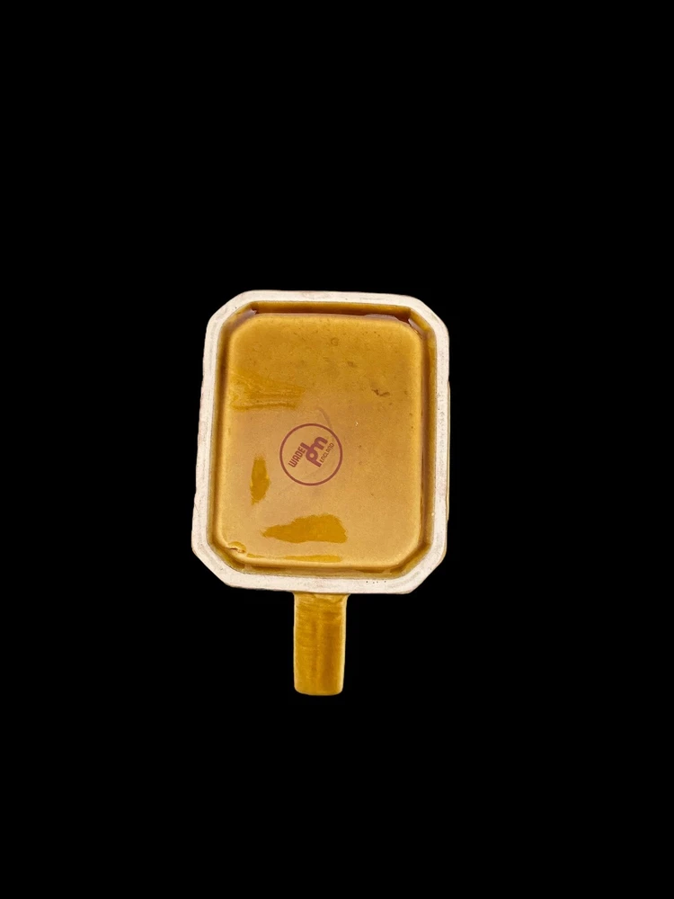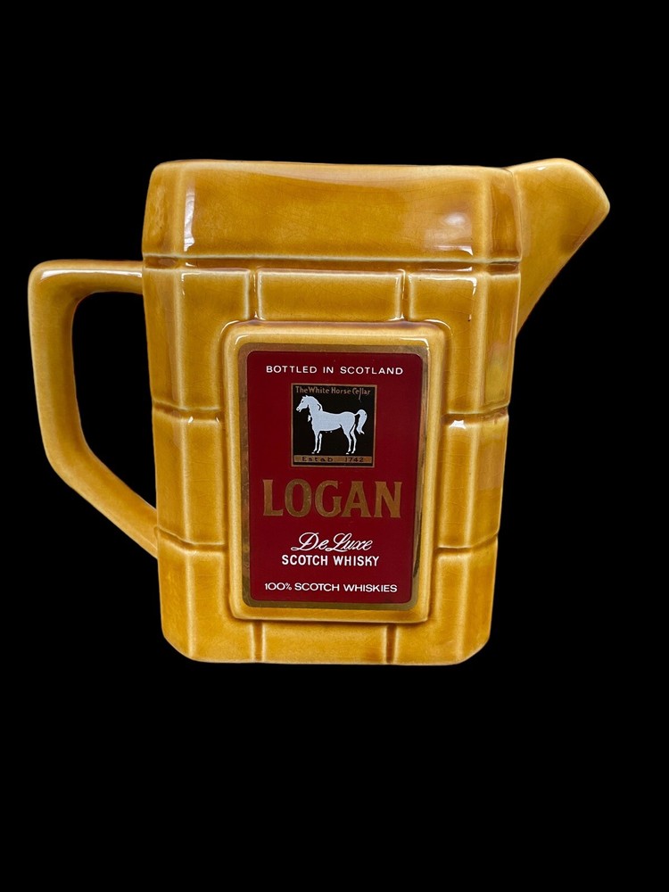 I bought from a local collector. This is the only one I see like this. I liked the mustard glaze and the brickwork design impressed into the ceramic body. The Logan brand is part of the White Horse whisky family. Founded in 1880 by James Logan Mackie, and named after the family Inn in Edinburgh, White Horse whisky is still such a popular brand. This jug was made by wade. The jug has no chips or cracks, there is gentle all over crazing which is due to the age. These jugs make amazing additions to any home bar or man cave, they look great on shelves or bar tops where they add an advertising accent, making the room look authentically pub like. Height 5.5” Length 6.5” Width 3”