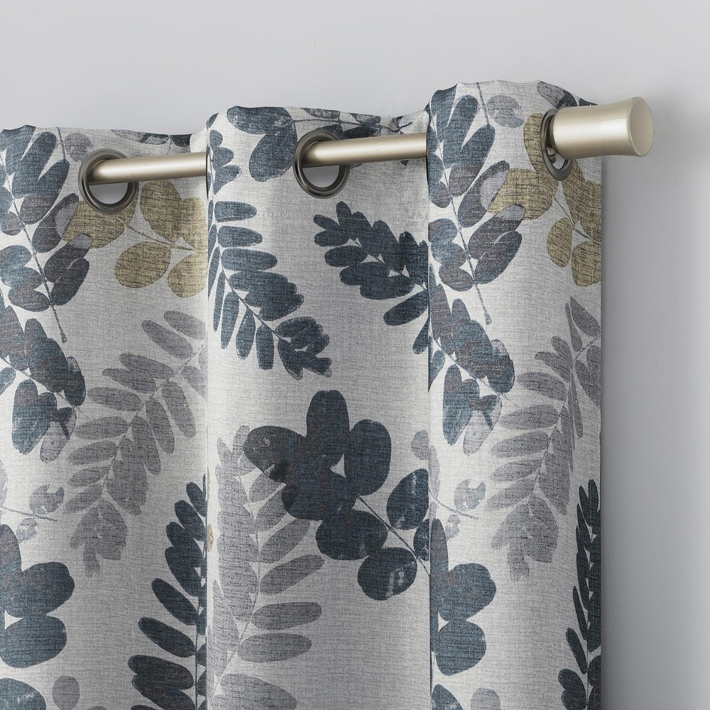 Alamea Botanical Print Theater 100% Blackout Grommet Curtain Panels provide the ultimate in light blocking technology to keep out even the harshest of light while bringing organic design to any room of your home with an attractive botanical leaf print. Extreme Blackout technology is laboratory tested to block out 100% of light, reduce outside noise by up to 45%, and decrease energy lost through your windows by up to 50%. Comfort is optimized with thermal properties that help keep summer heat and winter chill out of your home. Built-in metal grommets allow for easy slide-through installation on curtain rods up to 1.5" in diameter. Hang in your entertainment room to eliminate screen glare and reduce distracting outside noise, or in your bedroom for enhanced privacy and a sounder, more uninterrupted sleep. Sold as individual panels measuring 40" width by 95" length. Measure carefully before selecting your desired size and quantity. Rod not included. Machine wash cold on gentle cycle. Use non-chlorine bleach when needed. Tumble dry on low heat, using a cool iron as needed. Botanical leaf printed design Extreme Blackout technology blocks out 100% of outside light Energy Efficient design reduces energy lost through your windows by up to 50% Thermal properties help keep summer heat and winter chill out of your home Grommet top design allows for easy slide-through installation on curtain rods up to 1.5" in diameter Panels sold individually. Measure carefully prior to purchase (Image features 2 panels)