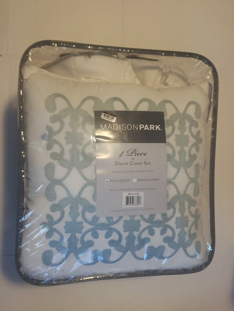 Alexis 2-in-1 Duvet Set (Full/Queen) White - 4pc. Condition is "New with tags". 1 duvet cover, 2 shams, 1 decorative pillow...