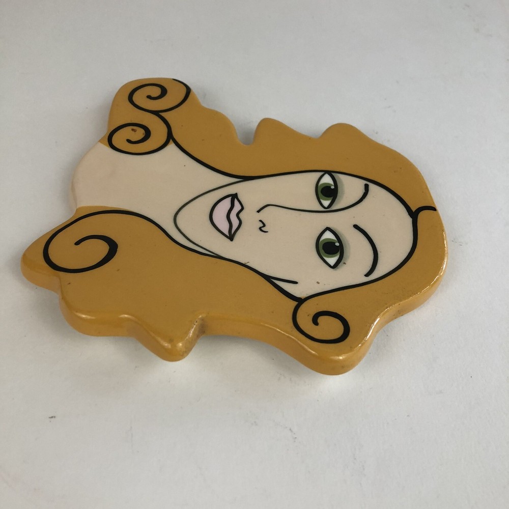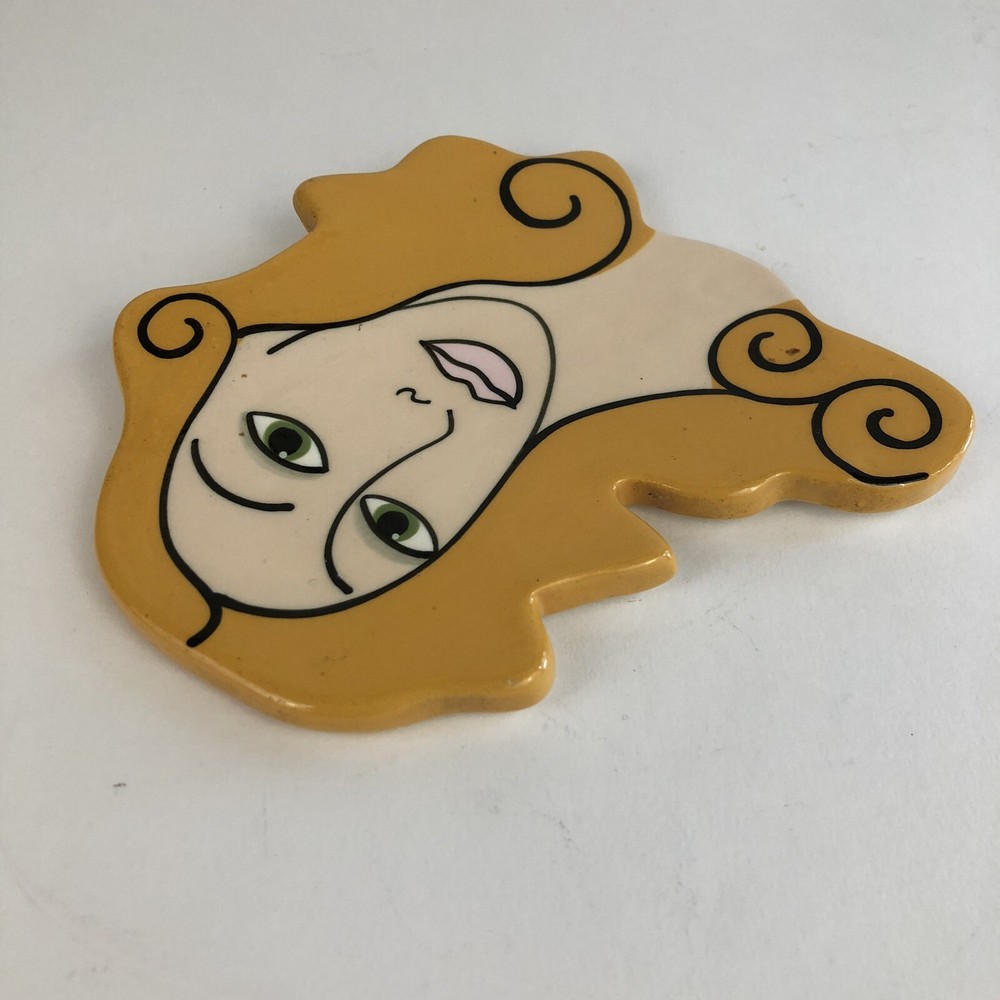Vintage Alison Palmer Studio signed trinket dish features a face reminiscent of Boticelli's Birth of Venus. 6" long, 5.5" wide. Excellent condition, no cracks or chips....
