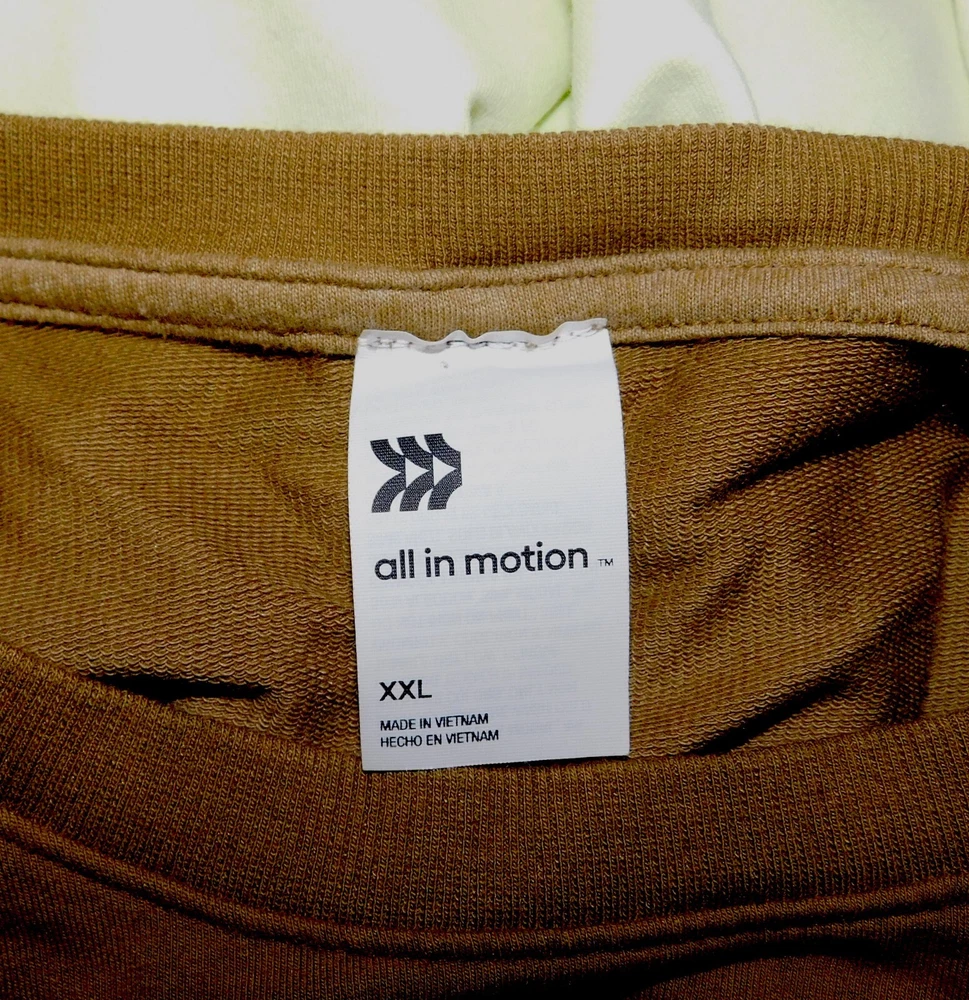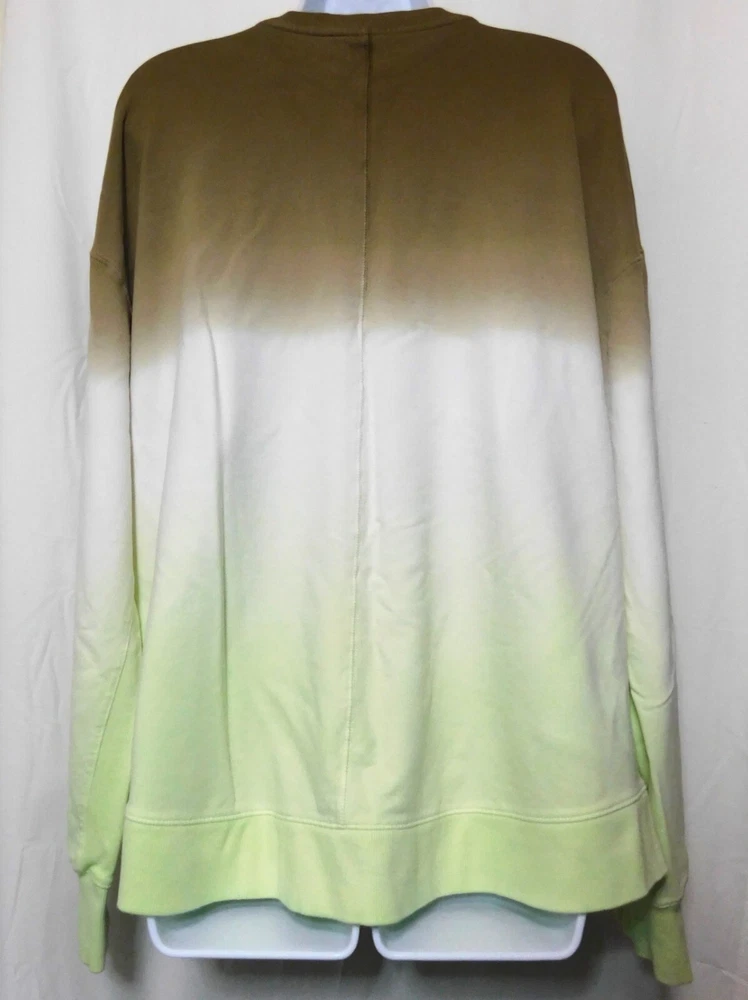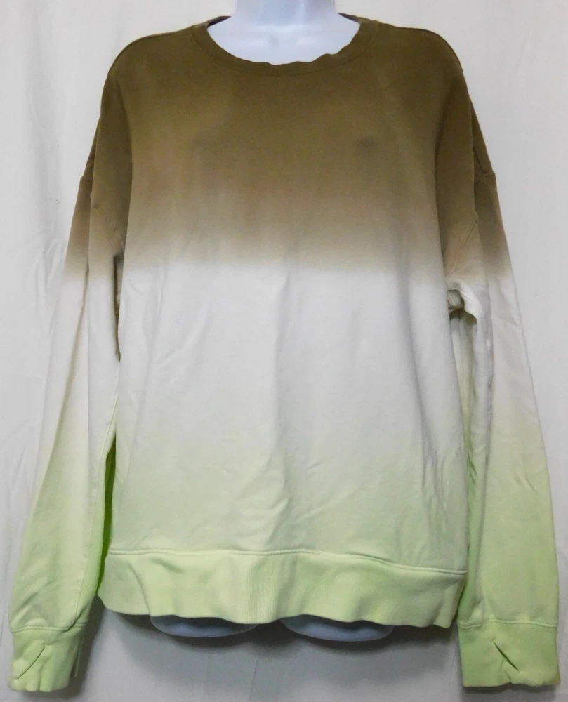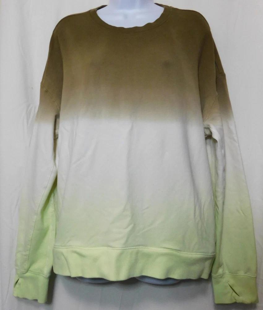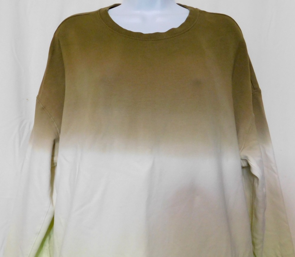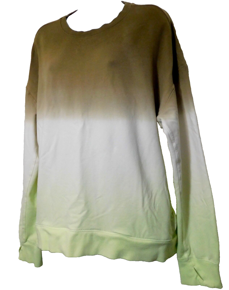 All in Motion Sweatshirt Crewneck Dip Dye Green Pockets Thumbholes Women's Size XXL (approx. 25" across chest un-stretched, 28" long down back) New without Tags - according to website size chart fits bust up to 44.5", waist 38.5", Hip up to 46.5" The Absolute Star of this is its Soft Stretchy Fabric! Love the Feel of this. Next, a Lovely Stylish Dip Dye Green Coloration Long Sleeves with Thumbholes in the Ribbed Cuffs Hidden Side Pockets Colors: Olive, Ivory and Lime Green 58% Cotton / 38% Modal / 4% Spandex Weighs 1 lb exactly, choose the shipping option that works best for your location Only One Available, but check our store for other great similar items