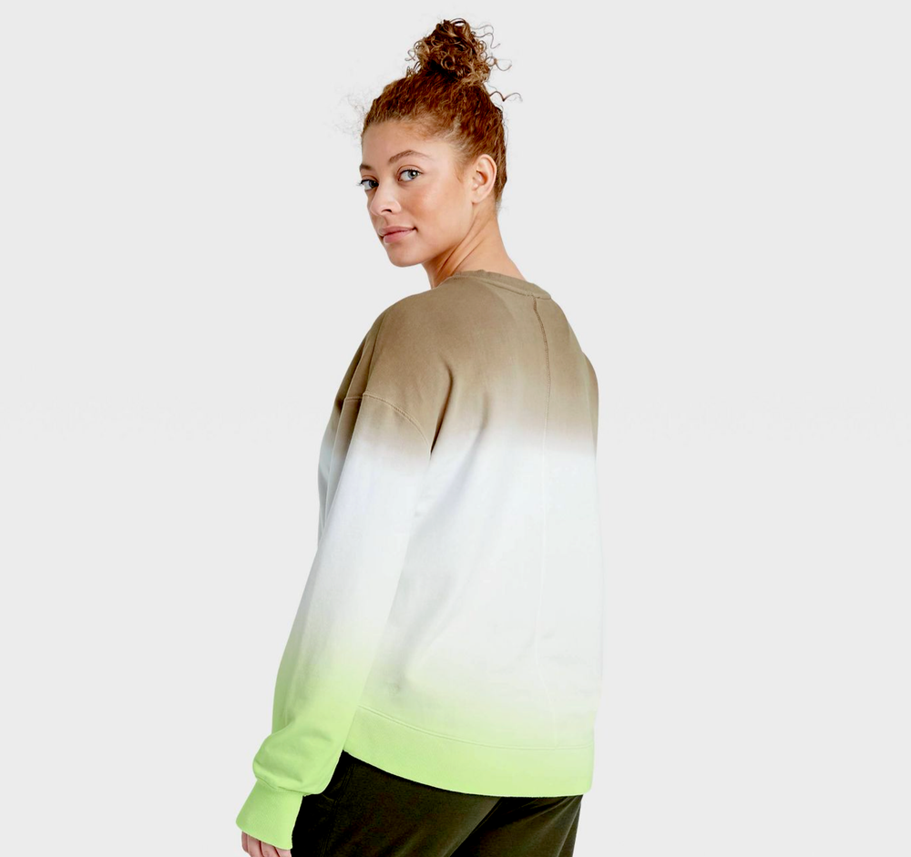 This sweatshirt is super soft and stretchy, making it incredibly comfortable to wear all day. The dip-dye green color is stylish and unique, while the thumbholes and hidden pockets add both function and flair. The ribbed cuffs and crewneck fit perfectly, and the fabric blend keeps it cozy without being too heavy. The sizing is spot-on—true to the chart—and the quality feels premium. Perfect for lounging or layering, this is a must-have for anyone who loves a relaxed yet put-together look. Totally worth it!