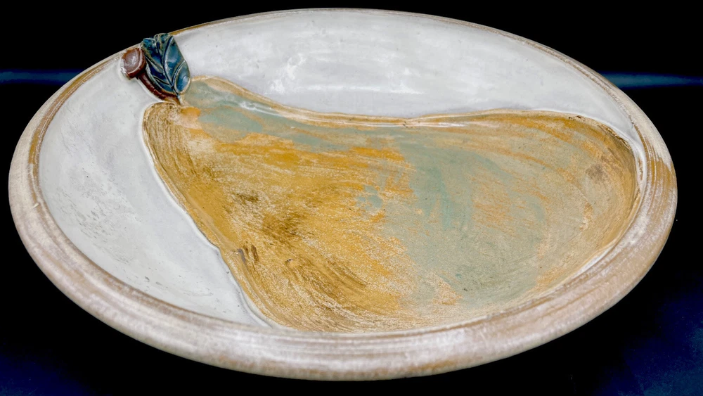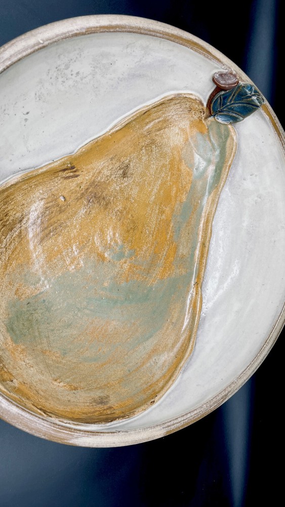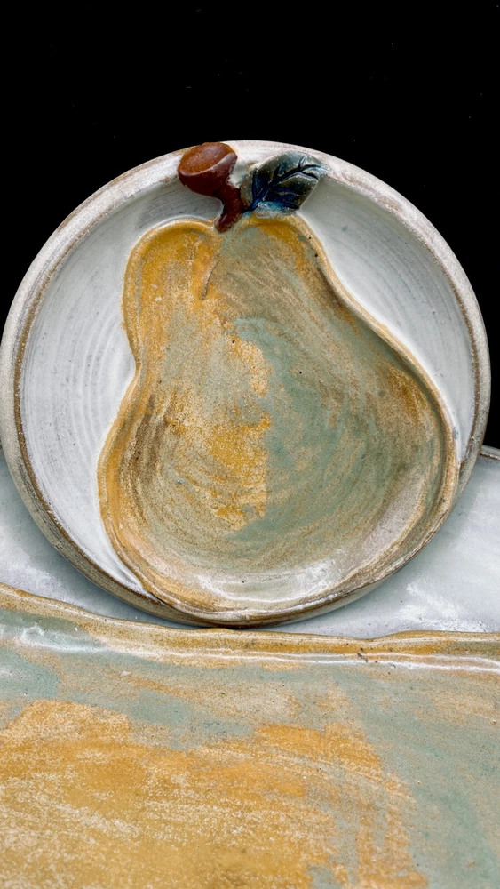 This handmade ceramic set is absolutely stunning! The large bowl and small plate feature gorgeous 3D pears with stems and leaves, adding a lovely textured touch. The glaze gives them a rich, polished look, and the artist's signature makes it feel extra special. Perfect for serving or display—such a unique and elegant addition to any home!
