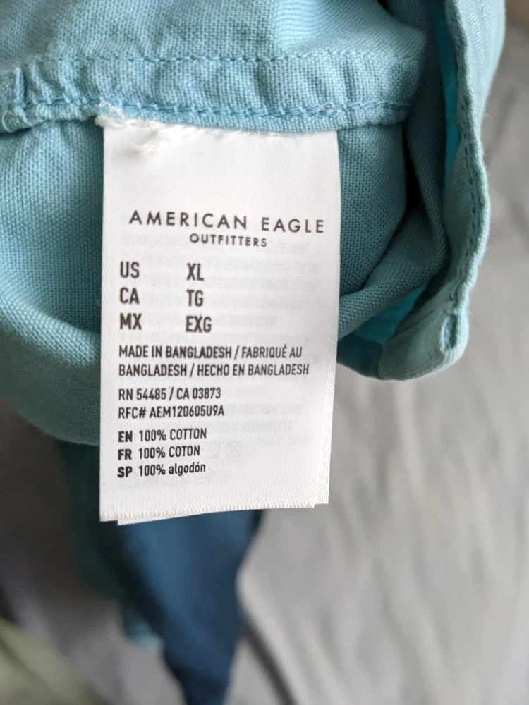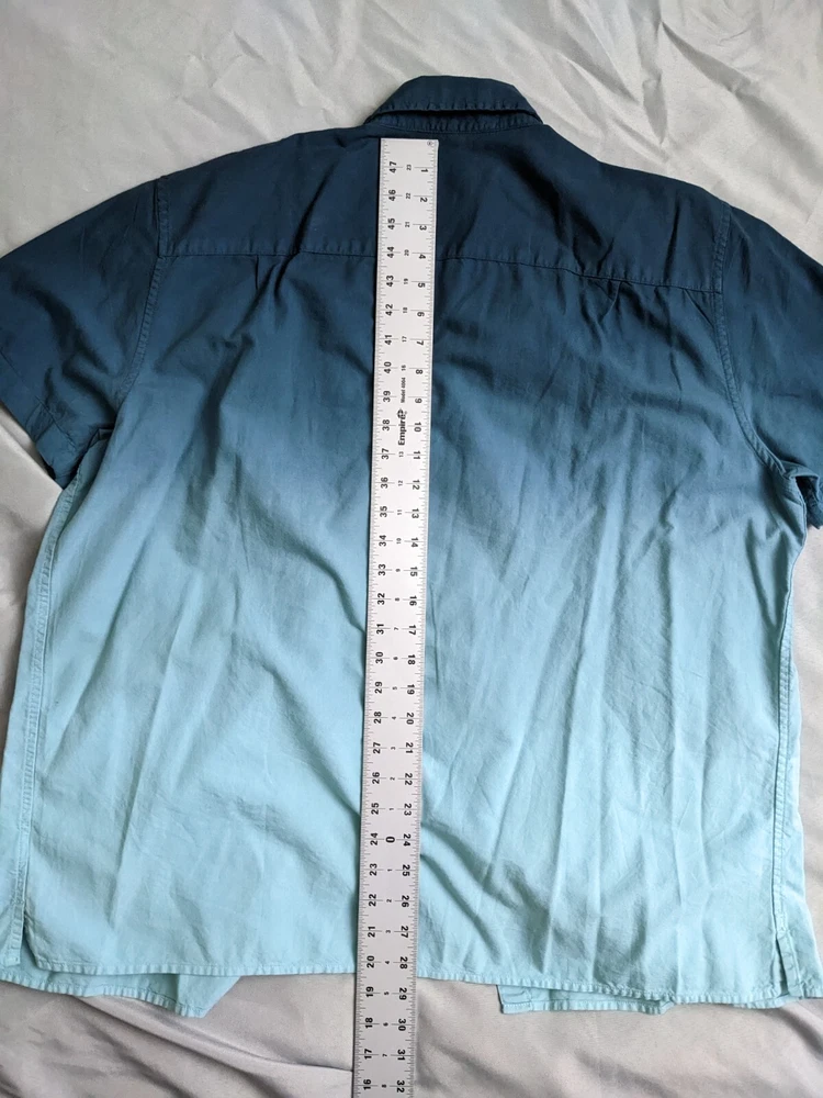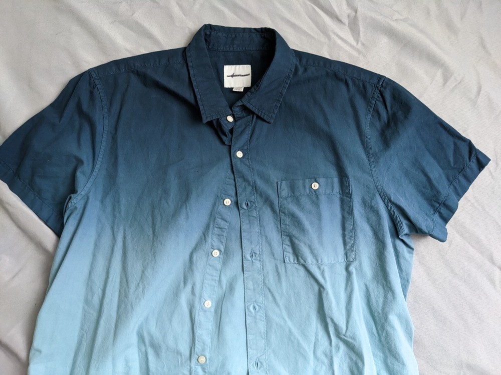 American Eagle Shirt Blue Dip Dye Button Up Short Sleeve Mens Size XL Pre owned Good Condition Always check measurements seen in photos before purchasing , happy shopping! Shipping Policy Expect items to be shipped out in two business days or less. Please feel free to ask any questions you may have. Return Policy We offer free returns within 30 days of receiving your purchase. It can take months , even years for clothing materials to fully break down in landfills! By choosing to buy secondhand clothing instead of brand new, you reduce waste and help the planet. In this way, thrift shopping is the ultimate way to live out the “reduce, reuse, recycle” motto!