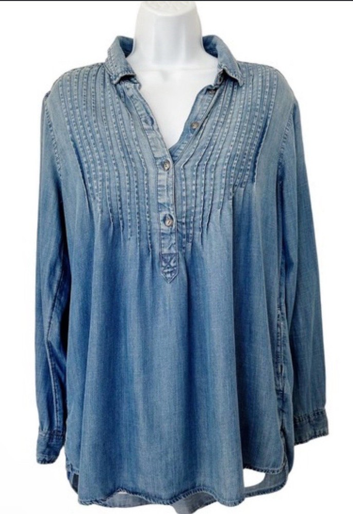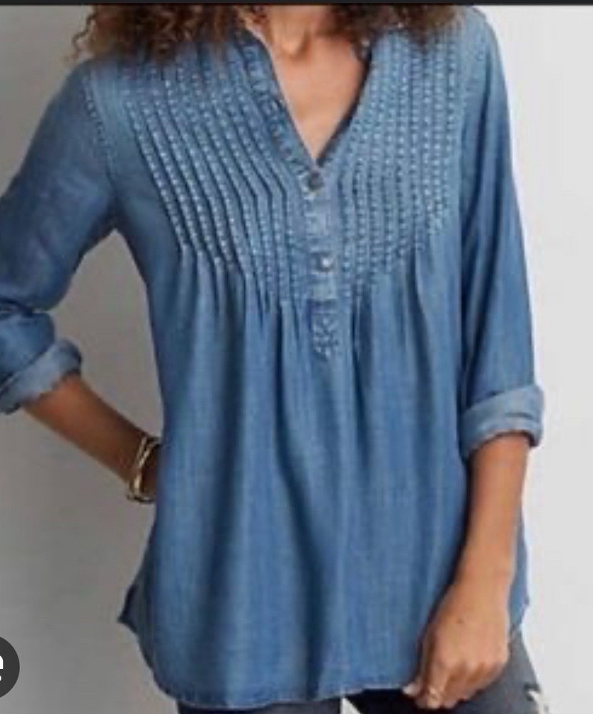 Upgrade your wardrobe with the American Eagle Women's Jegging Fit Dip Dyed Lyocell Denim Tunic Shirt. A perfect blend of comfort and style, this blue blouse features a relaxed fit that's flattering for all body types, and a collared neckline that adds a touch of sophistication. The long sleeves and breathable lyocell fabric make it an excellent choice for any season, ensuring you stay stylish year-round. Functionality meets fashion with this tunic shirt's practical pockets and metallic button accents, giving you a modern twist on classic designs. Whether you're out for a casual day or traveling, this machine-washable top will keep you looking chic without compromising on comfort. With its versatile pattern and solid style, this piece is a must-have for any contemporary wardrobe.