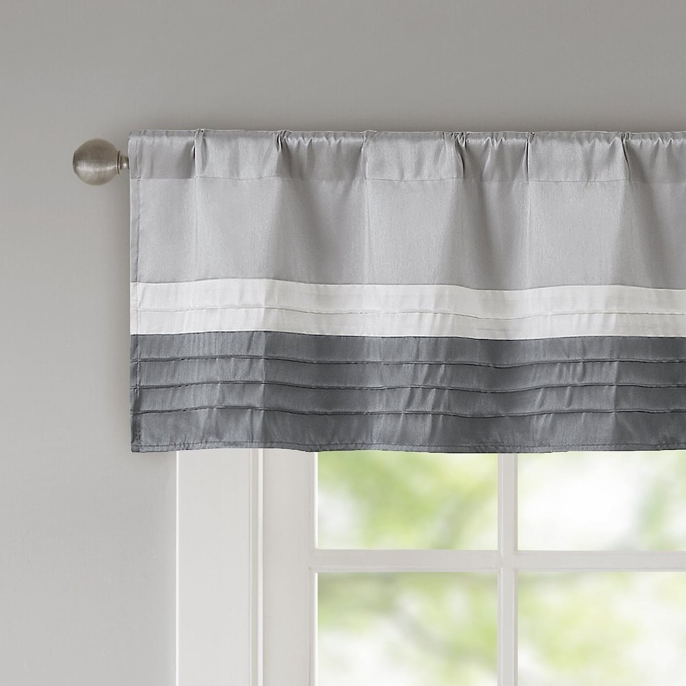 Pieced and pintucking detail Light sheen fabric Additional lining Faux Silk 1 Valance:50"W x 18"L Rod pocket Machine Washable...