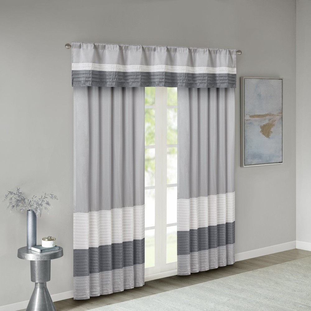 Pieced and pintucking detail Light sheen fabric Additional lining Faux Silk 1 Valance:50"W x 18"L Rod pocket Machine Washable