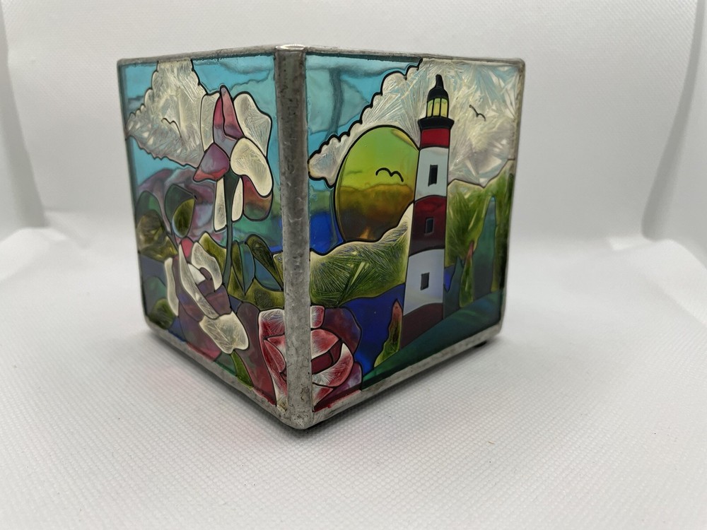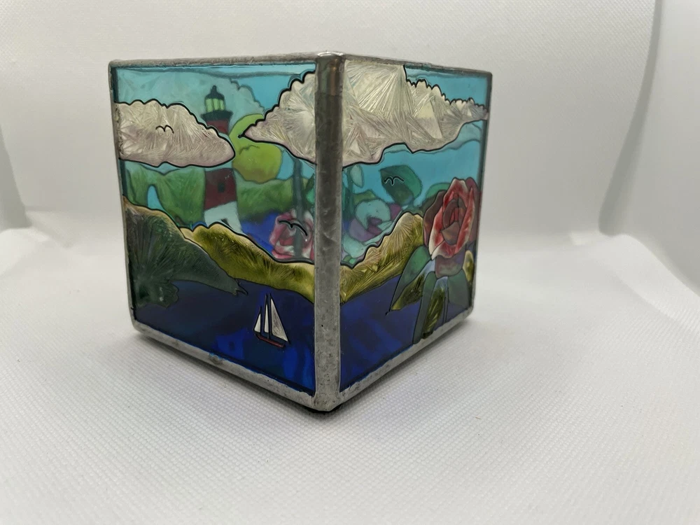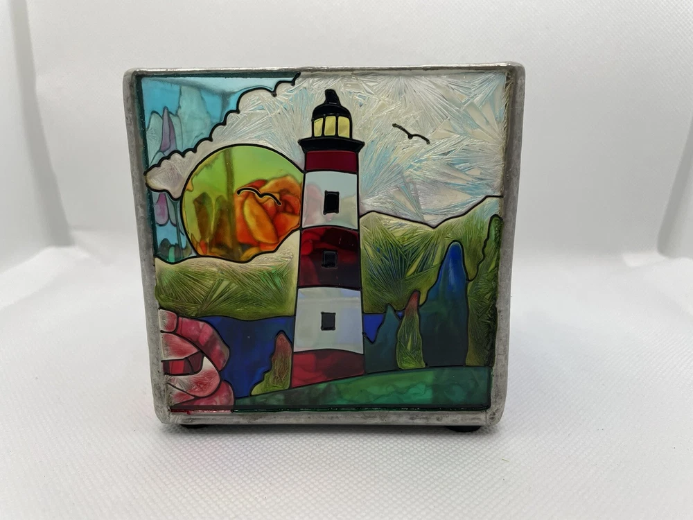 Amia Studio Lighthouse Square Mirror Bottom Hand Painted Trinket Box Nautical. B5