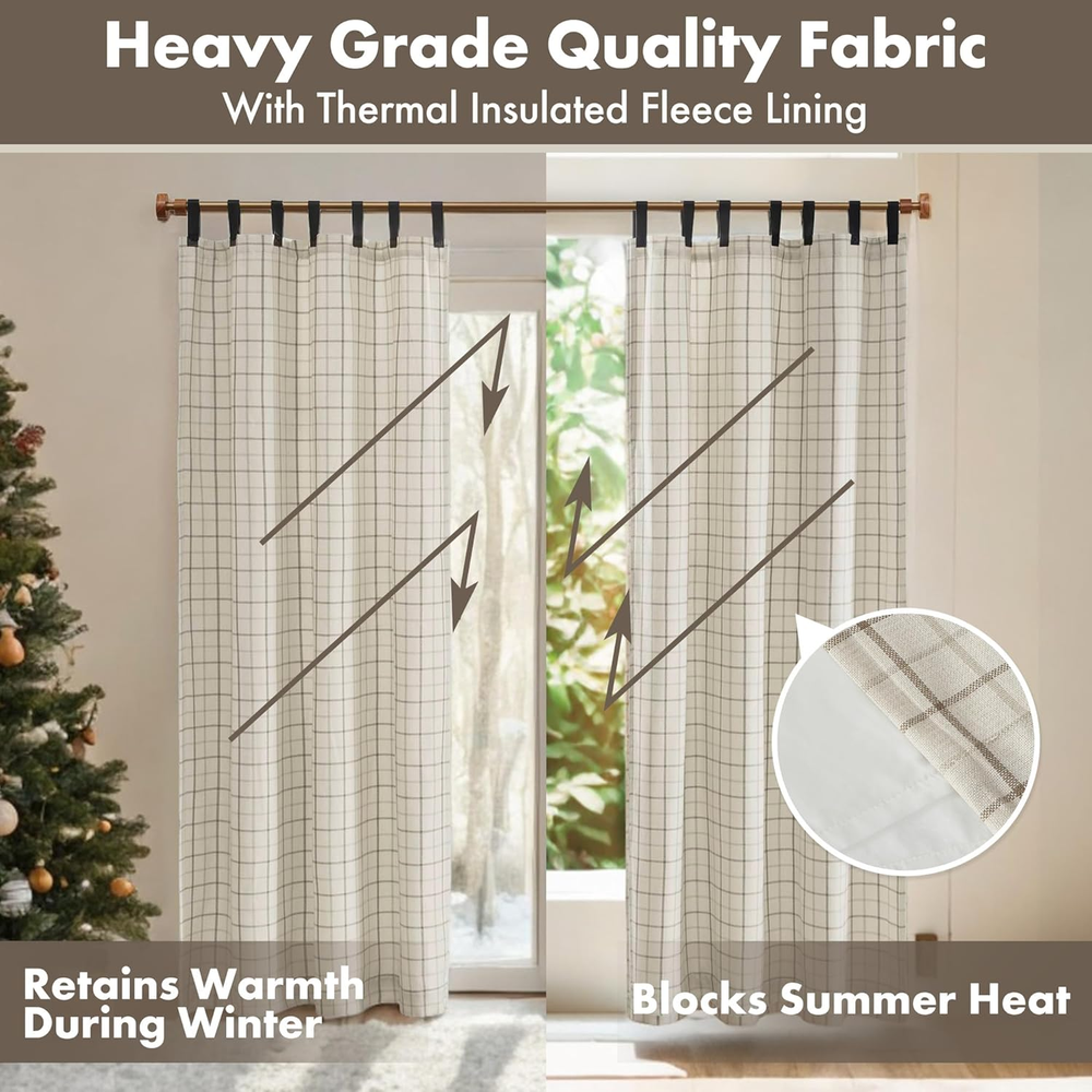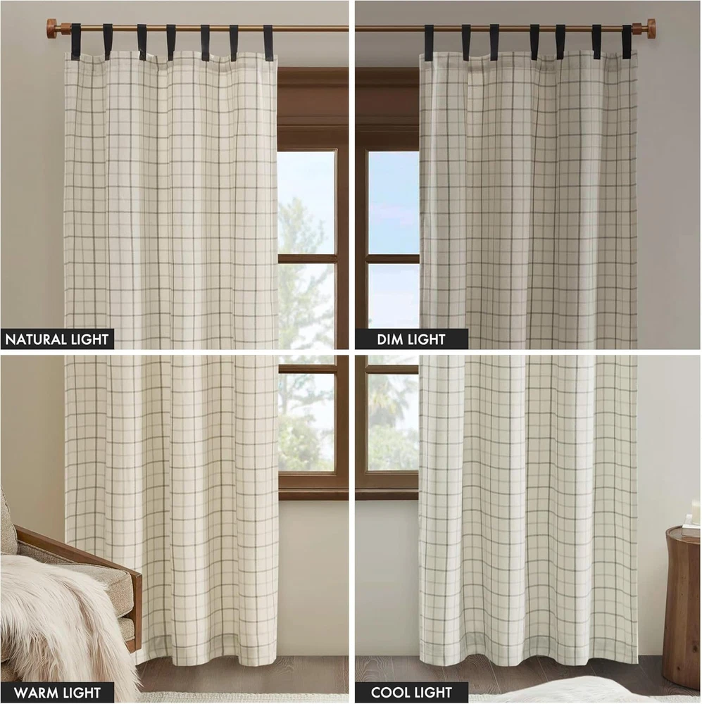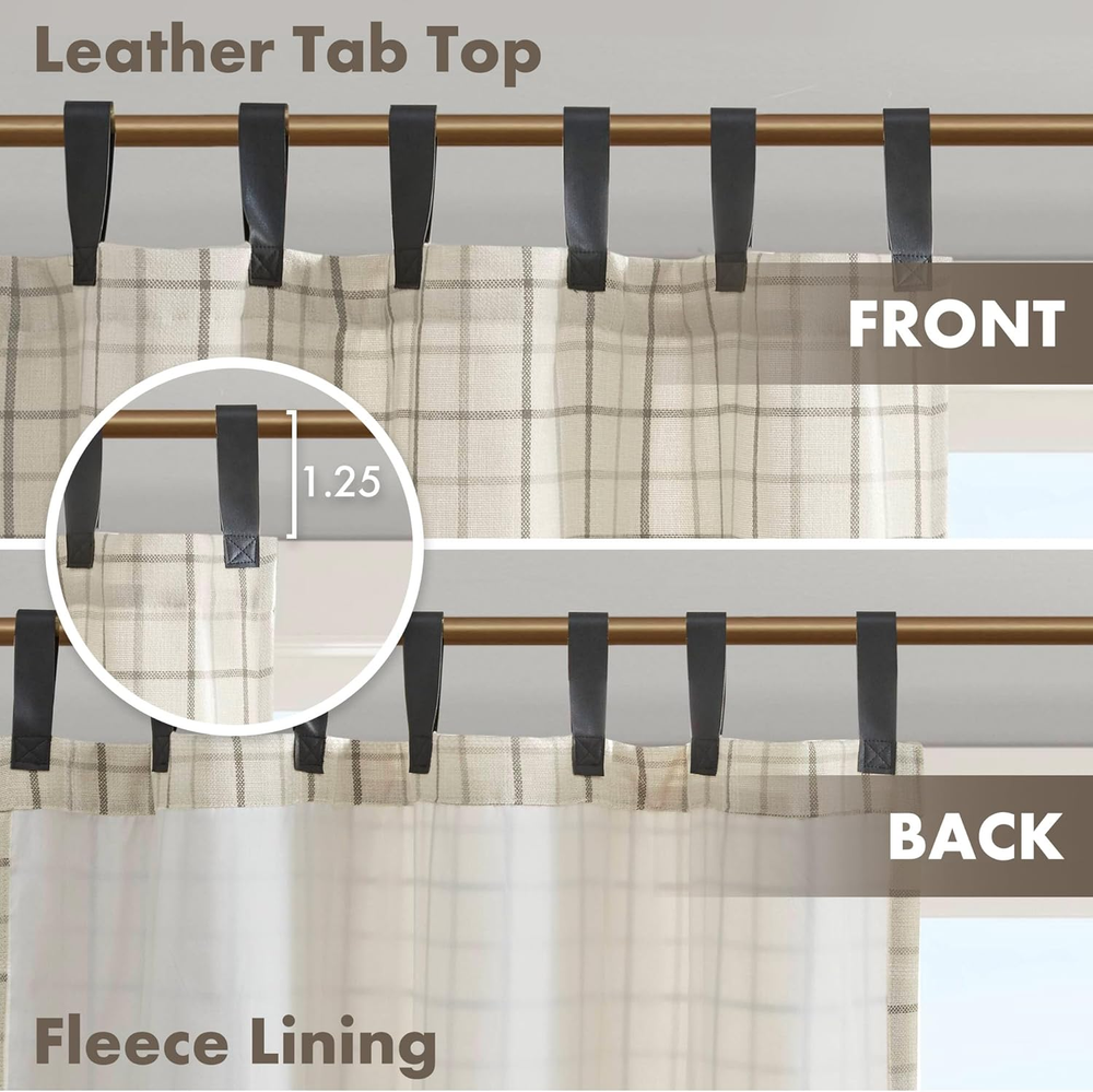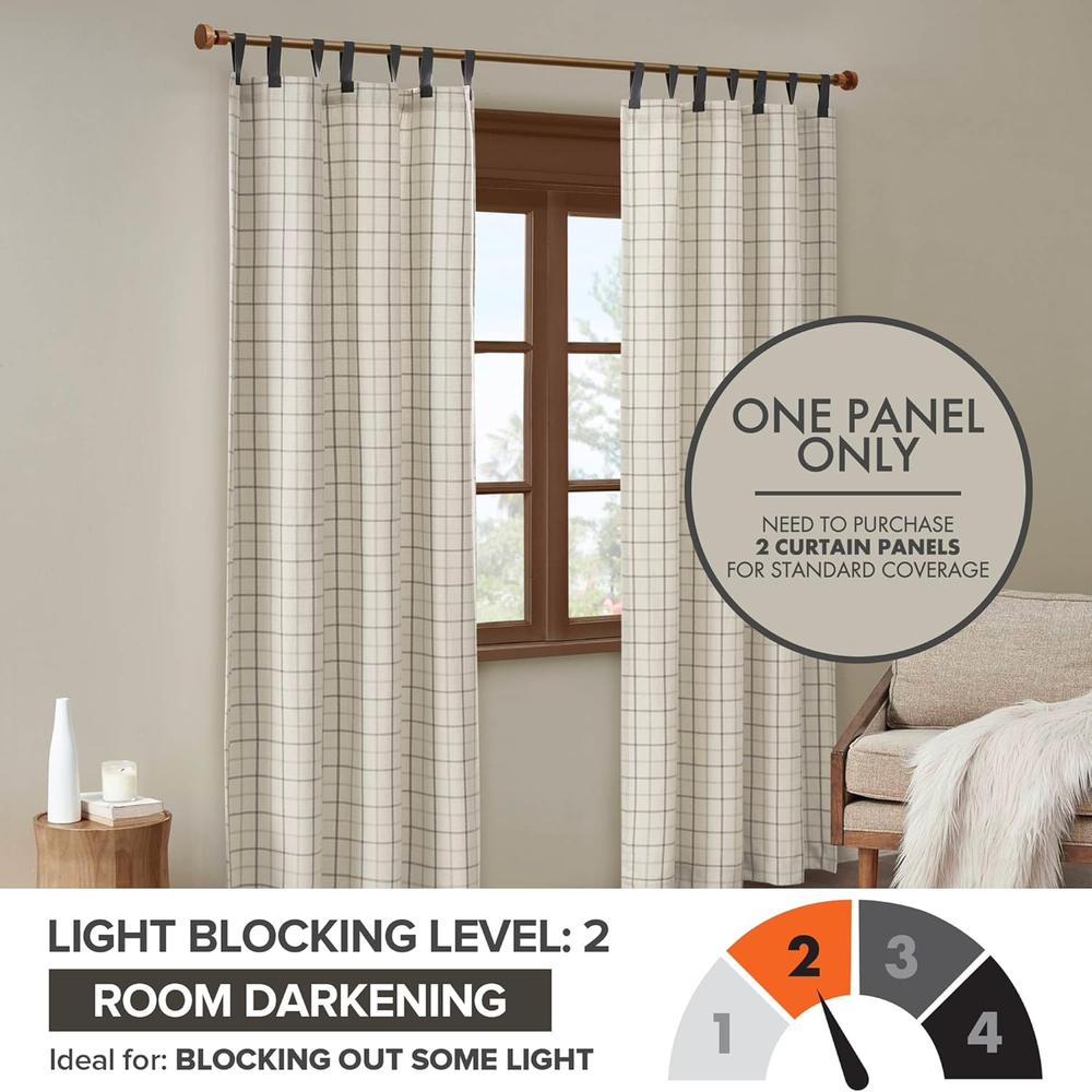 Polyester Lodge Styling - The Madison Park Anaheim Plaid Leather-Like Tab Top SINGLE-PANEL with Fleece Lining offers a stylish and casual cabin update to your home décor High Quality - A yarn-dyed natural-hued plaid pattern adorns the heavyweight base fabric for a warm and cozy look Thermal Insulated - The added fleece lining on the back provides more privacy and quality thermal insulation, while still letting the natural sunlight into warm your home Measurement - 1 Panel: 50"W x 95"L. As shown in image - Need to purchase 2 curtain panels for each window for standard coverage Durable & Easy Care: Our window curtain boasts quality stitching offers durability to withstand daily wear and tear. For easy care, simply machine wash separately in cold water on a gentle cycle and tumble dry on low heat The Madison Park Anaheim Plaid Faux Leather Tab Top Panel with Fleece Lining brings a stylish, rustic charm to your living space. Its multi-color plaid pattern on heavyweight fabric creates a cozy ambiance while the rod pocket design top adds a distinctive designer look. An added fleece lining enhances privacy and thermal insulation, without blocking natural sunlight. These machine-washable panels are sold individually. For standard size windows, two panels are recommended.