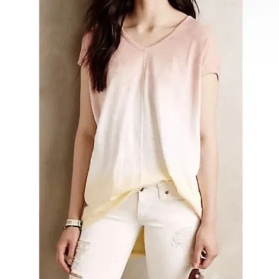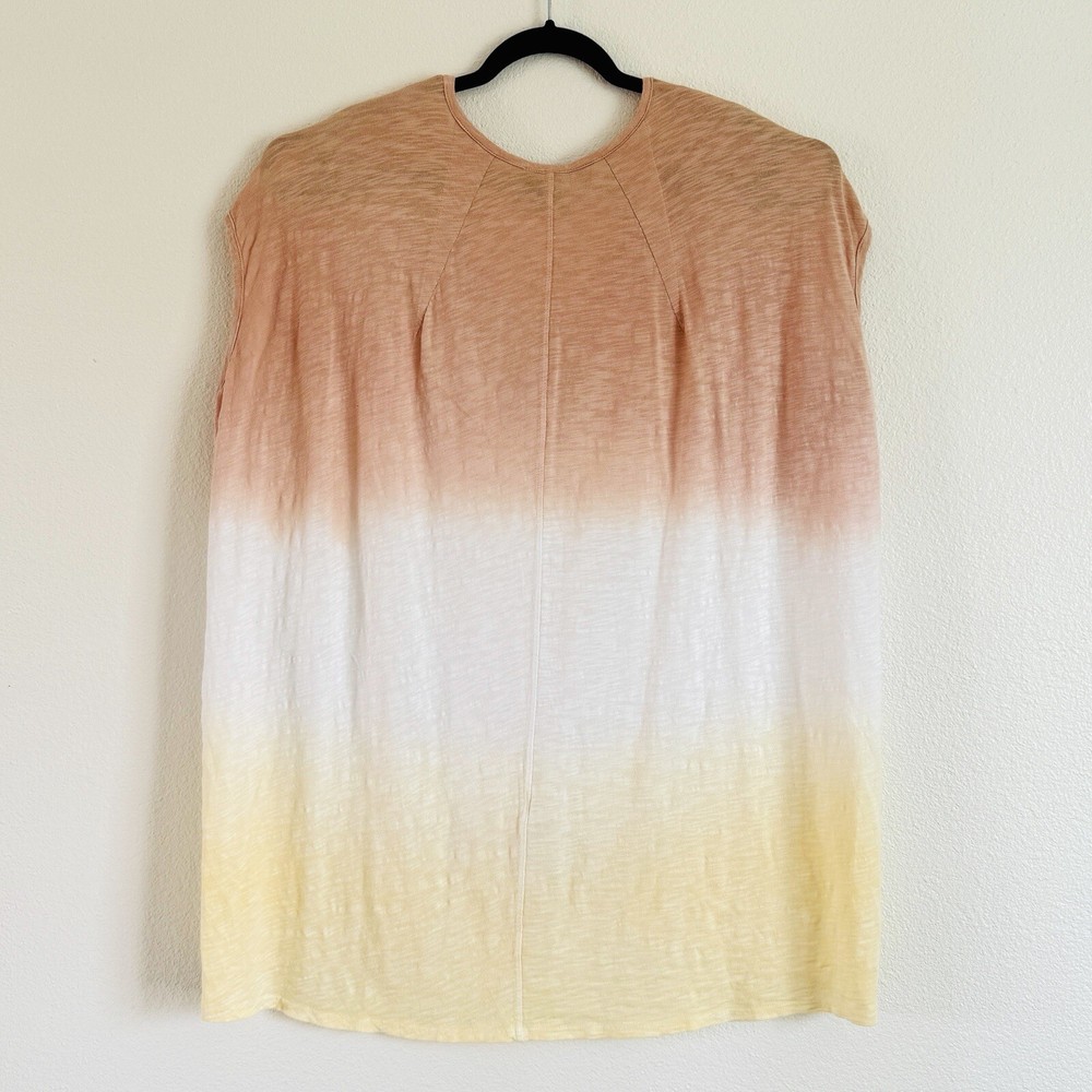 * Good Condition! Fair Used Condition! * Anthropologie Left of Center XL Women’s Ombré Dip Dye Oversized Tunic Top *Flaw ** NO RETURNS ON THIS ITEM! SELLING AS IS! *** PLEASE READ BEFORE PURCHASE !!! *** Show some signs of wear, no holes or tear. This tunic top has some stretch. NOTE * the flaw is a small spot located on the front white color section(please see picture 4). It’s not too obvious in person. ** Please compare the measurements with your own clothes! Pictures 5-10 are full length, chest, hem, sleeve details and front neck open. Details - Size: XL Color: Dusty pink, white & yellow Ombré Easy fit Pullover V-neckline Tunic length Cocoon shape Sleeveless - but slightly covers the shoulder or depends on your shoulder width NO Pockets Made in USA 100% Cotton Machine Wash Cold, Lay Flat To Dry Condition is Good/Fair/Pre-owned. Please see pictures for all details!
