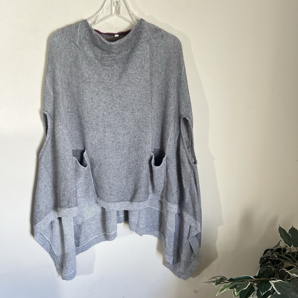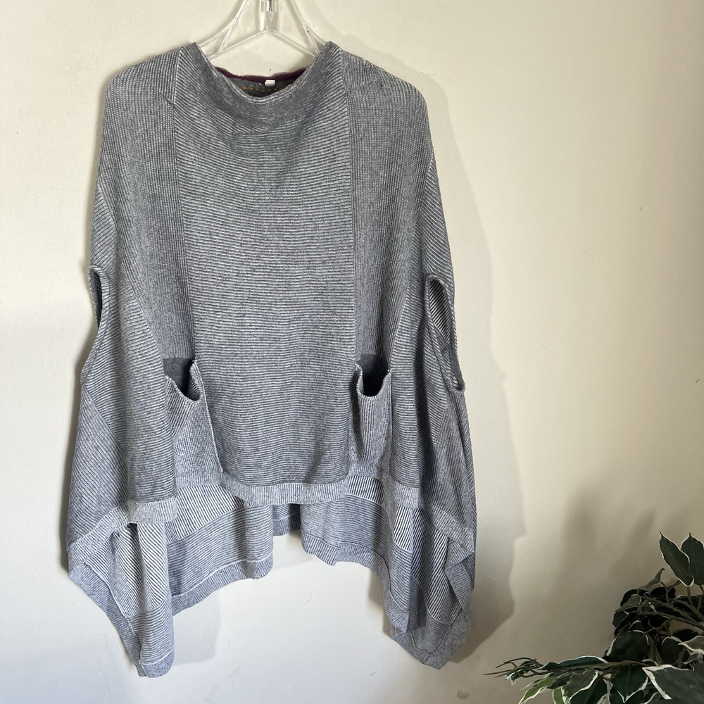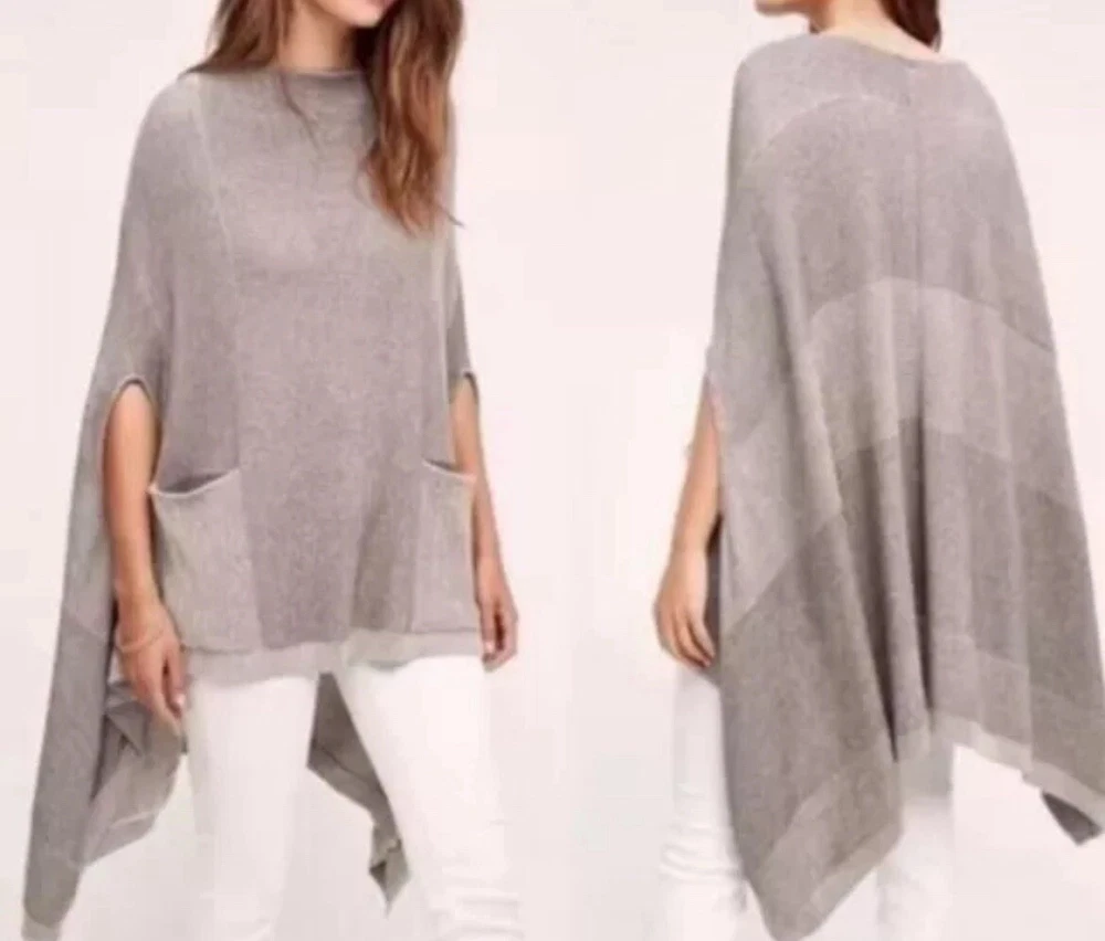 Anthropologie MOTH Madison Park Cape Poncho Gray Cotton Cashmere Wool Blend XS/S ribbed Great condition...