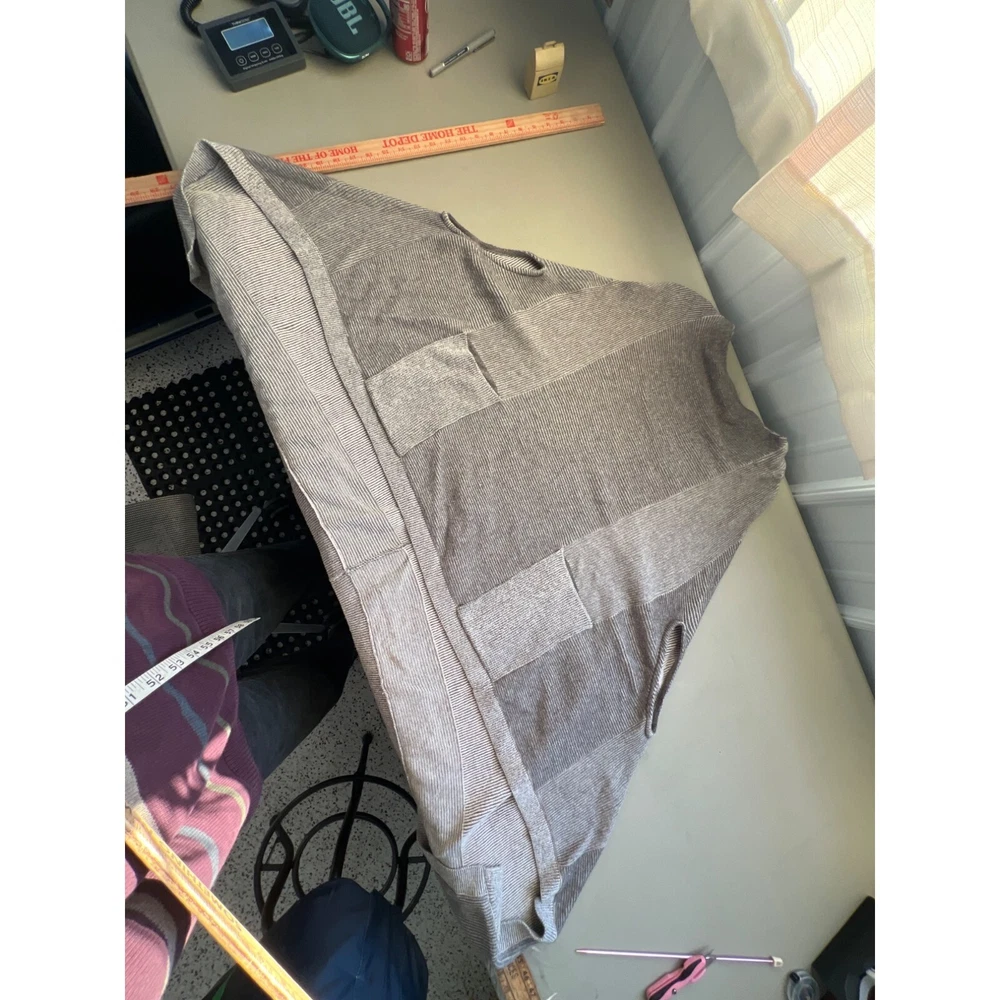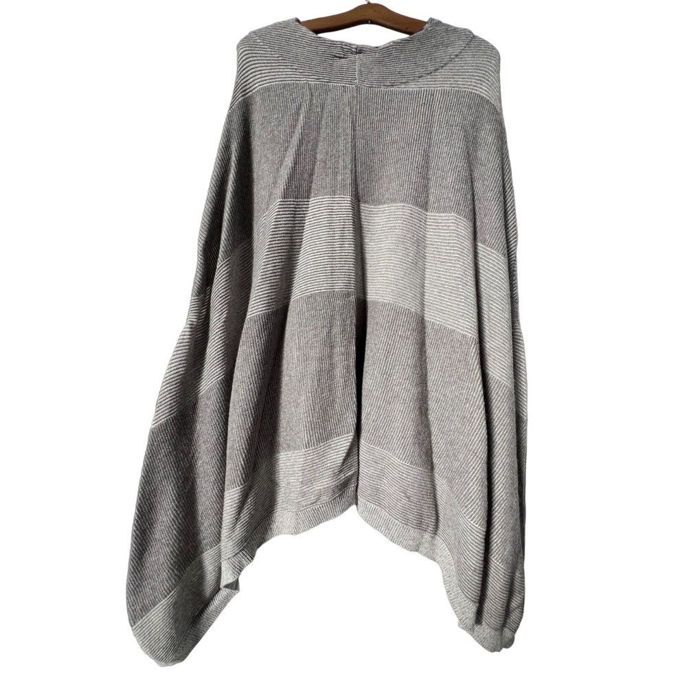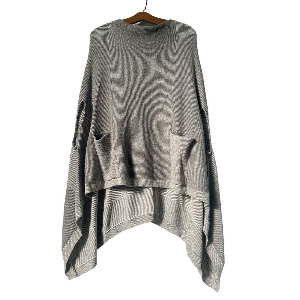 Moth Madison Park Poncho Sweater by Anthropologie Features: • Brand: Anthropologie • Color: Gray, Cream • Front pockets • Pullover style • Oversized fit • Asymmetrical length • 54% Cotton 24% Rayon 15% Nylon 5% Cashmere 1% Wool 1% Spandex Size: Womens XS/S Measurements: Length 30.5 in / 77 cm Bust 70 in / 178 cm Condition: Pre-Owned Good classic comfortable relaxed fall winter warm knit cozy comfy loungewear everyday closet staple oversized poncho sweater pockets pullover