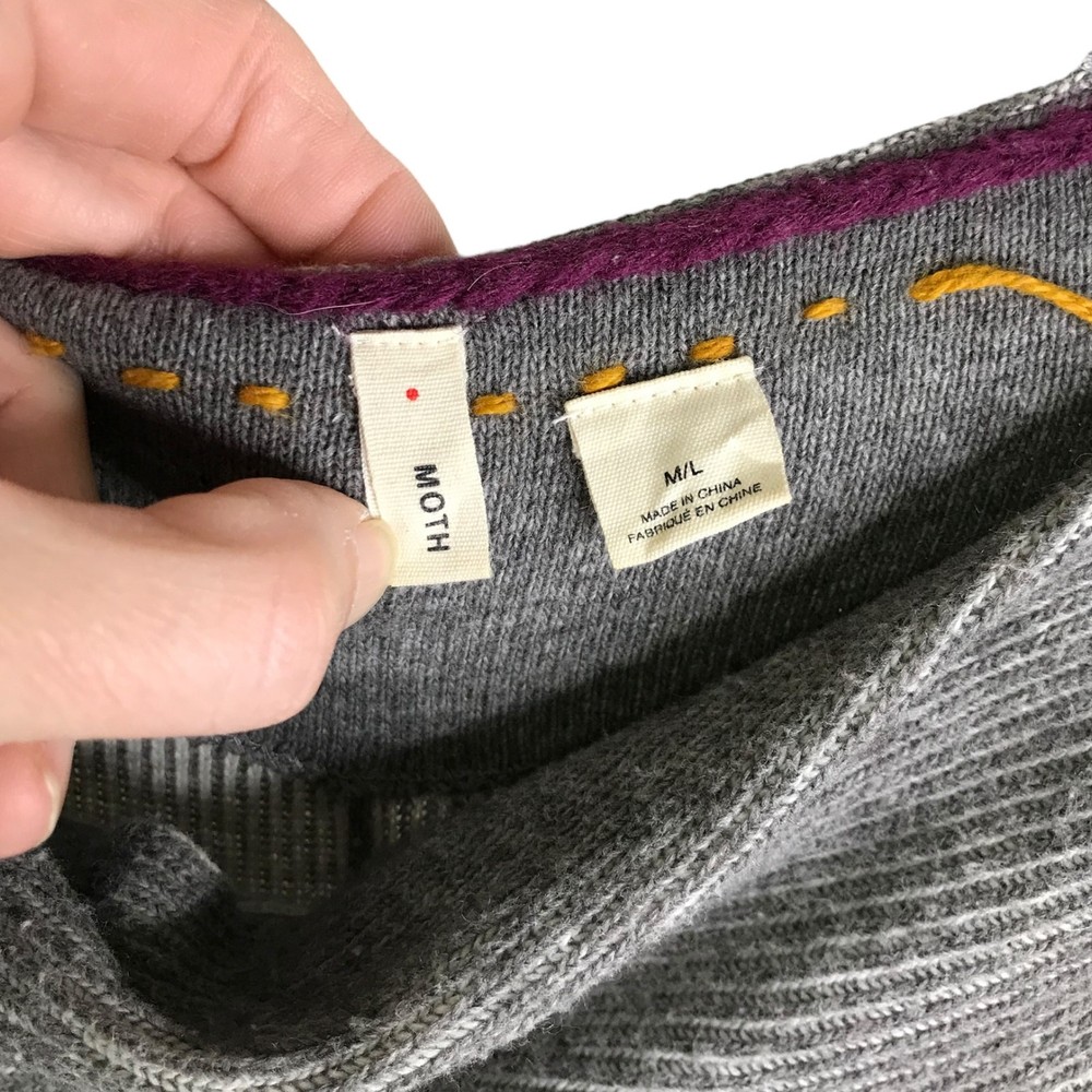 <![CDATA[<div>Anthropologie Moth Poncho Womens M/L Gray Striped Madison Park Hi-Lo Ribbed Cape Brand: Moth Size: M/L Length: 31" / 46" at longest Style: Poncho Country/Region Of Manufacture: China Color: Gray Pattern: Stripe Closure: Pullover Stock: PC1 2954 Sold as pictured. Thanks for looking!