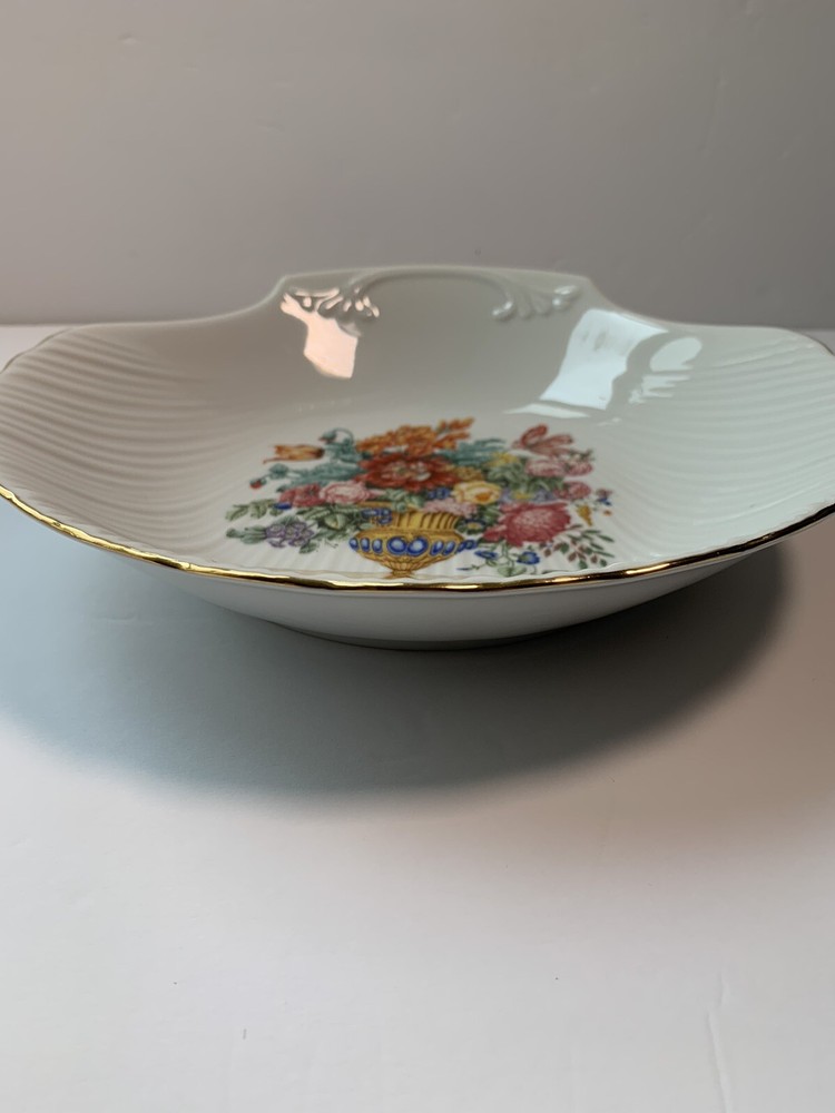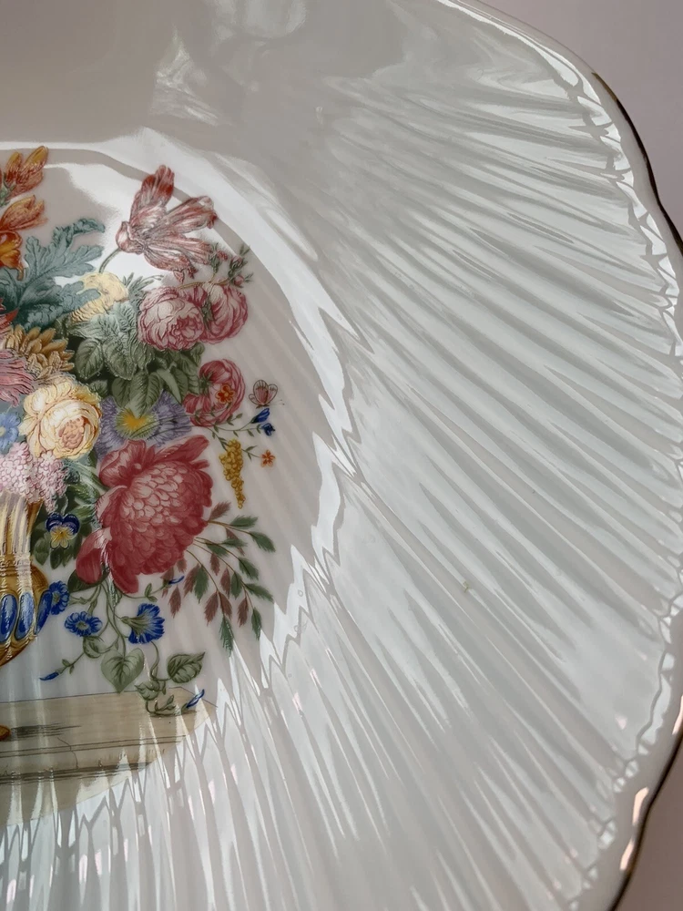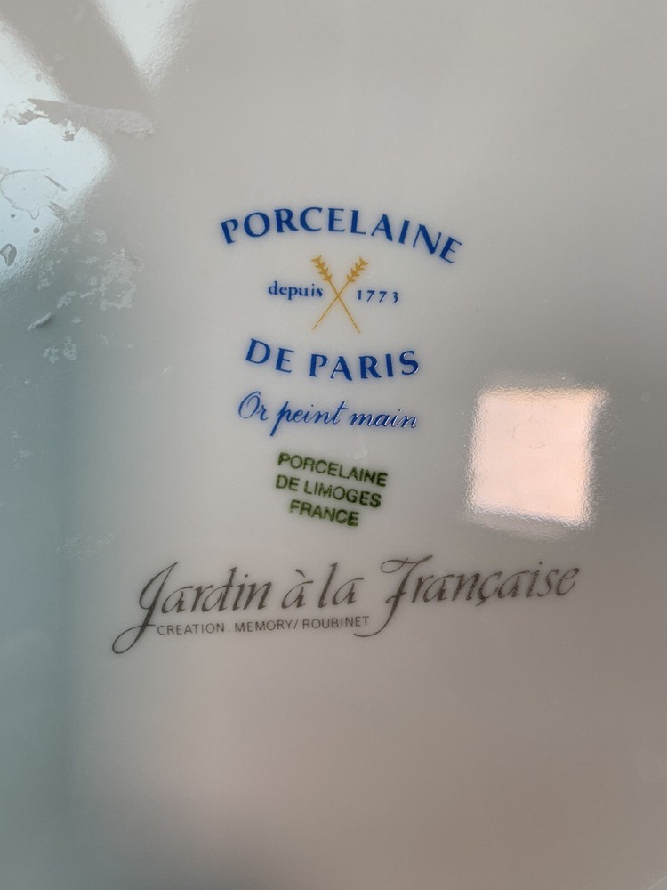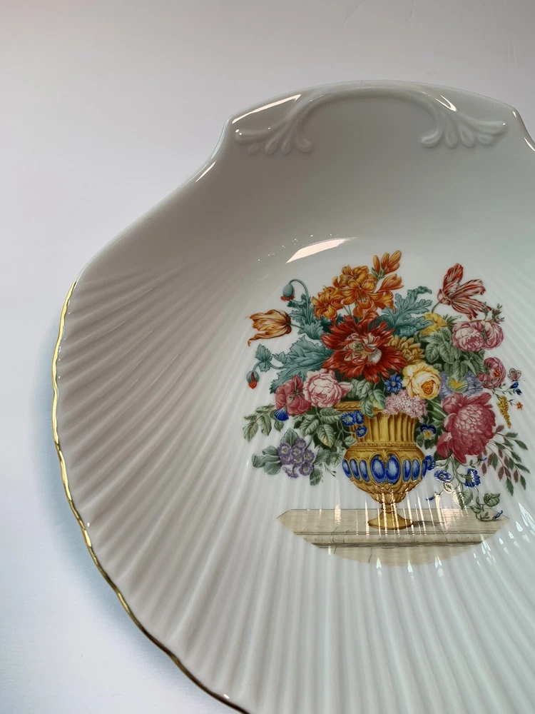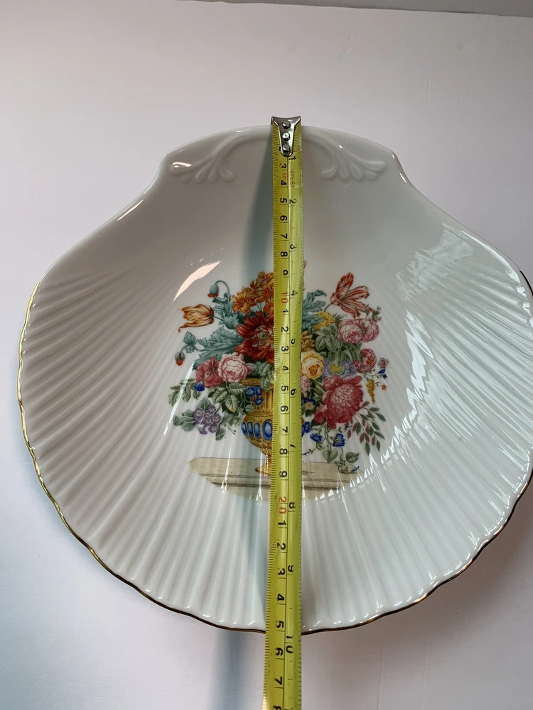 Add a touch of elegance to your collection with this beautiful Limoges porcelain dish. This vintage piece features a scallop shell shape with intricate floral patterns and gold trim. The dish has a diameter of 10 inches and one compartment for your trinkets or decorative items. The production of this antique original was crafted in a studio in France, showcasing the exquisite and authentic techniques used in creating this product line. The backstamp is impressed and the finish is glossy, making it a superb addition to your decorative cookware, dinnerware, and serveware collection.