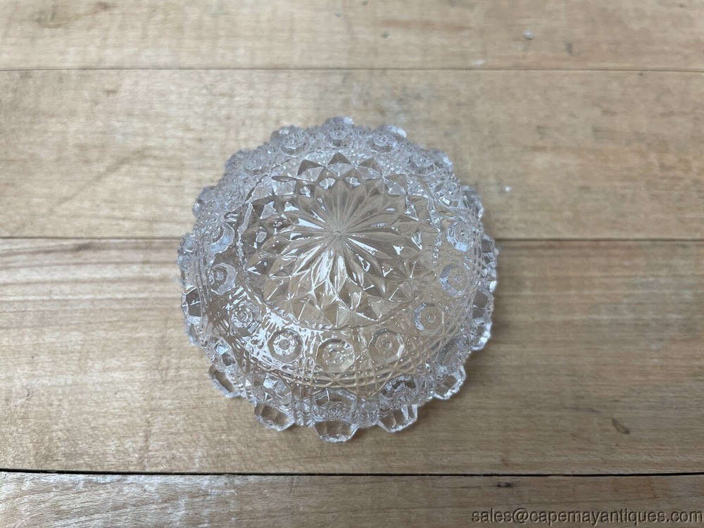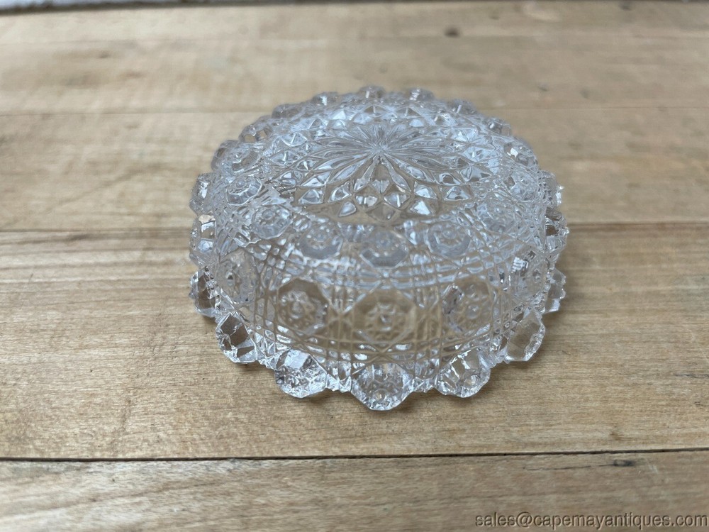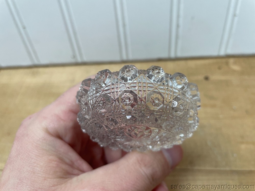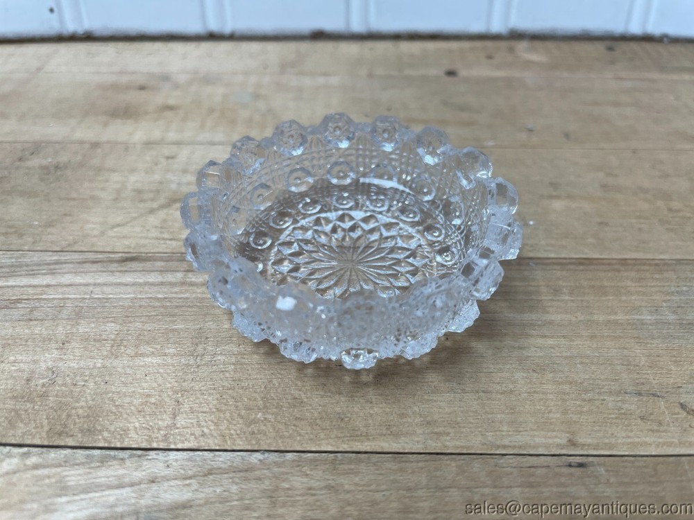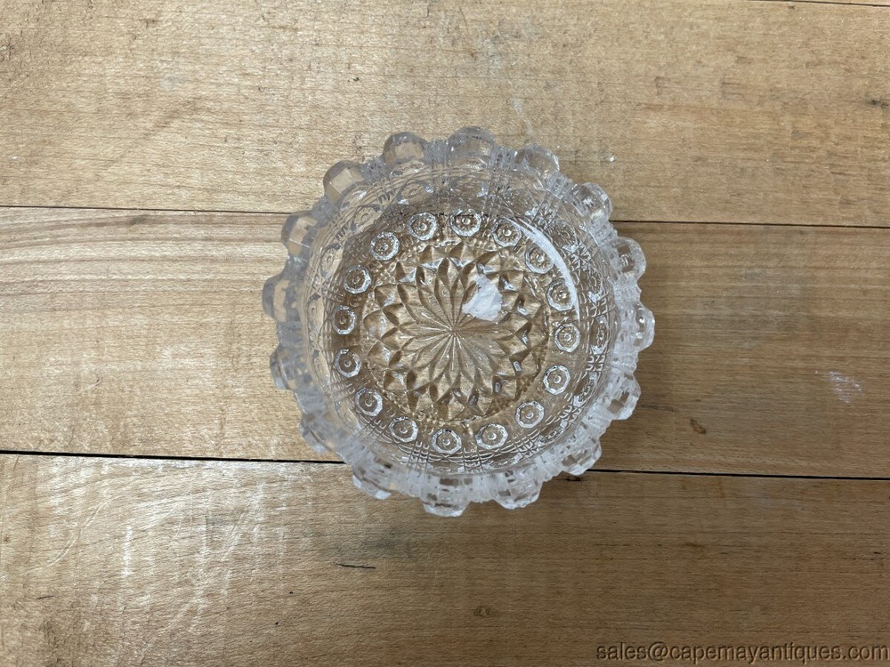 Antique Pressed Glass Salt Dip Large Round Diamonds Stars Ribbed Textured Description Antique Pressed Glass Salt Dip Large Round Diamonds Stars Ribbed Textured. 2 1/4" Diameter x 7/8" High x 1/2" Deep . Gorgeous Antique Pressed Glass Salt Dip Large Round circular with pressed Diamonds and Stars pattern, ribbed/textured . Unique style, size and shape glass salt dip. Perfect glass salt dip to add to your collection! Very good and clean condition. See photos. Condition: Used Condition Notes: Antique Pressed Glass Salt Dip Large Round Diamonds Stars Ribbed Textured. 2 1/4" Diameter x 7/8" High x 1/2" Deep . Gorgeous Antique Pressed Glass Salt Dip Large Round circular with pressed Diamonds and Stars pattern, ribbed/textured. Unique style, size and shape glass salt dip. Perfect glass salt dip to add to your collection! Very good and clean condition. See photos. Shipping Shipping Options: Domestic shipping: Weight based Shipping Charges. Domestic Carriers are: Usps Priority International shipping: Weight based Shipping Charges. International Carriers are: Usps Priority Intl I will ship to: United States, Worldwide Weight: 8 oz. Shipping and Handling: Please check eBay's Shipping & Payment tab Customer Service Policy: We ship USPS priority, first class or UPS Ground depending on size, shape, weight and fragility of the item. We will be happy to combine shipping for you to help save you money, just contact us with your item list. For furniture shipments we use freight companies or you can arrange for shipping yourself at uship.com or tscmoving.com and local pick up is always welcome. Furniture shipments do take longer then typical package deliveries between scheduling and attempting to keep your shipping costs down. Please understand this before purchasing and LET US KNOW about any times where delivery is not possible or if you have any specific deadlines for furniture delivery. Vendio provides powerful selling automation for sellers of all sizes. Get business information that counts! - Vendio Counters are active content free.