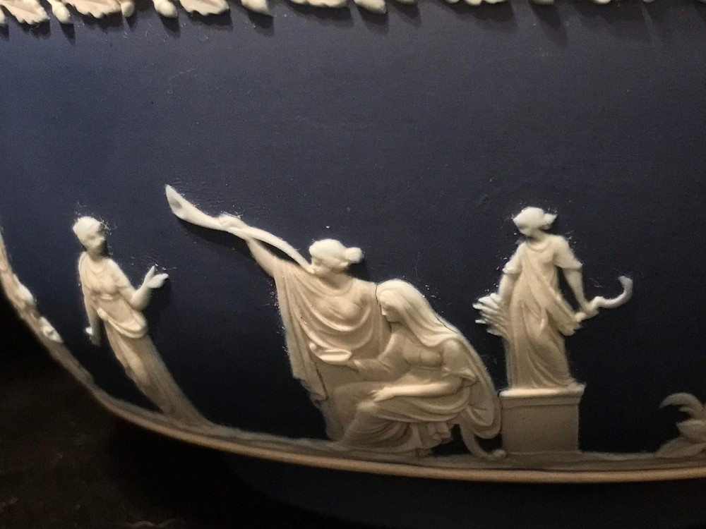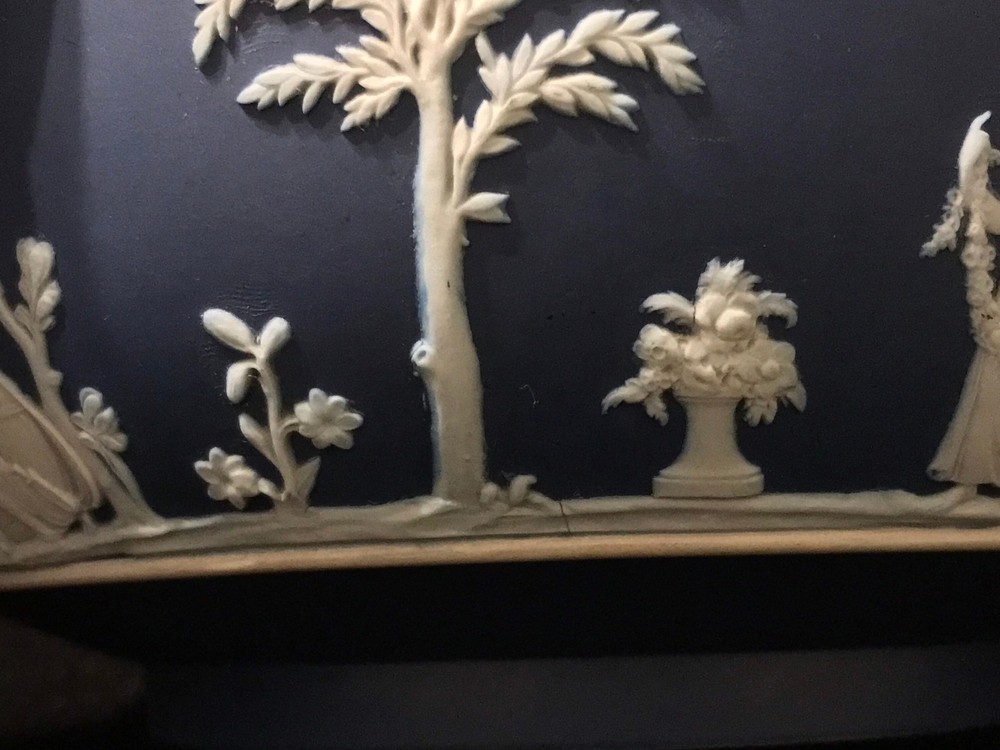 Very beautiful item and in great condition for its age. Has a small spot of staining as seen in the photos and small cracks to the bas relief in 2 spots but no chips or cracks to the surface. Great for home decor. All photos used as description purposes. Add this piece to your collection. And like always, all items are FREE SHIPPING to the USA! Items will be cleaned and sanitized before safely packaged and shipped out to you. Thank you for looking and God bless!