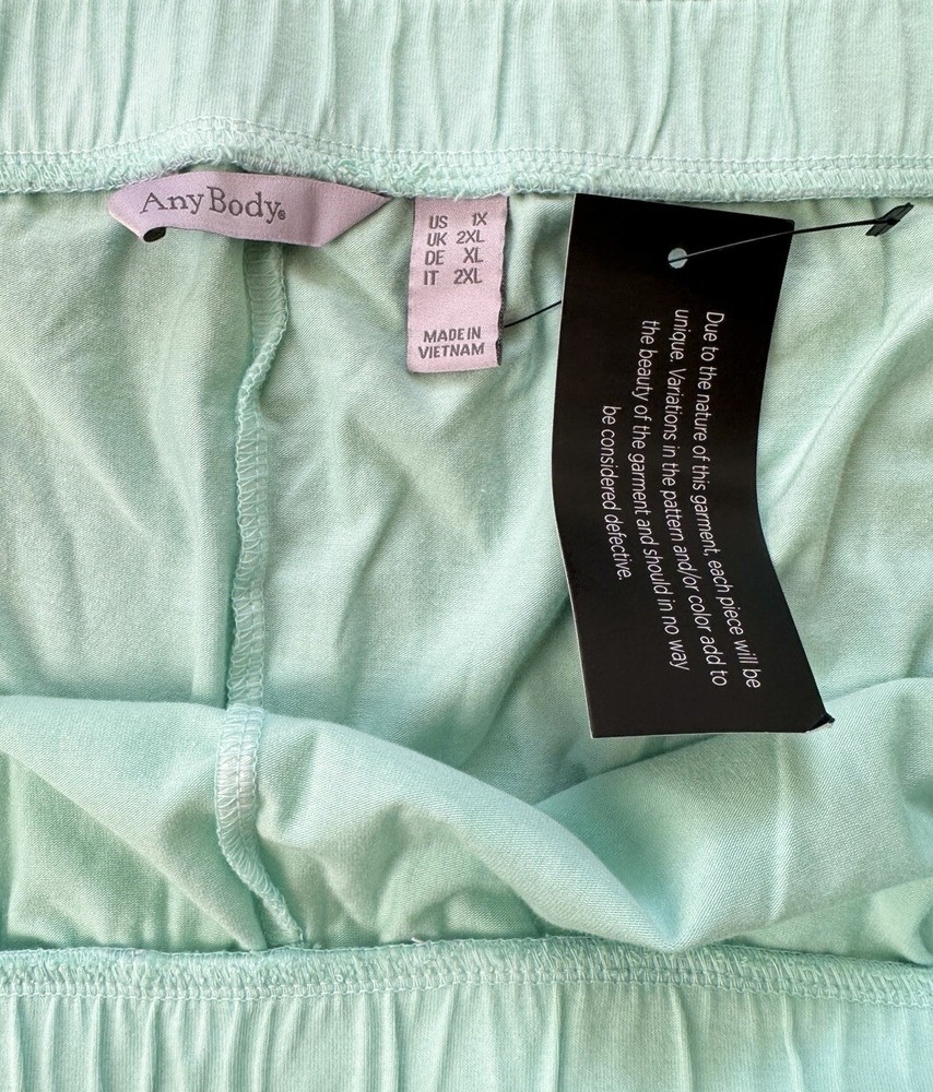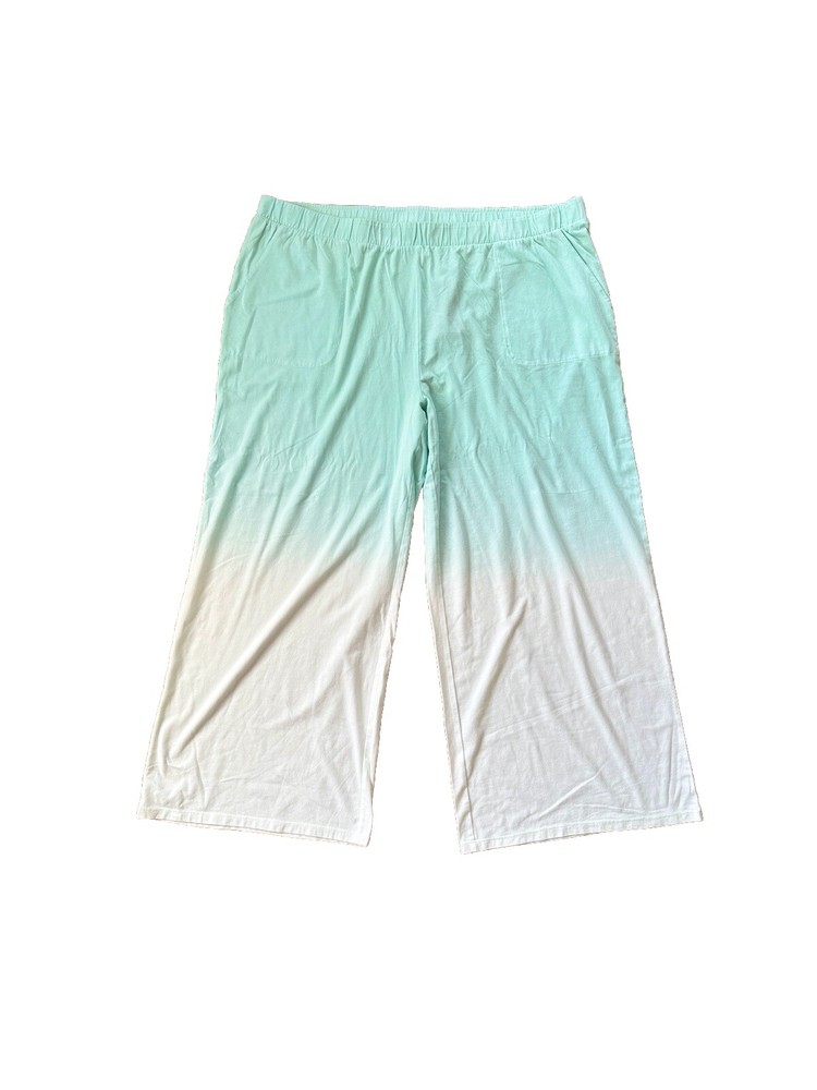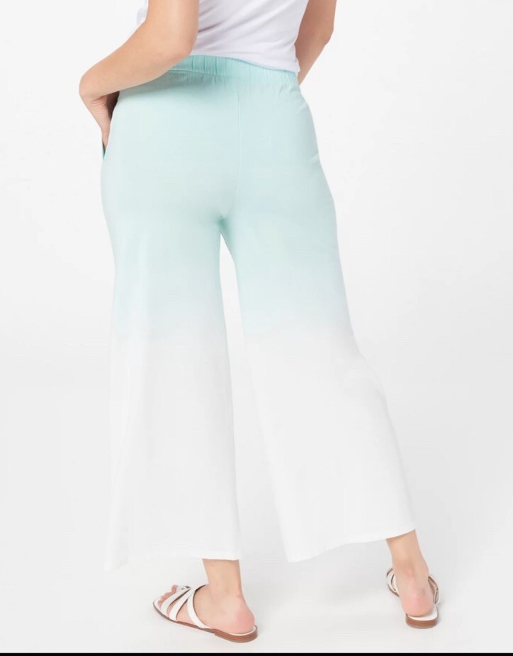AnyBody Cozy Knit Luxe Dip Dyed blue Wide Leg Pant Features: pull-on style, elastic waistband, side-seam pockets, crop length, wide leg Rise: 12” Inseam: plus inseam 25” Waist: plus 40” Care: machine wash cold, tumble dry low 57% cotton/38% modal/5% spandex. Will ship via USPS ground unless another method is preferred. Please let me know if you have any questions.