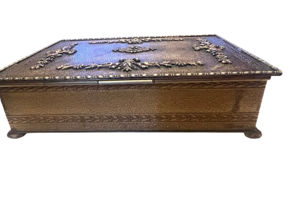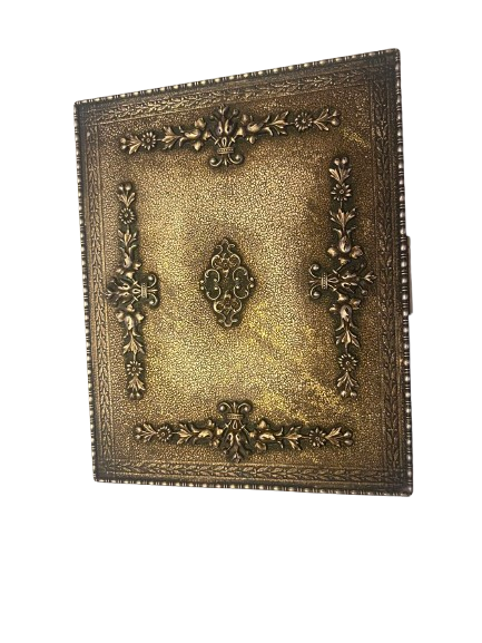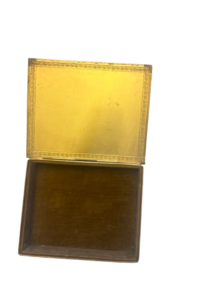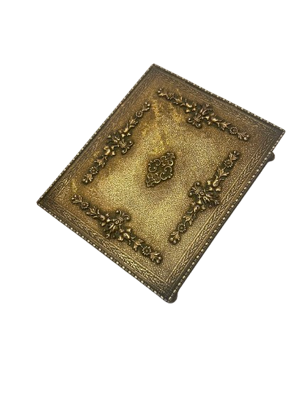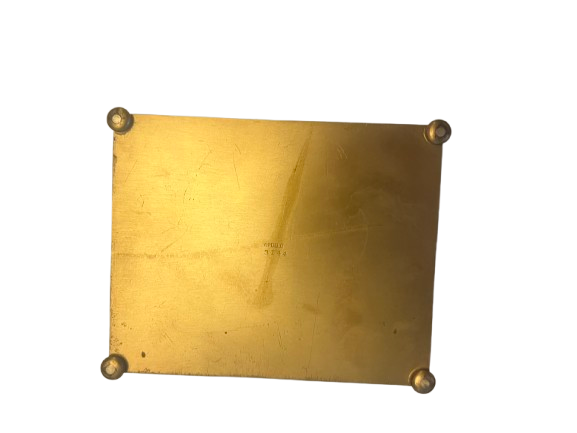 Add a touch of vintage charm to your decor with the Apollo Studios Brass Trinket Box. This rare find from the early 1900s boasts a beautiful patina on its exterior, making it the perfect statement piece for any room. Crafted with high-quality brass, this trinket box is not only a beautiful addition to your home, but also a durable and long-lasting investment. Measurements: 5.25” (L) x 6.5” (W) x 1.5” (H)