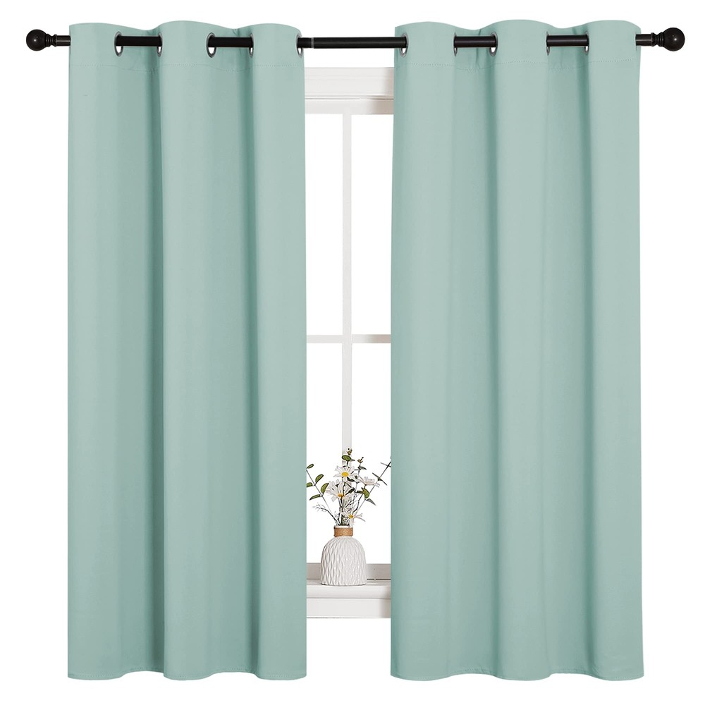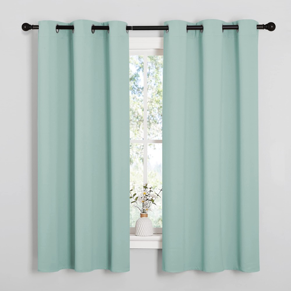 READY MADE: Set includes 2 BLACKOUT CURTAINS PANELS of 42" wide x 63" length with 6 grommets top each. Quality fabric without liner feels soft and heavy. SERVE WELL: Curtains impede 85%-99% light and UV rays(Dark color curtains work well). Noise-reducing, better TV viewing thanks to the innovative triple weave technology. ENERGY SMART: Triple weave blackout fabric balances room temperature by insulating against summer heat and winter chill. Protect your furniture, floors, and artwork from the ravages of the sun, the drapes will pay for themselves off over time. GOOD TO GO: Thread trimmed and wrinkle-free, ring (1.6-inch inner diameter) fits easily with standard curtain rods. All sets for you to put them up right away. EASY TO MAINTAIN: blackout curtains are made to last. Machine washable in cold water, tumble dry. Quick ironing or steam clean when needed. Visiting the store, find out your favorite curtains.
