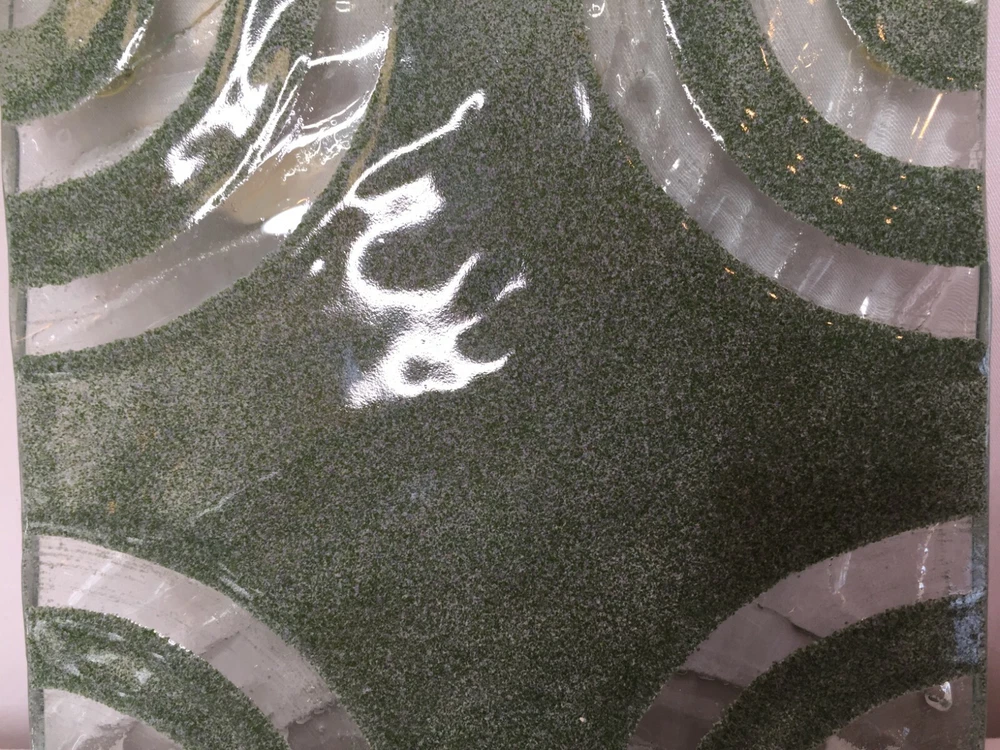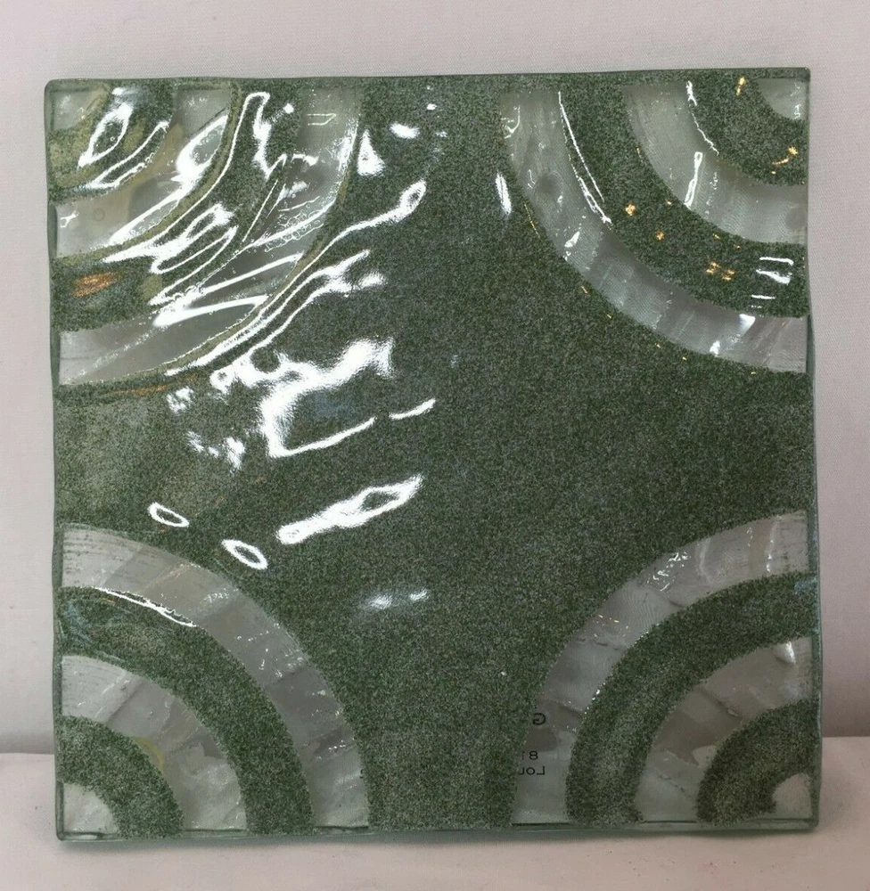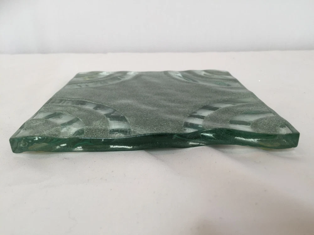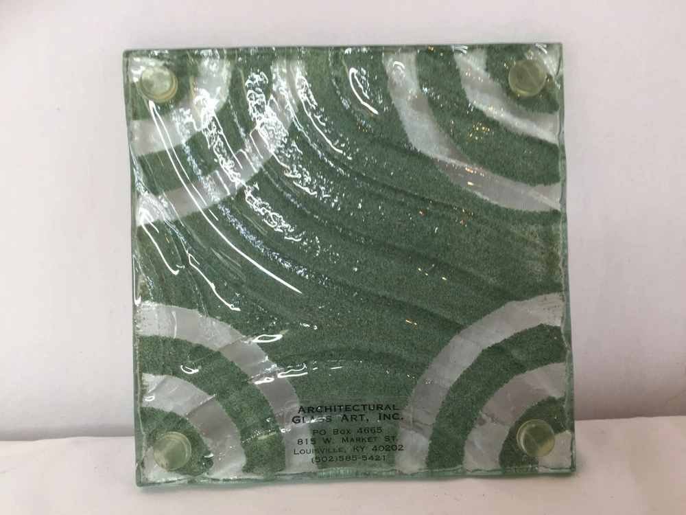 Architectural Glass Art Inc Kaiser von Roenn Studio Recycled Glass Tile Trivet No chips or cracks. Has original label (see photos) Measures 6" square Has silicon feet Kaiser & von Roenn commercial & residential glass fabricators & installations This may be a salesman's sample or an advertising piece Could be used as a paperweight