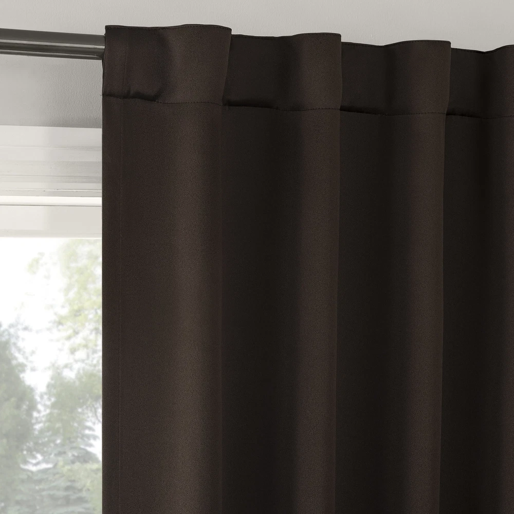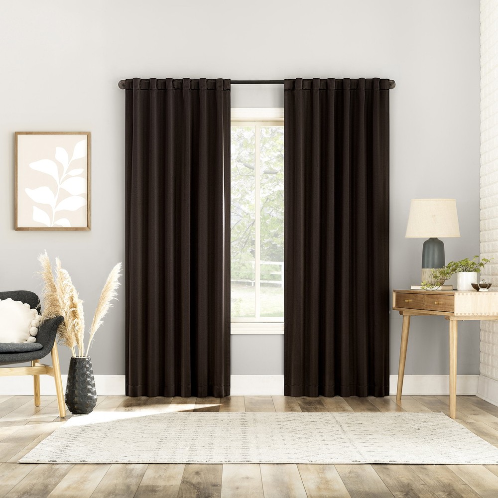 Product details Sun Zero Aria Curtain Panel Pairs provide the ultimate in light blocking technology coupled with magnetic closures to keep out even the harshest of light while bringing an elegant urban sophistication to any room of your home. Sun Zero Extreme Blackout technology is laboratory tested to block out 100% of light, reduce outside noise by up to 45%, and decrease energy lost through your windows by up to 50%. Comfort is optimized with thermal properties that help keep summer heat and winter chill out of your home. Hidden back tabs allow for easy slide-through installation on curtain rods up to 1.5" in diameter. Hang in your entertainment room to eliminate screen glare and reduce distracting outside noise, or in your bedroom for enhanced privacy and a sounder, more uninterrupted sleep. Pair includes 2 panels measuring 104" width by 84" length. Measure carefully before selecting your desired size and quantity. Machine wash cold on gentle cycle. Use non-chlorine bleach when needed. Tumble dry on low heat, using a cool iron as needed. Extreme Blackout technology with magnetic closure blocks out 100 percent of outside light Energy Efficient design reduces energy lost through your windows by up to 50 percent Thermal properties help keep summer heat and winter chill out of your home Noise reduction by up to 45 percent helps you get a sounder, more uninterrupted sleep Hidden back tabs fit curtain rods up to 1.5" in diameter Pair includes two (2) panels measuring 52" w each. Measure carefully prior to purchase. Curtain rod not included. Double rod may be needed for layering.