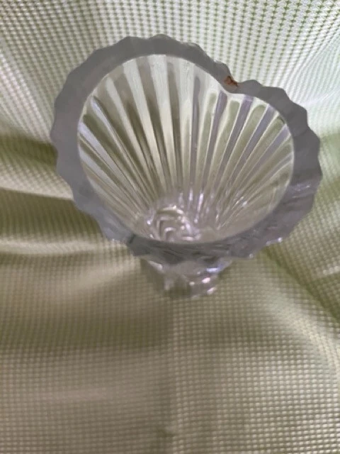 This beautiful flower vase is a stunning addition to any home decor. Its heart-shaped design and ribbed pattern make it a unique piece that will catch the eye of any visitor. The vase stands 8 inches tall with a beautiful star-etched base. It is made of high-quality glass and crystal materials, giving it a sleek and elegant look. The vase is perfect for displaying flowers or as a standalone decorative piece. Its Art Deco style and clear color make it a great match for any room in the house. Whether you're looking for a gift for a loved one or just want to treat yourself, this flower vase is sure to impress. Descriptions are only my opinion based on similar items sold. Please use the photos to finalize your decision and contact me with any questions. I will be happy to send you photos immediately before shipment. The shipping charges are estimates and are based on the item's measurements. They will be adjusted in packaging.