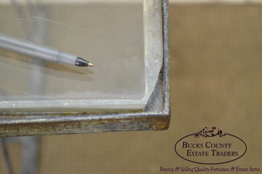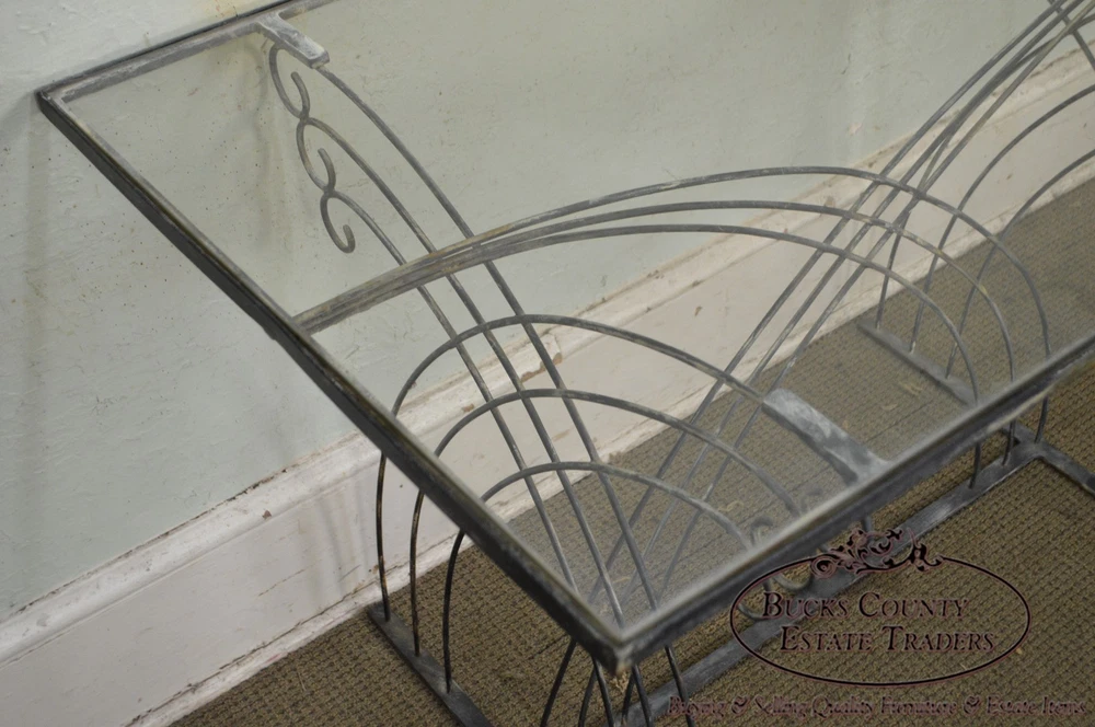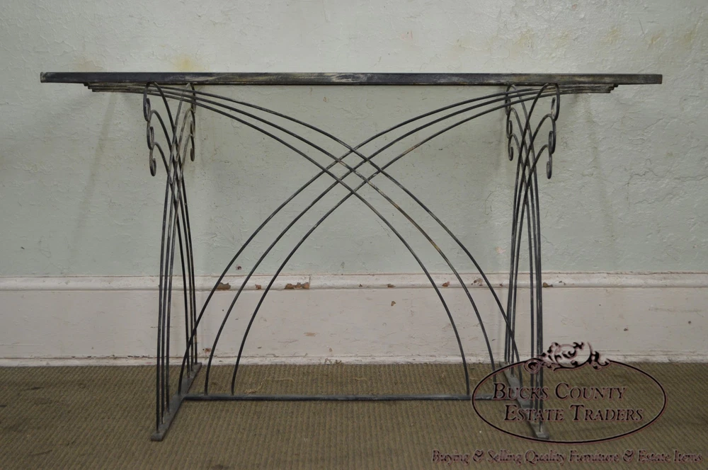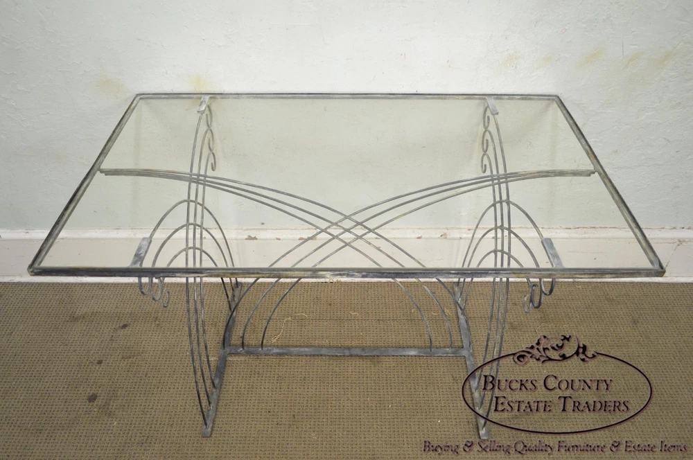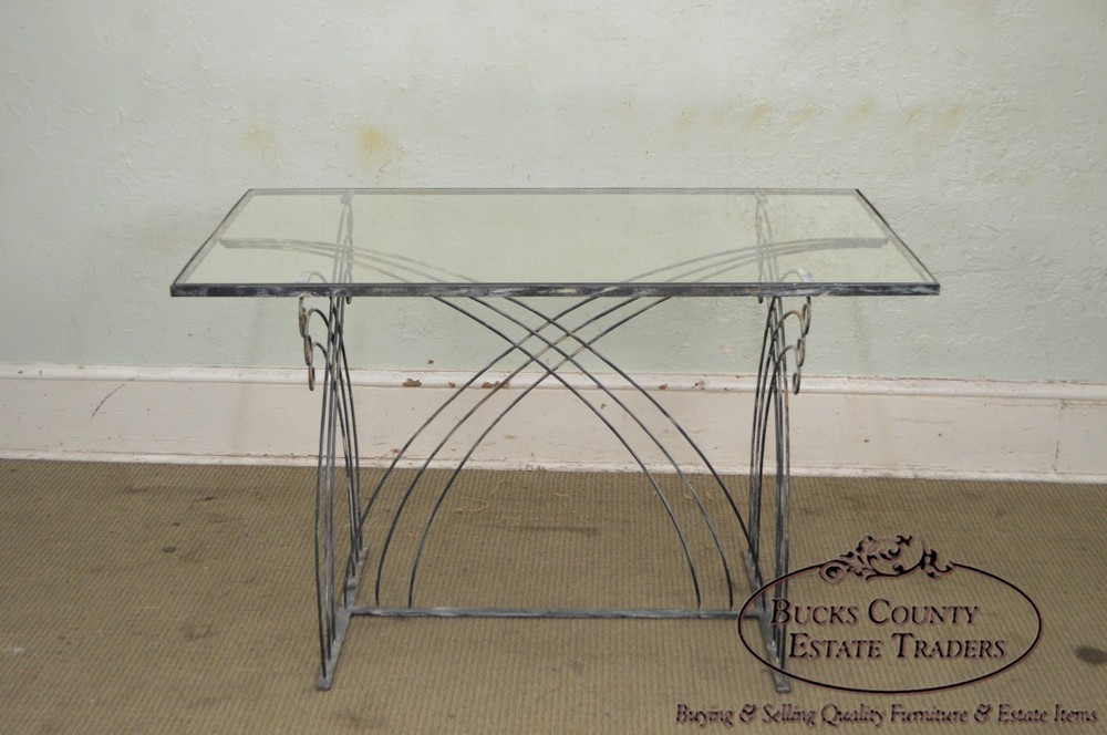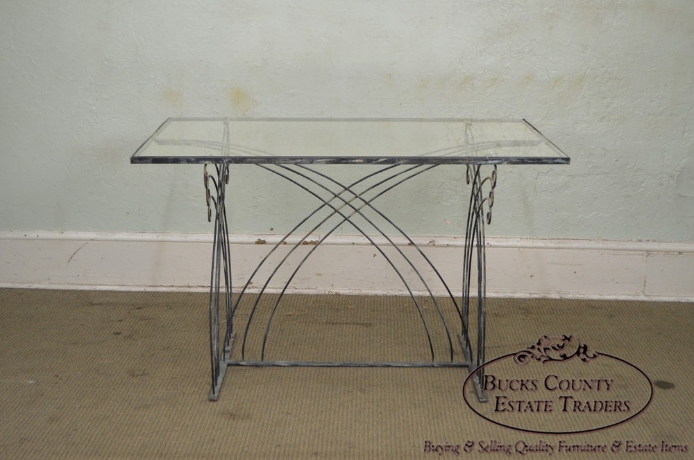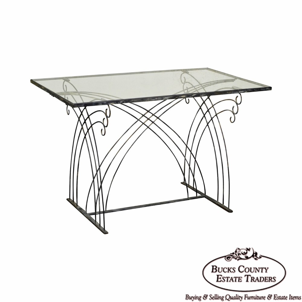 Shipping is not included in the price, please contact us for details before purchasing Store Item #: 16546 Art Deco Vintage Studio Wrought Iron Glass Top Patio Console Table AGE/COUNTRY OF ORIGIN : Approx. 75 Years, America DETAILS/DESCRIPTION : High Quality Custom Wrought Iron Base Table With Glass Top. Unsigned Maker. STYLE: Art Deco CONDITION REPORT : Clean Vintage Condition. *Some Fading Patina to the Metal/Finish Loss, Scratches & Chip to the Glass Top. MEASUREMENTS : H: 30.5" x W: 48.5" x D: 28.5" All of our items are either pre-owned vintage or antique and may show usual signs of wear and use. No international buyers, please. Items must be paid in full within 5 days of the auction end. Please note that we will hold items up to 30 days but any longer (without prior approval) incurr storage fees of 10% of the order total, per month. Also please note that a 15% restocking fee may be assessed on returns for reasons OTHER THAN “Item not as described” per the Return Policy. All other returns, including deciding not to purchase the item, may also be assessed a 15% restocking fee. Shipping is not included in the price, please contact us for details before purchasing Although we strive to get your item to you as quickly as possible, standard shipping time for freight items is 3-6 weeks, sometimes longer (and other times as quick as 1-2 days). WE DO NOT OFFER GREYHOUND SHIPPING PLEASE REVIEW THE FOLLOWING CHECKOUT PROCEDURE IF YOU REQUIRE SHIPPING If you are picking the items up from our showroom or you are hiring a shipping carrier directly, then you can checkout without performing the following to request the shipping cost. If you will be utilizing Bucks County Estate Traders to ship your purchase to you, then you must perform the following steps to ensure your order is processed correctly: Proceed from your eBay cart to the Checkout page. This is the page where it is prompting you for your payment information.? Do not enter your payment information or click the "Pay" or "Pay with PayPal" buttons. Instead, scroll to the "Review item and Shipping" section. Locate and click the Request total or request order total link. From the Order Details page, provide any additional details that might affect your delivery, such as driveway access, street parking only, 2nd floor or basement installation, elevator scheduling required, etc. Click the Commit to buy & submit request . Once we receive your request, we will update the order with our best shipping price (we strive to respond the same day). You will then receive a new invoice securely within eBay, for which you can then provide payment. *** Please be assured that although eBay states that you are committing to buy, we understand that you cannot truly commit to buying without knowing your shipping costs. If you are unhappy with the shipping costs for any reason, we will cancel the sale and refund any fees that may have been collected. Local pickup is available Monday-Saturday, 8:30 am-4:00 pm in Hatfield, PA 19440. Item(s) must be paid in advance as we will not release until confirmation of payment. Please call us or email us upon completion of the sale to confirm your shipping arrangements. We will not release the item for shipment until you have confirmed a shipping method. When purchasing shipping services through Bucks County Estate Traders, you acknowledge and agree to our shipping process which includes : We use individual white-glove freight carriers. Your items will be blanket warpped and treated with the care deserved for your fine quality items. These carriers typically take 3-6 weeks to deliver. Again, this is a typical timeline and longer delivery is possible. Expedited shipping with a firm date is avaiable, but that pricing will be at higher rates. If expedited shipping is desired, you must request it and specify the requested maximum delivery date. All shipping is presumed to be standard 3 to 6 week shipping unless requested by the customer. Our carriers DO NOT provide tracking information. They are not big national corporations. Instead, they are small businesses that provide personal care to the delivery of your items. Bucks County Estate Traders does track all of our shipments. We welcome you to communicate with us at anytime to get a status of your shipment. However, there are no external systems for you to track your shipment directly. If you do not agree to these shipping terms, your may arange your own shipping with the carrier of your choosing for no additonal cost. Simply choose the Local Pickup option instead of shipping. We will also drop off your items at our local UPS store for free. OFFICE CODE: 16546-BCET
