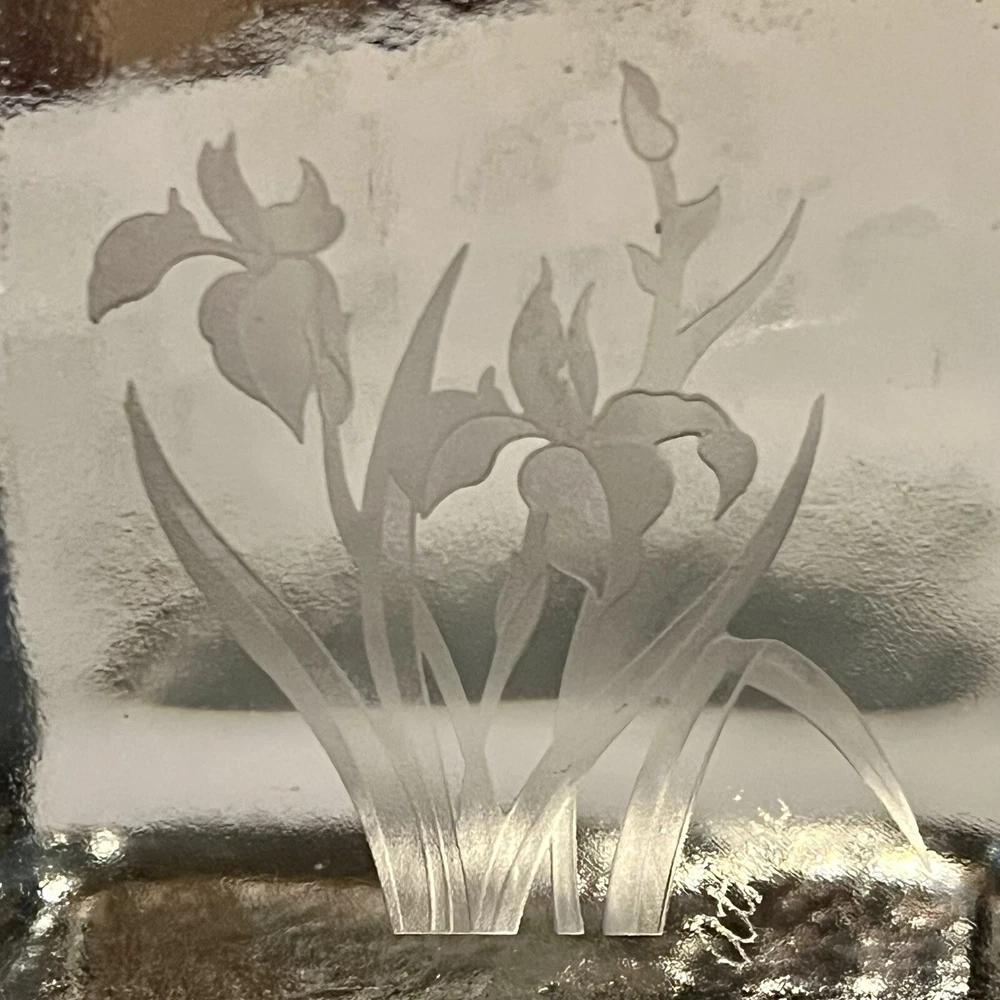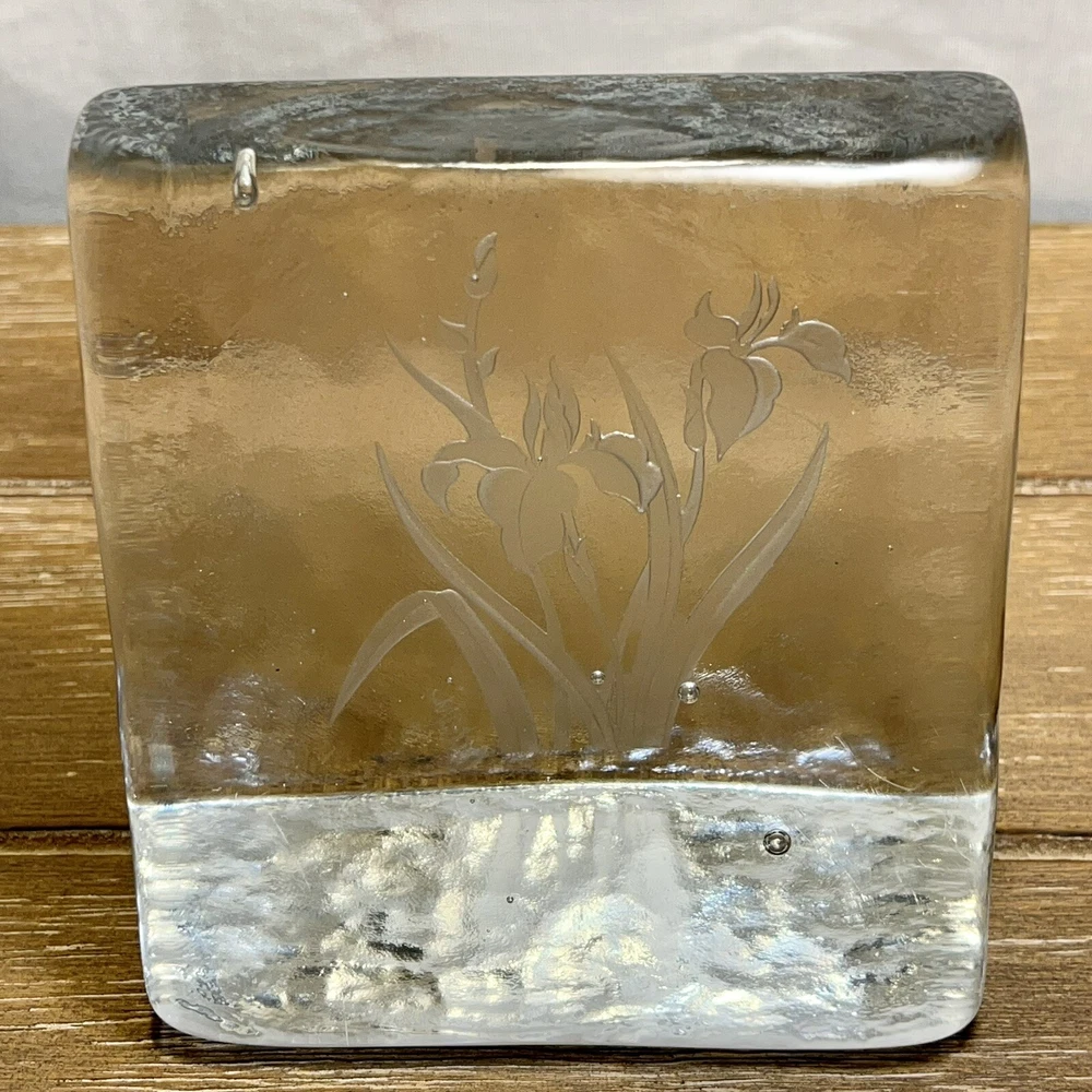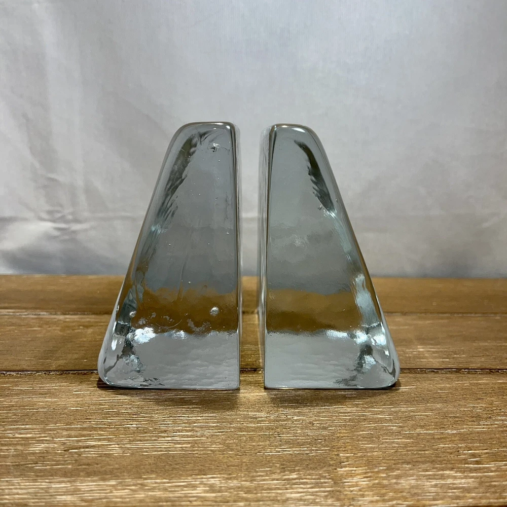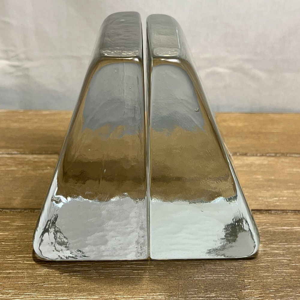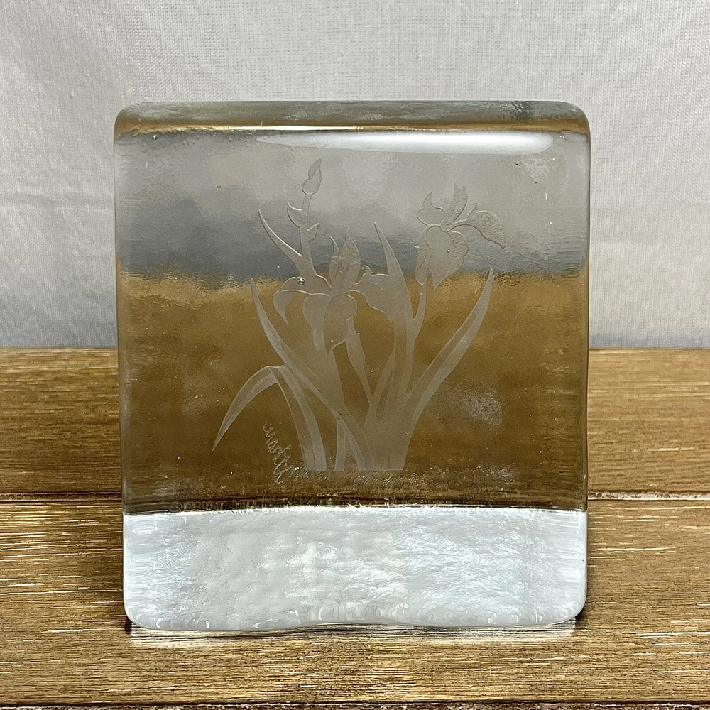 RARE Shawn Athari Signed Studio Art Glass Bookends Handcrafted Iris Design. Artist Shawn Athari is a celebrated glass sculptor who is known for her expertise and artistry with combining and designing glass. She is usually known for her amazing masks and panes she has done for many different public buildings. Featured here are some rare glass bookends. They are handmade, you can see a few bubbles inside each and there is a beautiful iris flower on each. Both are signed by etching "Athari." They weigh 2 lbs 5 oz. (each one). They have a contemporary wedge style. They are in near perfect condition--see photos--no chips or cracks!