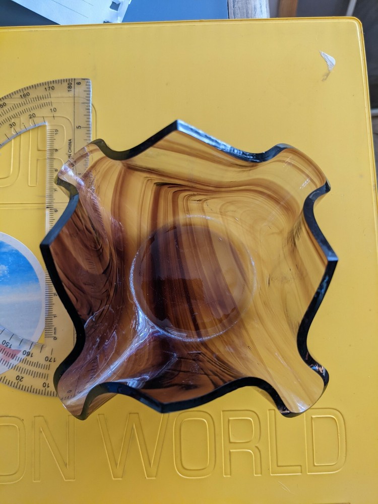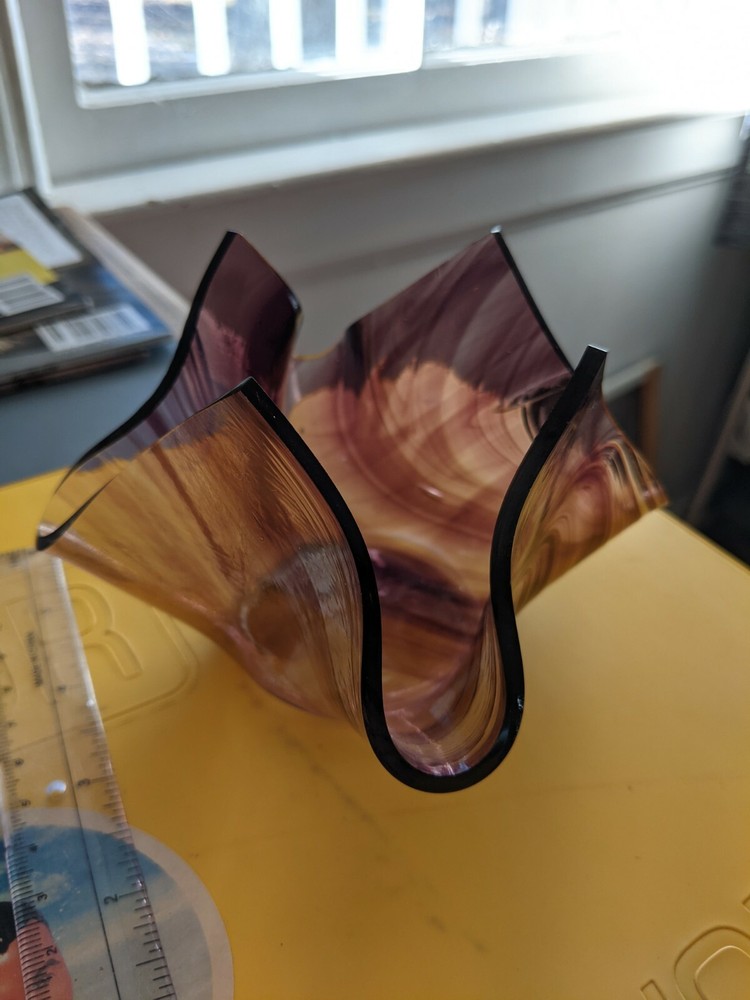 Art Glass Dish purple Swirled Glass Trinket/Candy Dish Studio Art Signed DW 5.5". Small chip, see photo.