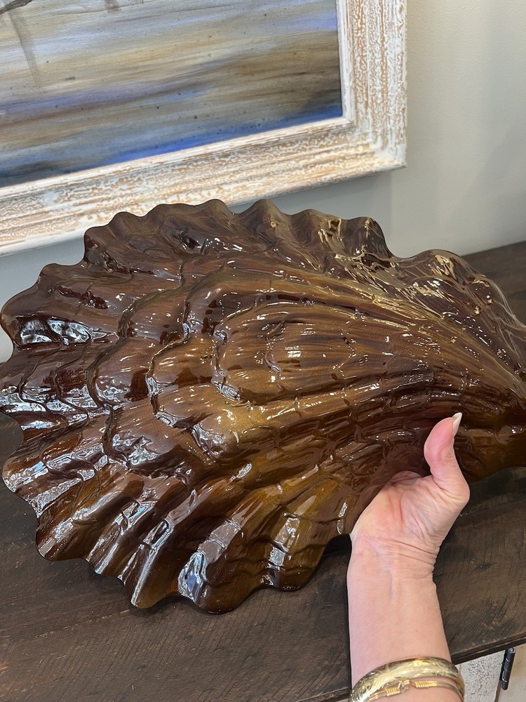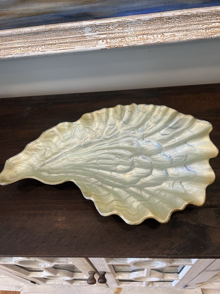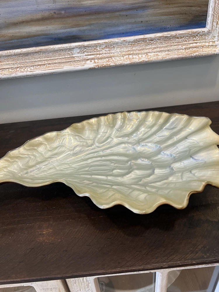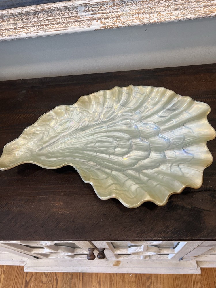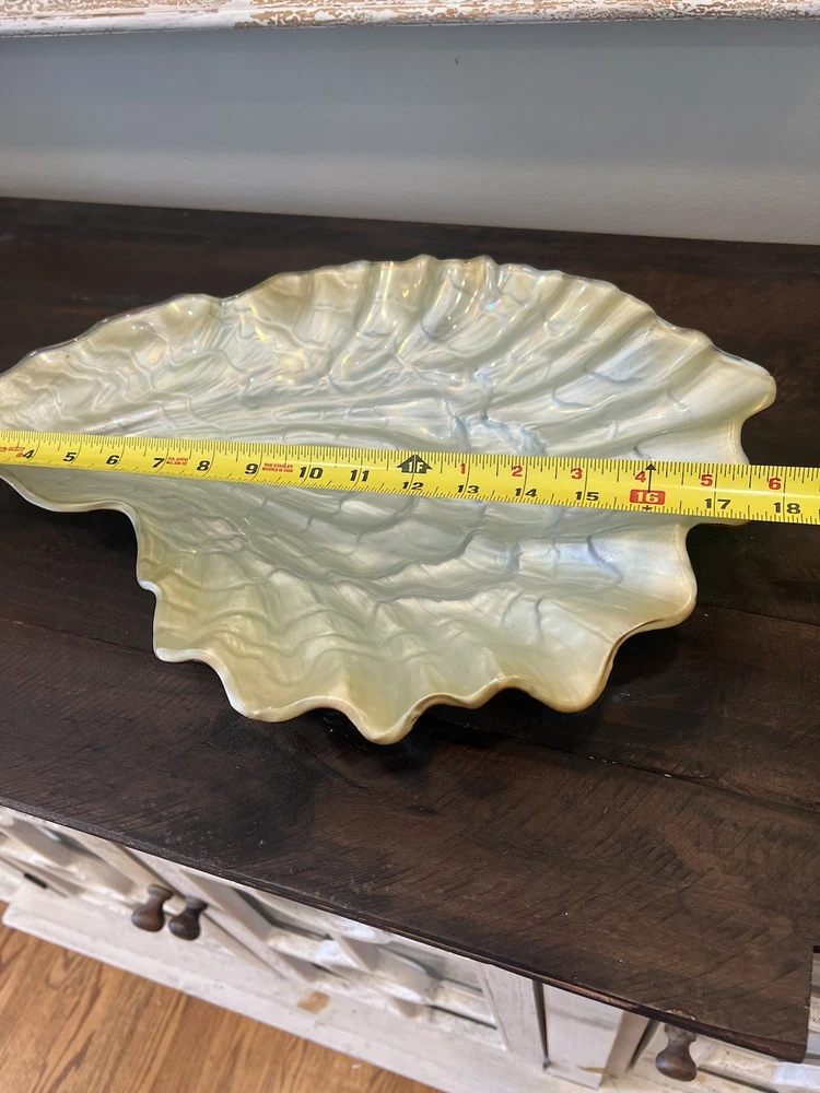 This beautiful decorative bowl is perfect for any room in your home. The intricate design and vibrant colors make it a stunning addition to any collection. The bowl is made from high-quality glass and has a unique wavy shape that is sure to catch the eye. It features a pearly oyster shell pattern and is carefully handcrafted using studio techniques. This piece is a must-have for any lover of art glass and is sure to be a conversation starter. The bowl is great for display or can be used as a decorative element in your dining or living room. It is easy to clean and requires hand washing only. Add this unique and beautiful piece to your collection today! The piece is in excellent condition with no chips or cracks.