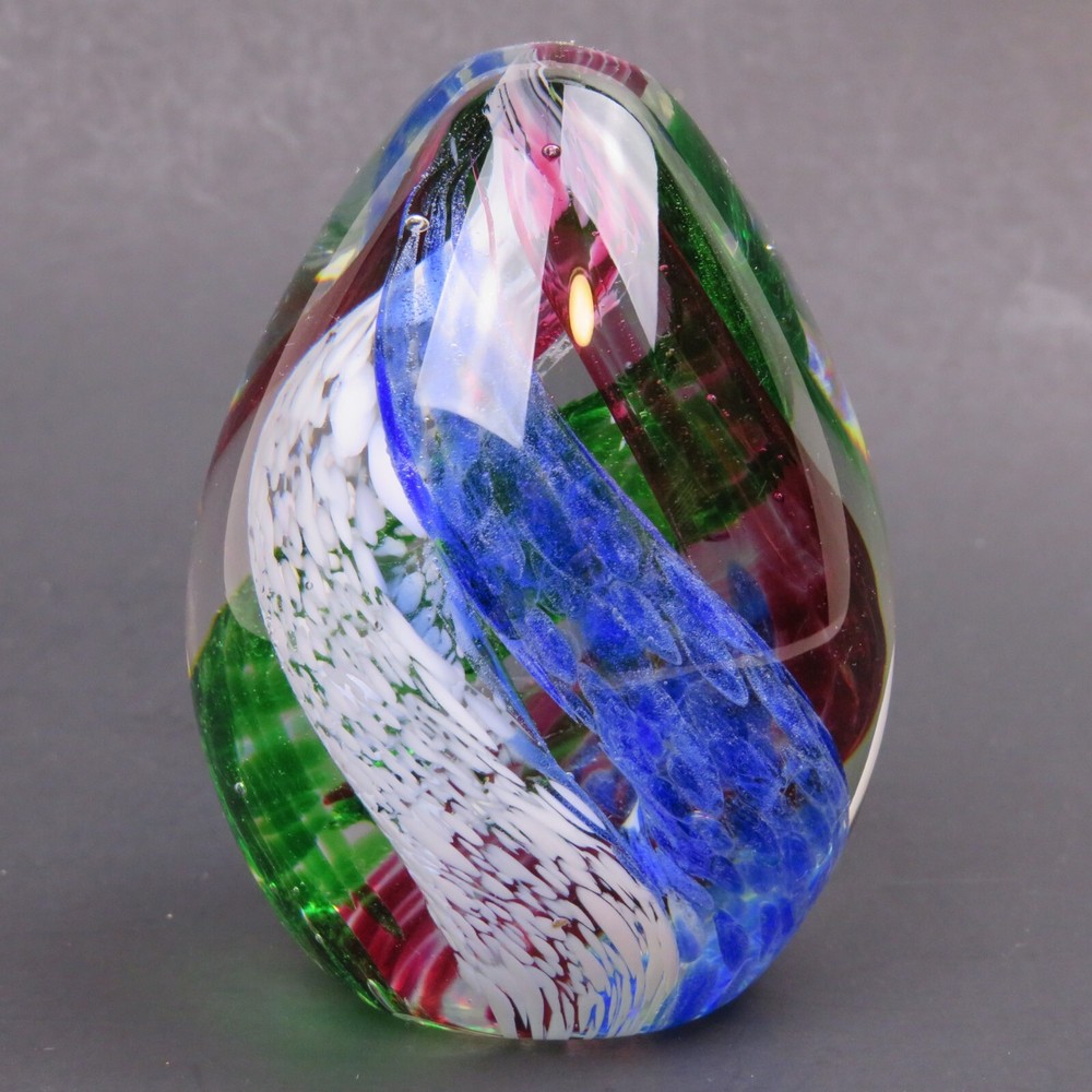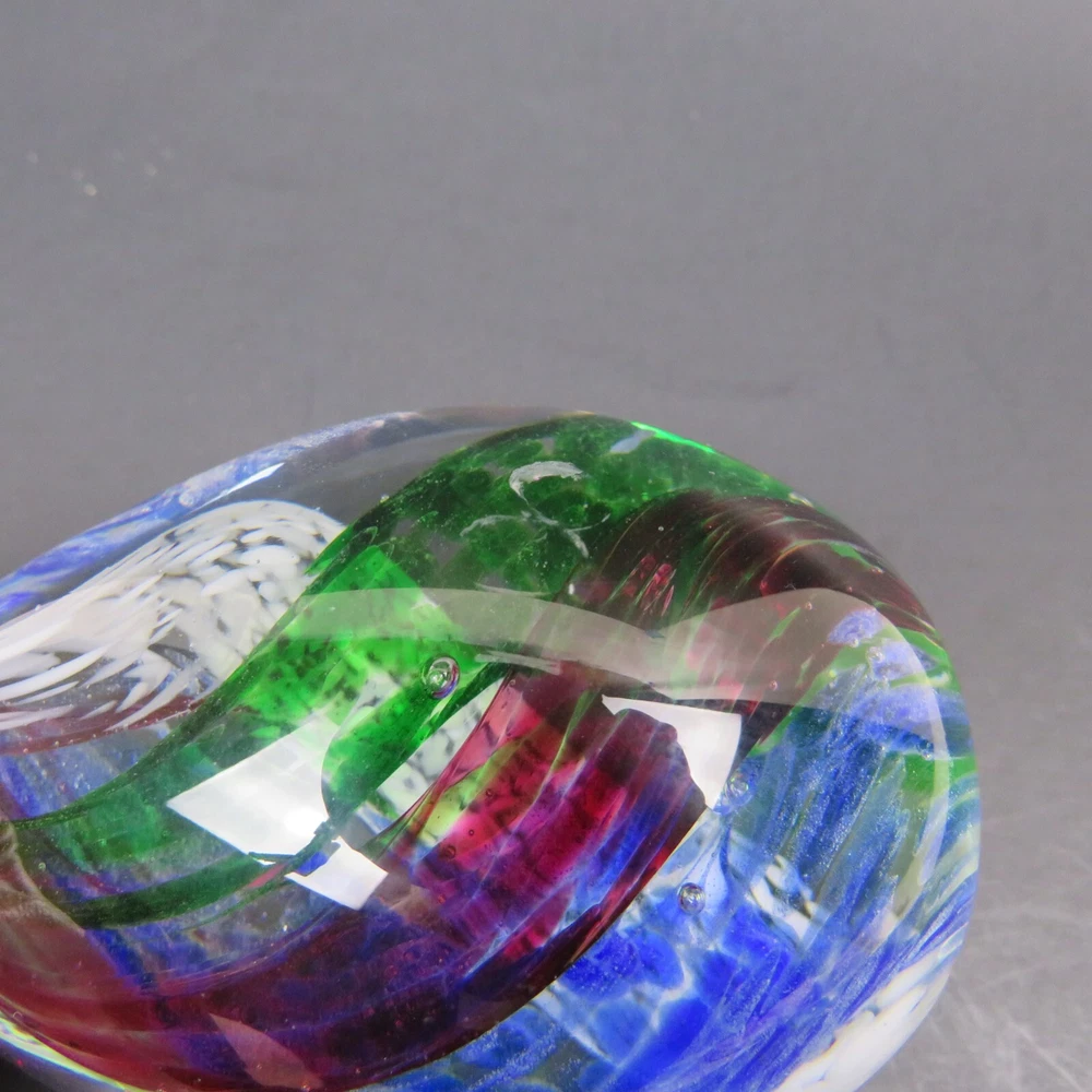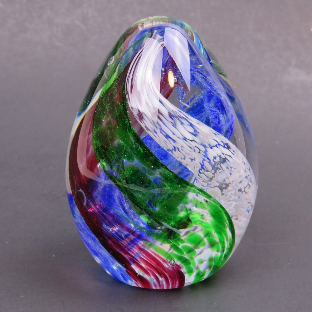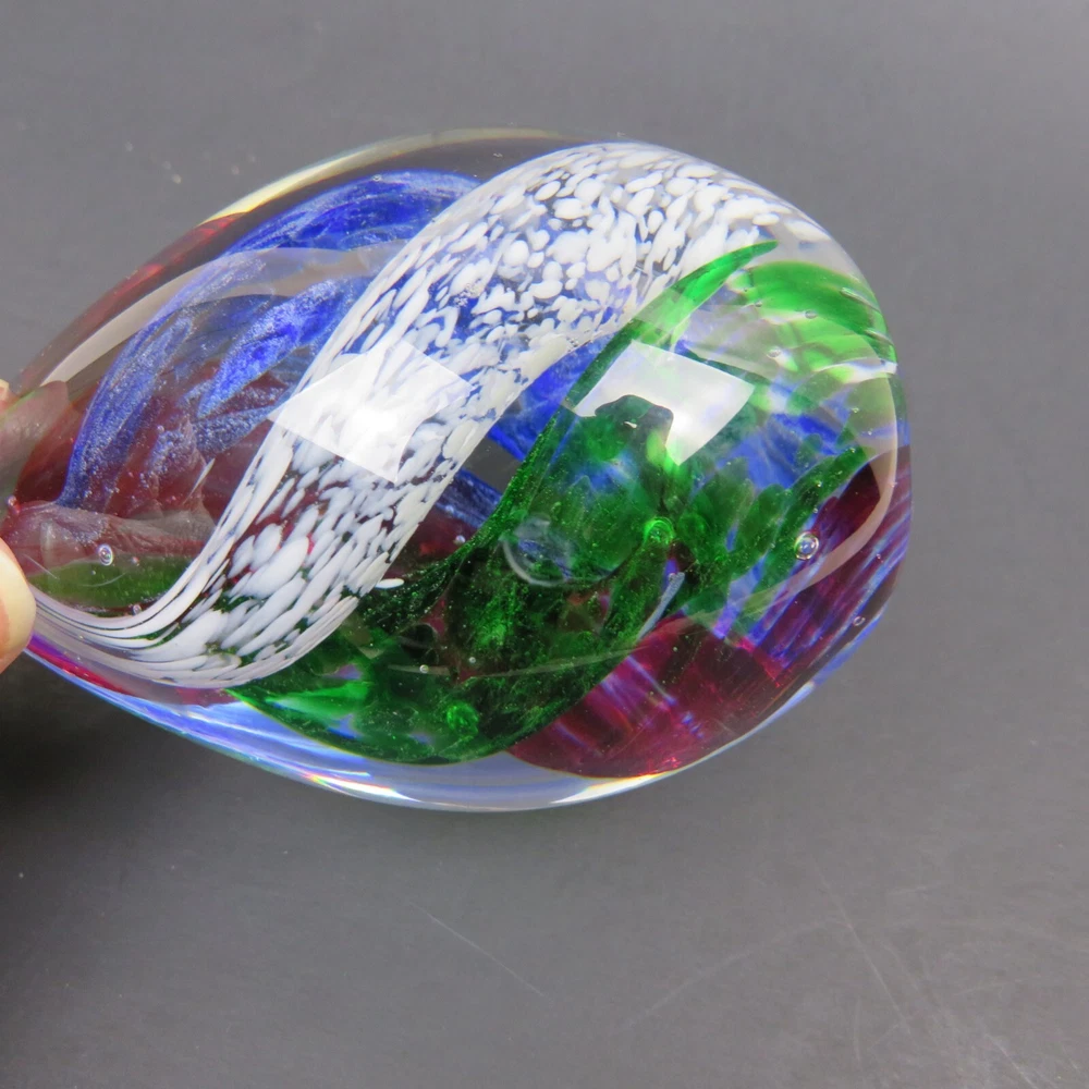 Art Glass Studio 5 Swirling Colors Egg Elliptical Shaped Paperweight 3-3/8" Tall 7-5/8" Diameter There are a Few Small Marks on Glass. Please see Pictures