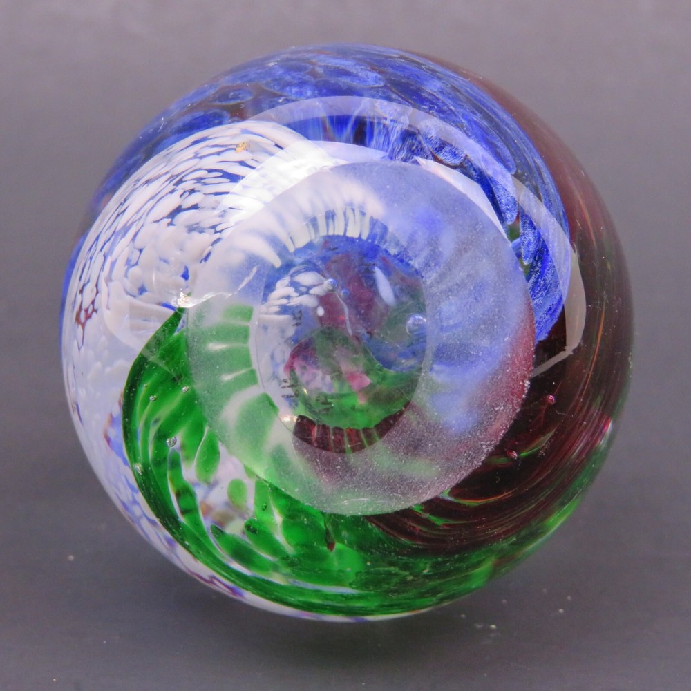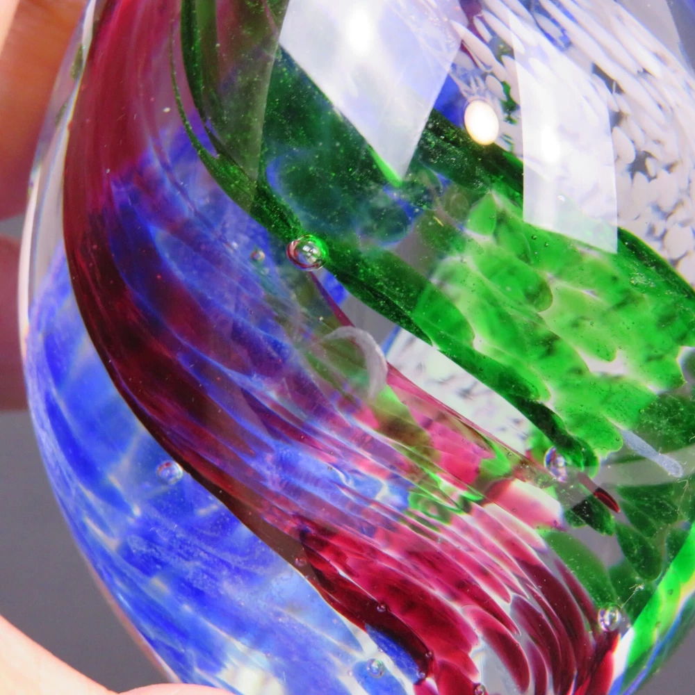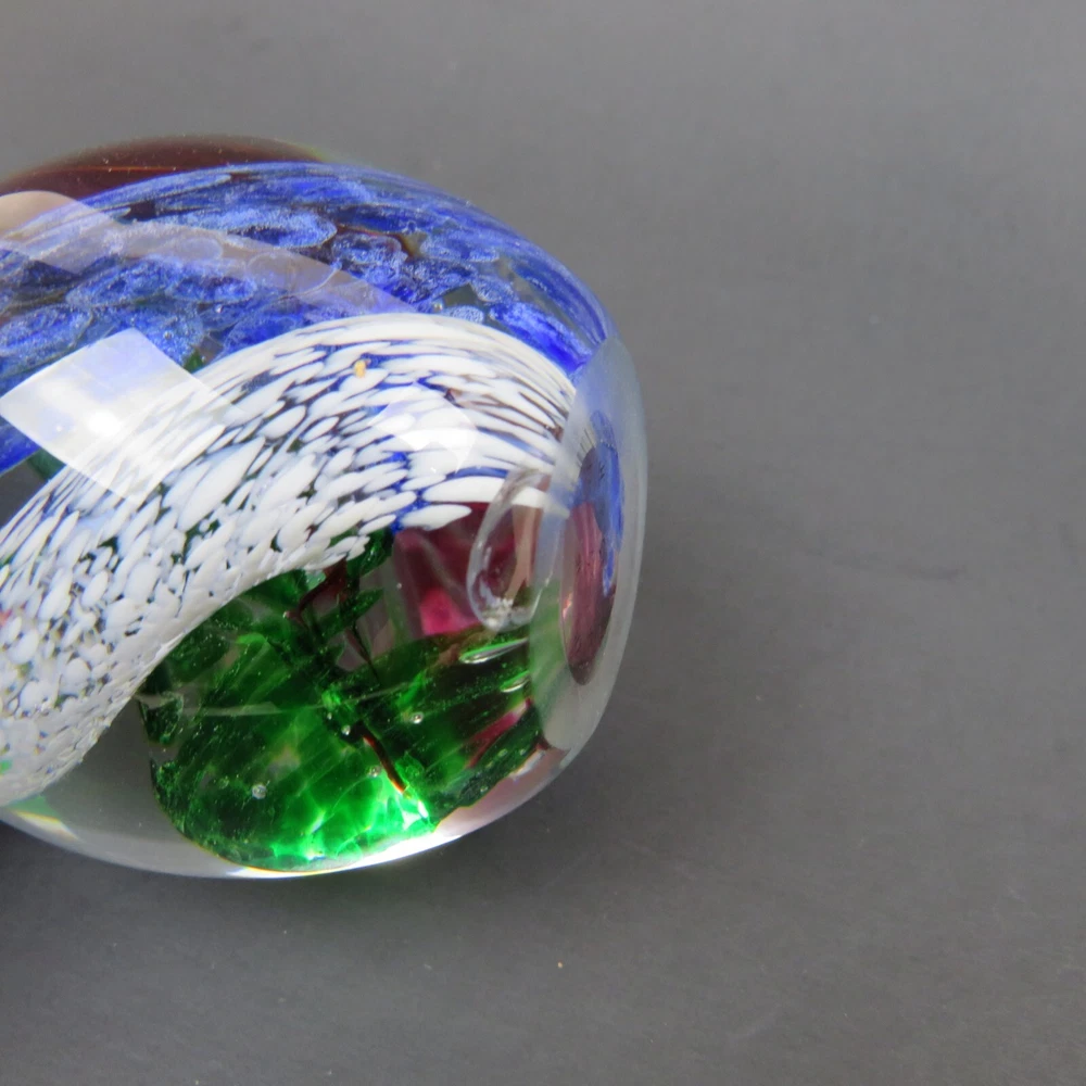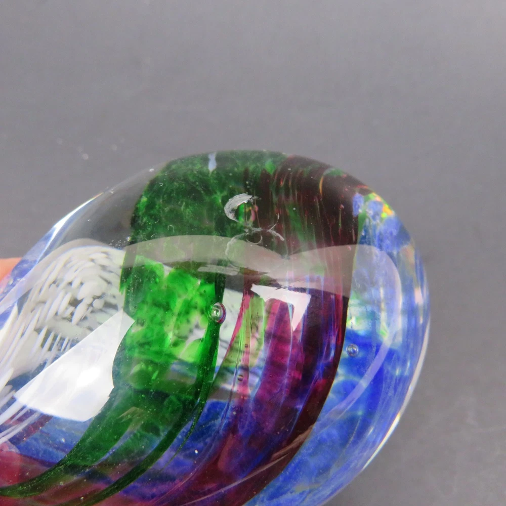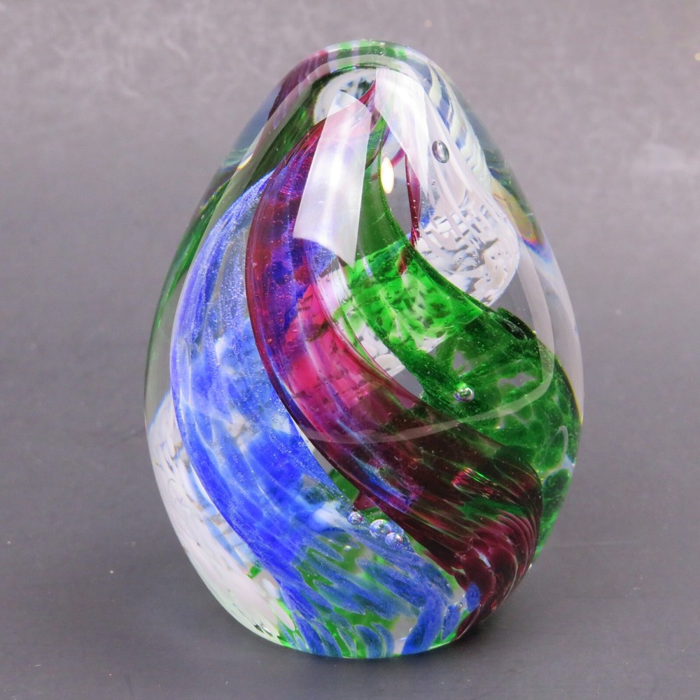 Art Glass Studio 5 Swirling Colors Egg Elliptical Shaped Paperweight 3-3/8" Tall 7-5/8" Diameter There are a Few Small Marks on Glass. Please see Pictures