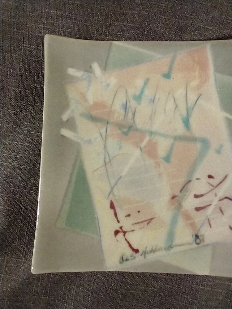 Art Pottery Trinket Dish Signed S. Hubbard '87. Pastels Post-Modern Abstract. Think Miami Vice for the Style and Color. See Photos for Details and Condition. No Chips or Cracks. Beautiful Craftsmanship.