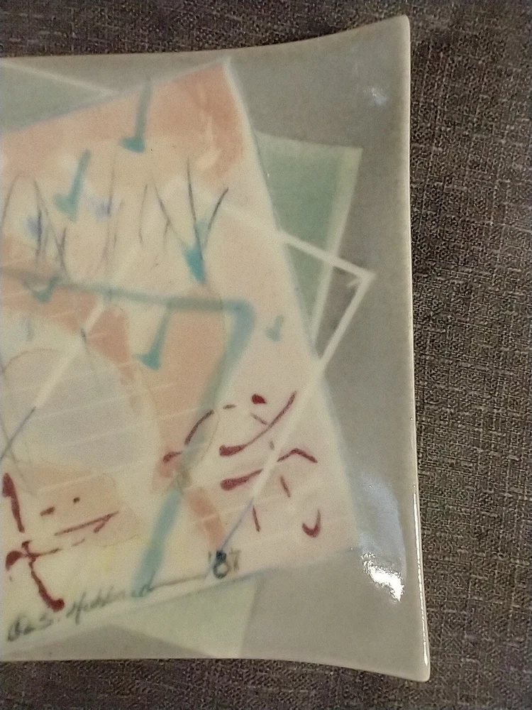 Art Pottery Trinket Dish Signed S. Hubbard '87. Pastels Post-Modern Abstract. Think Miami Vice for the Style and Color. See Photos for Details and Condition. No Chips or Cracks. Beautiful Craftsmanshi...