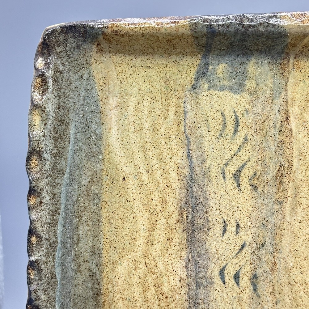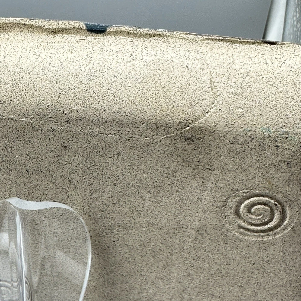 No chips or cracks. Marked with a swirl. Some marks on bottom and manufacture marks. 9.5” square, .75” depth