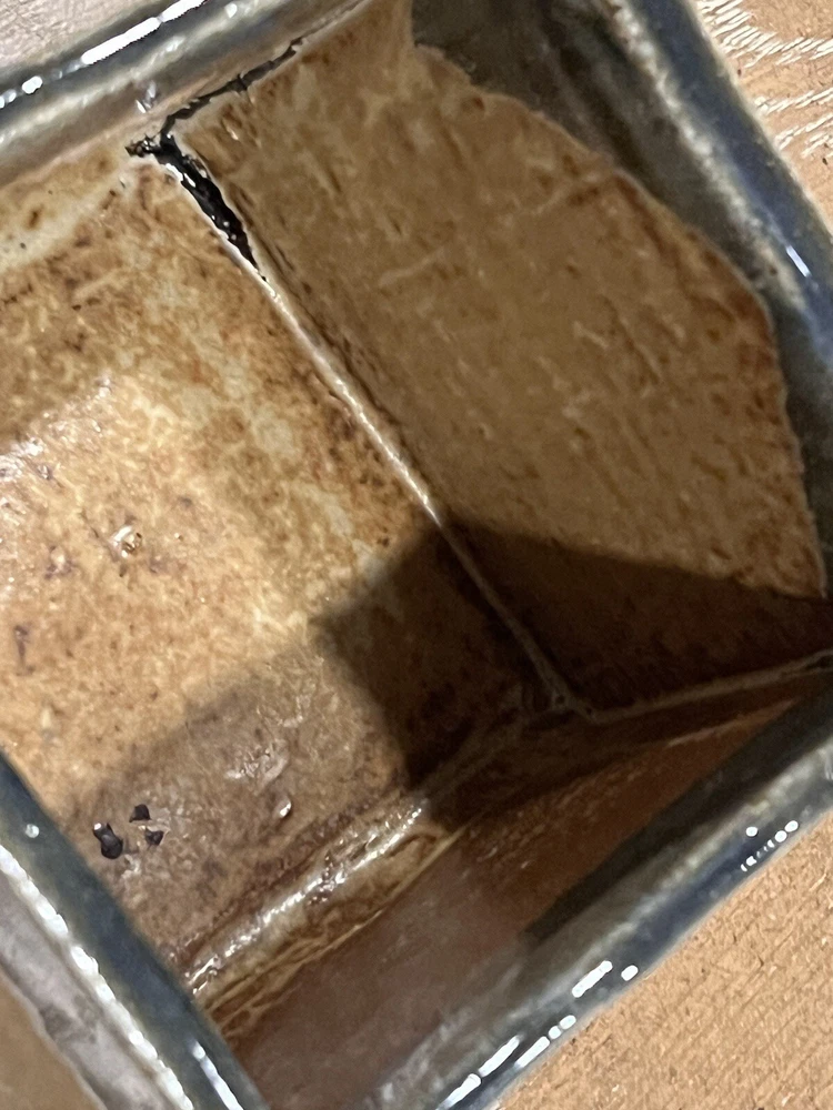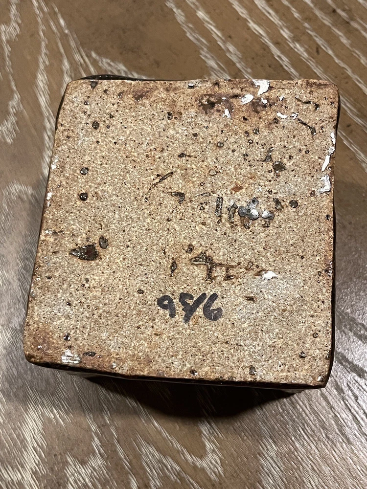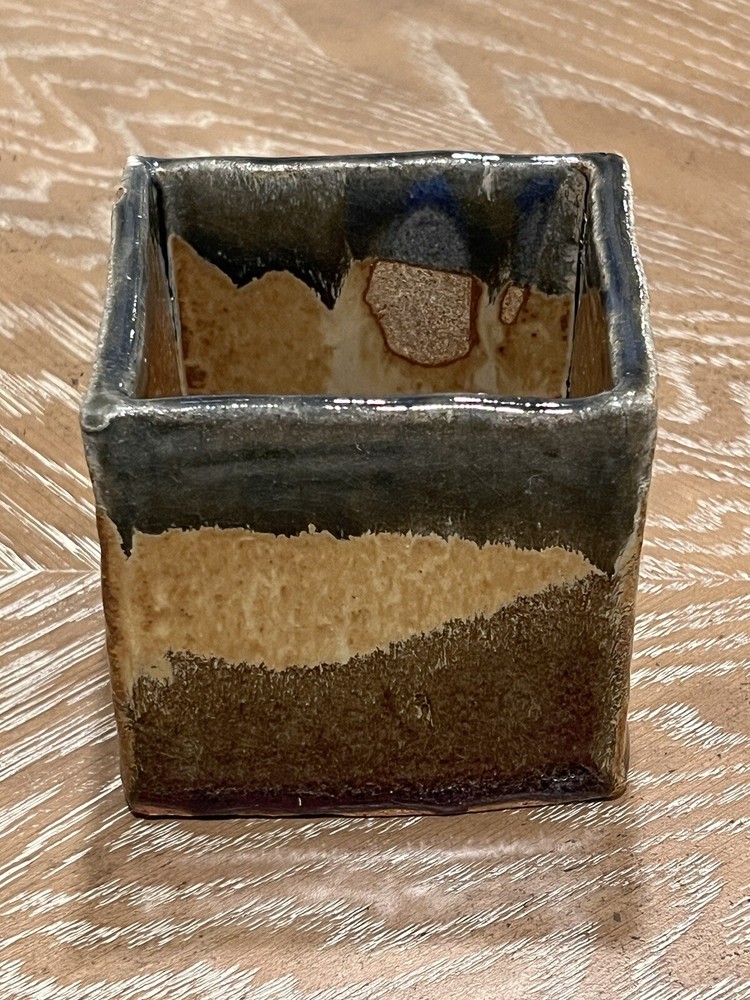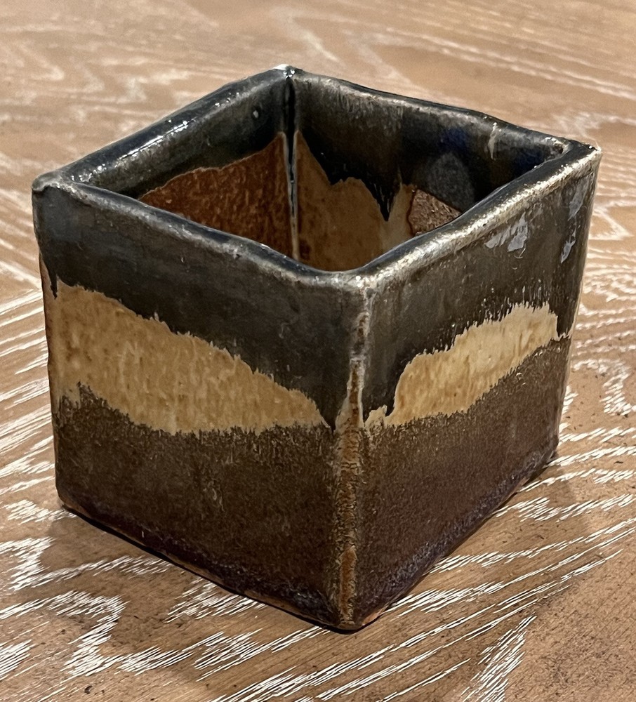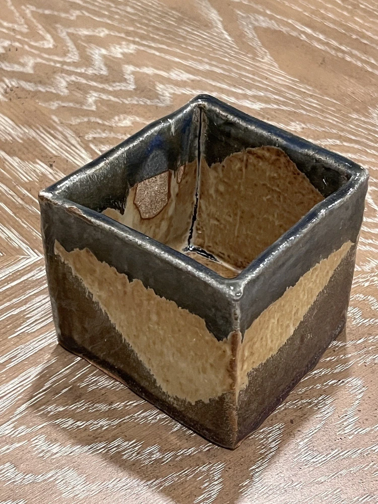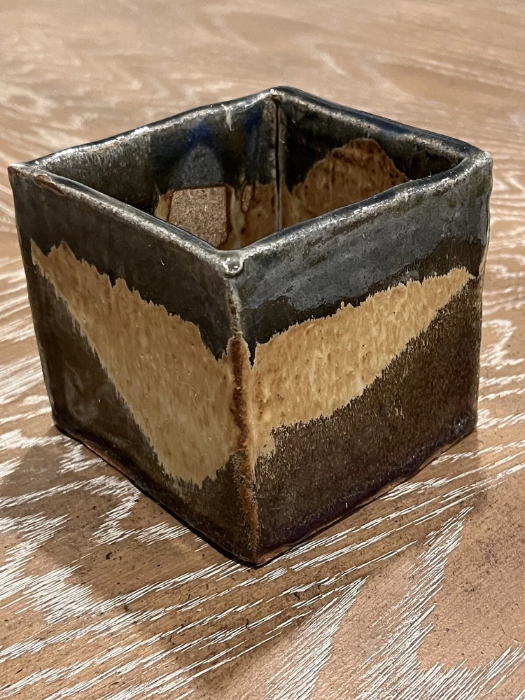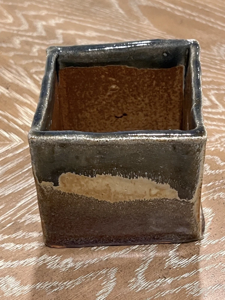 Art Studio Pottery Uneven Square Cube Pot Planter Vase Earth Tones Postmodern Signature not legible Nice used condition