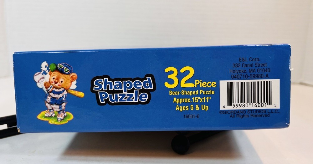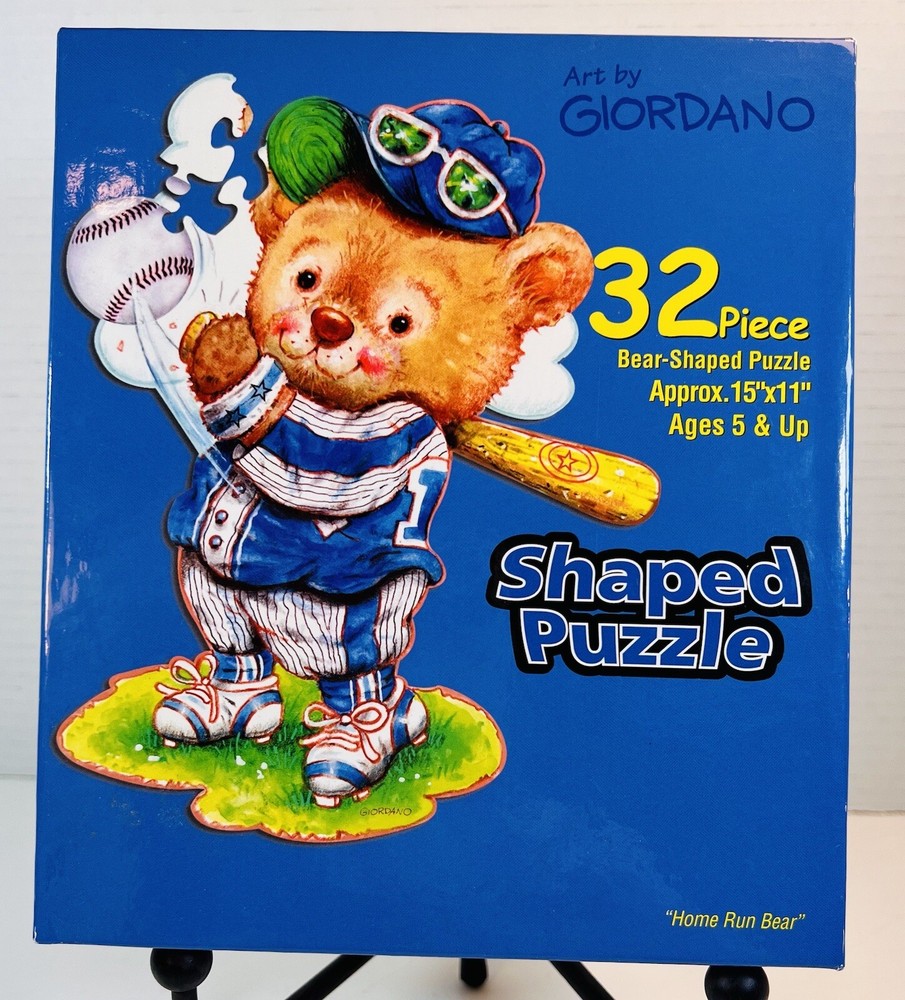 Art by Giordano Studios 32 Pc Bear Shaped Jigsaw Puzzle “Home Run Bear” Baseball...