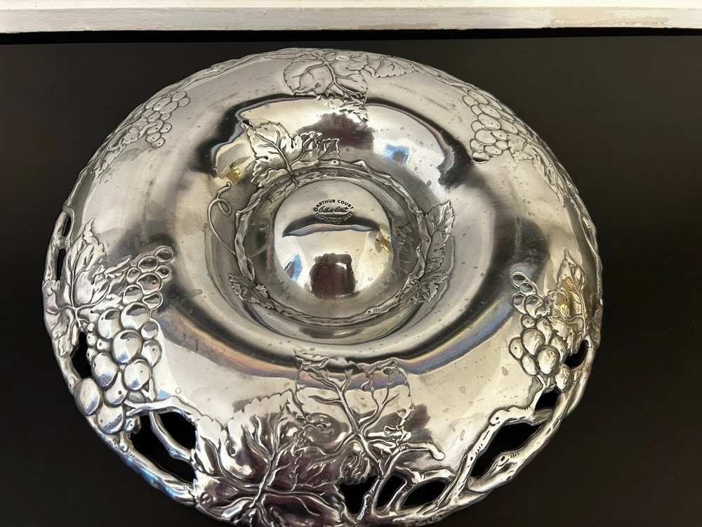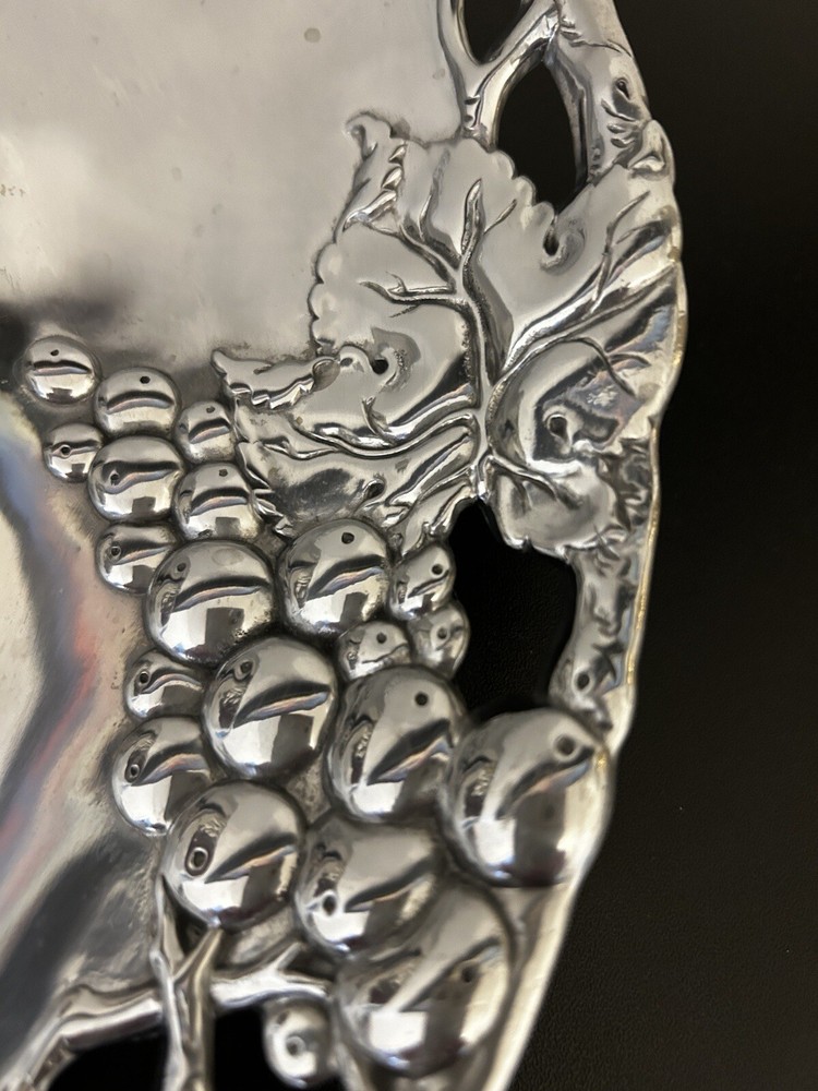 Arthur Court Large Grape Chip & Dip Tray Bowl Server 14” Aluminum In very good condition. Little signs of wear. Measures 14” across.